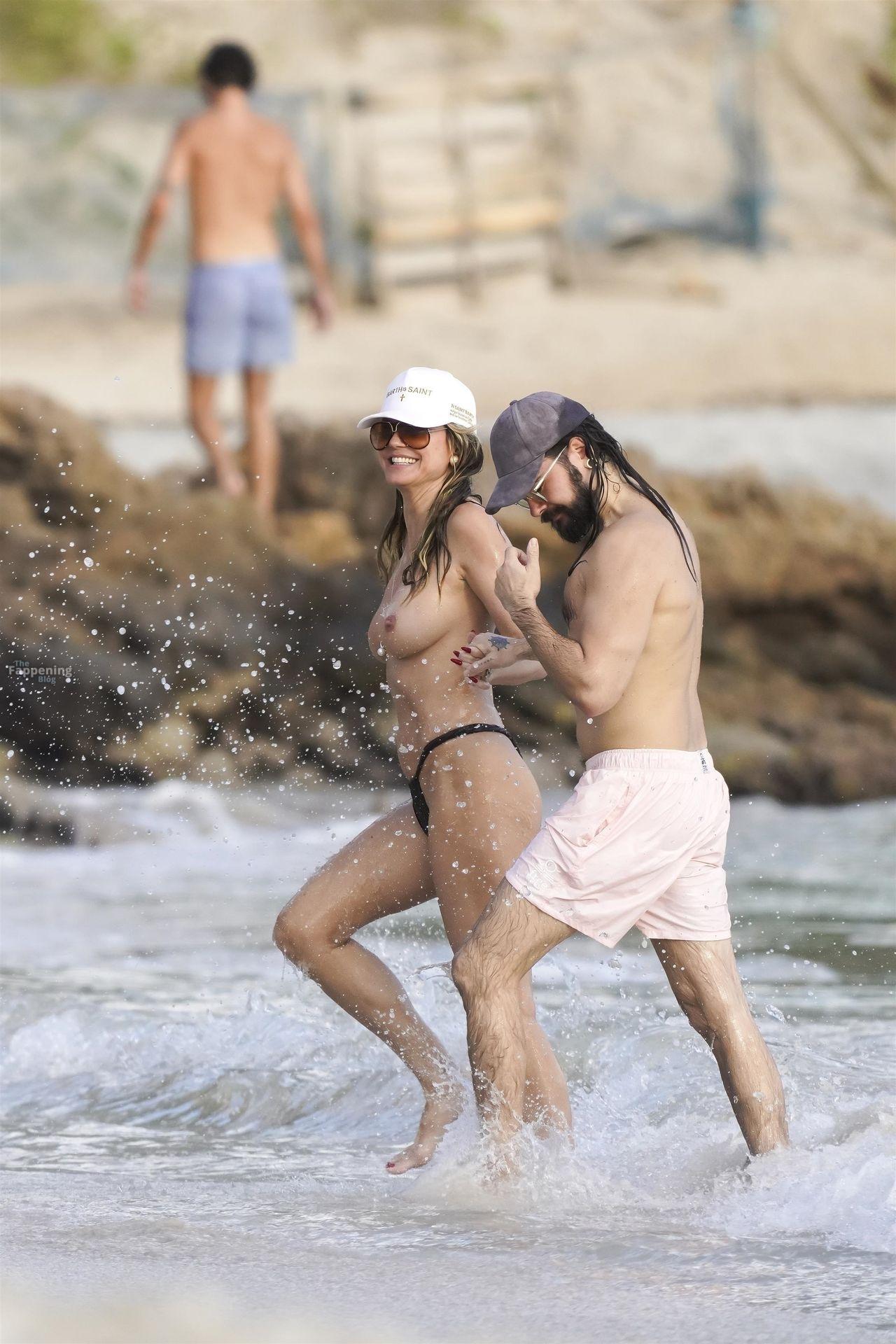 Хайди полностью берет на себя роль босса, снимая верх, чтобы избежать загара с линиями, демонстрируя идеальную грудь и сексуальное пляжное тело в стильных коричневых плавках. Том не может оторвать от нее рук — избыток публичных проявлений чувств с поцелуями, смехом и всеми нежными прикосновениями под солнцем. Их химия зашкаливает, чистые цели пары в раю.