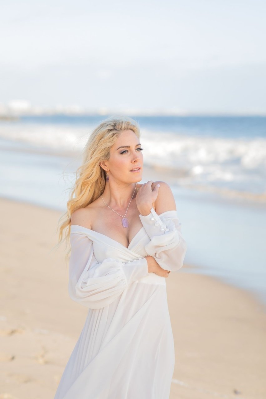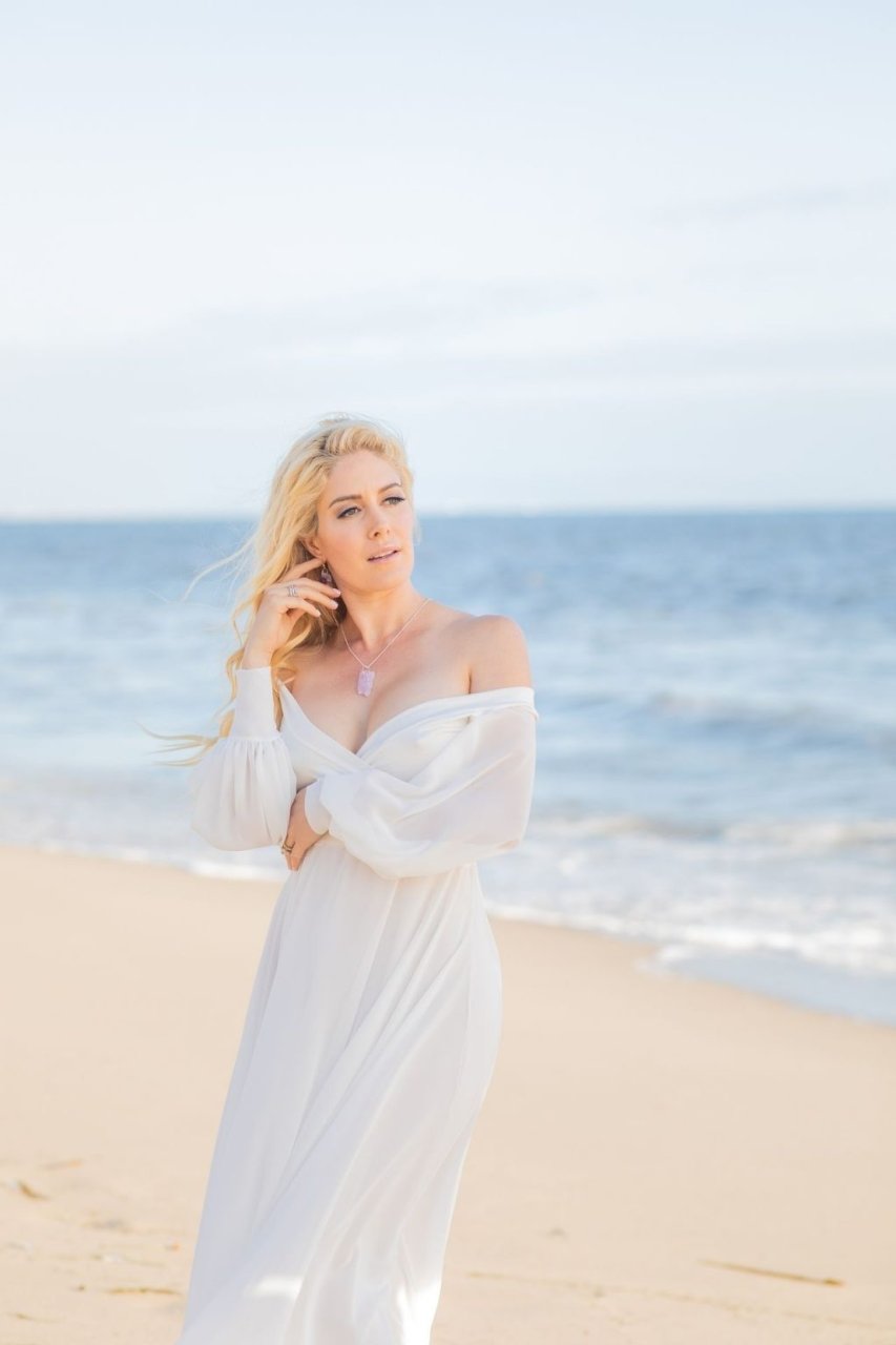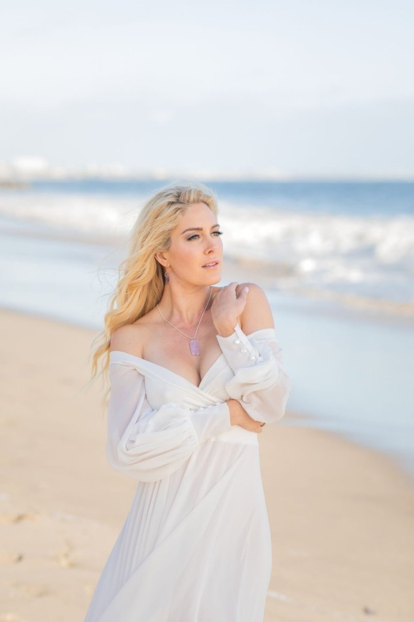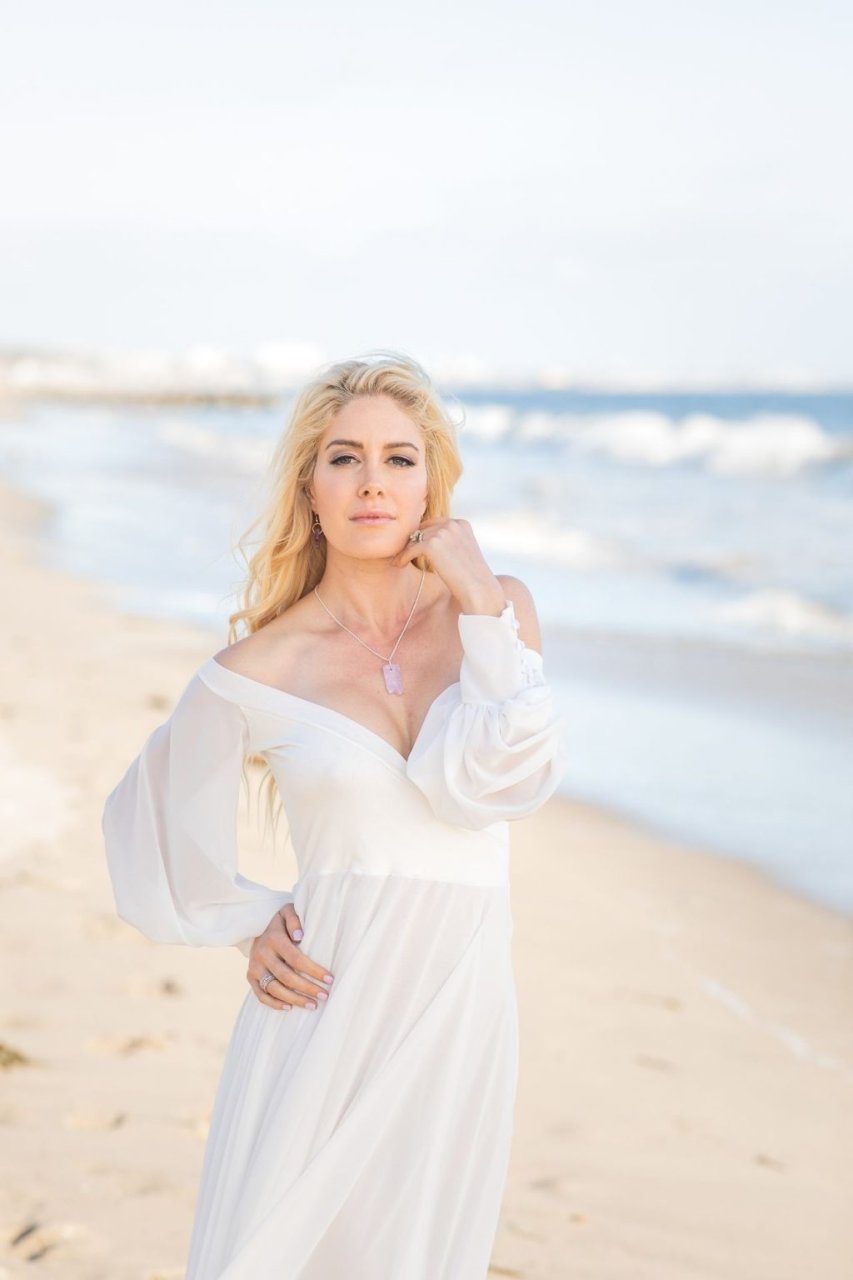 Телеведущая и певица Хайди Монтэг надела красивое белое прозрачное платье, позируя для фотографий в эти выходные в Малибу, 08.05.2019. 32-летняя горячая блондинка продемонстрировала декольте на пляже.