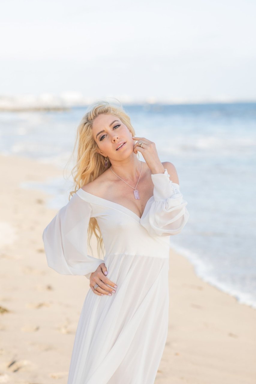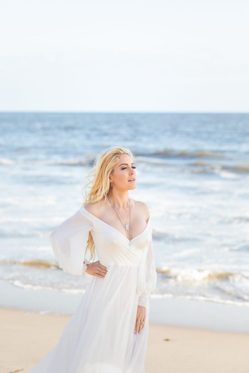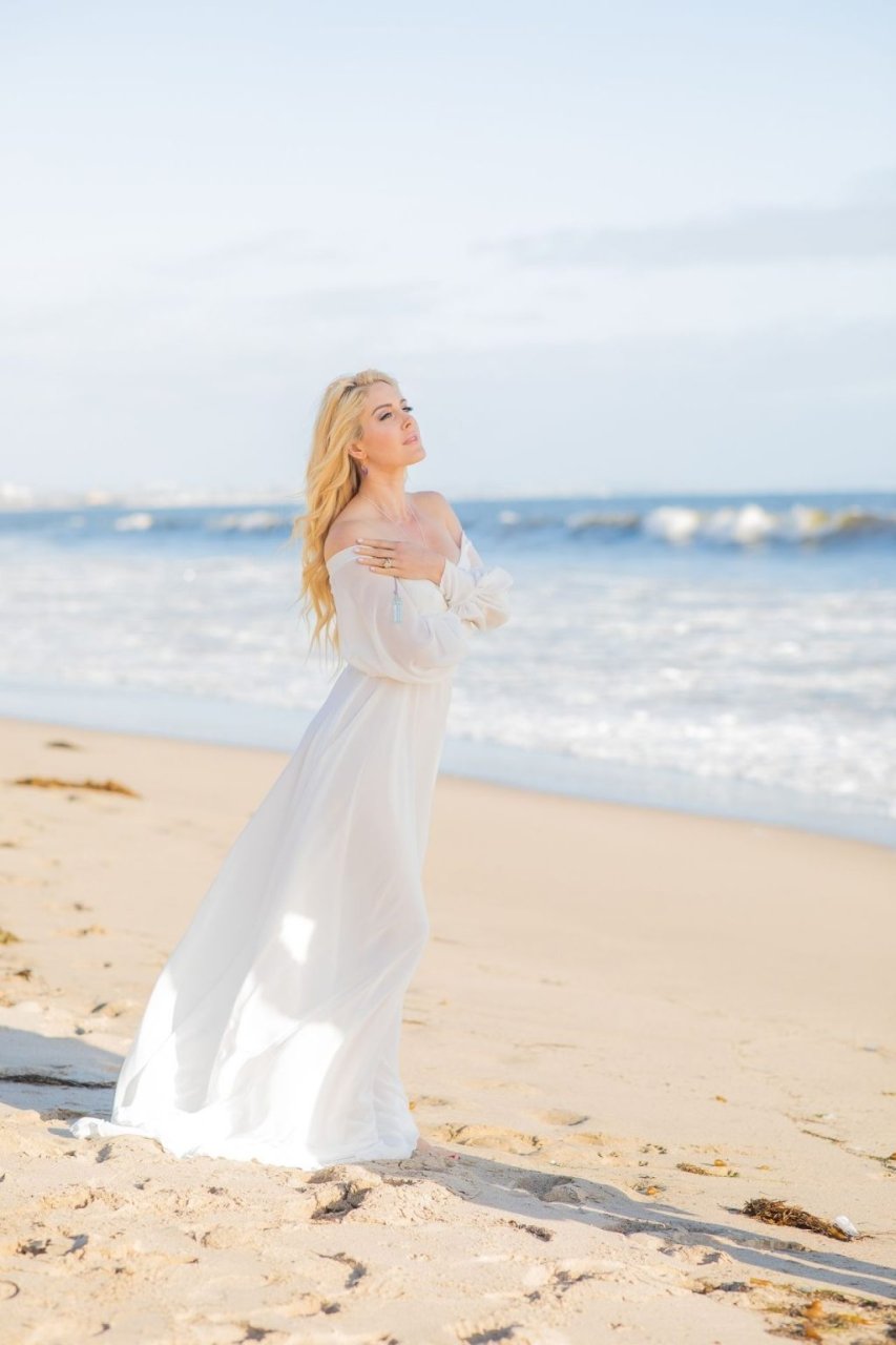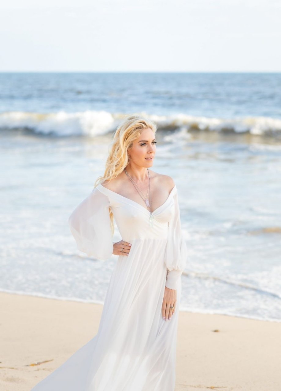 Телеведущая и певица Хайди Монтэг надела красивое белое прозрачное платье, позируя для фотографий в эти выходные в Малибу, 08.05.2019. 32-летняя горячая блондинка продемонстрировала декольте на пляже.