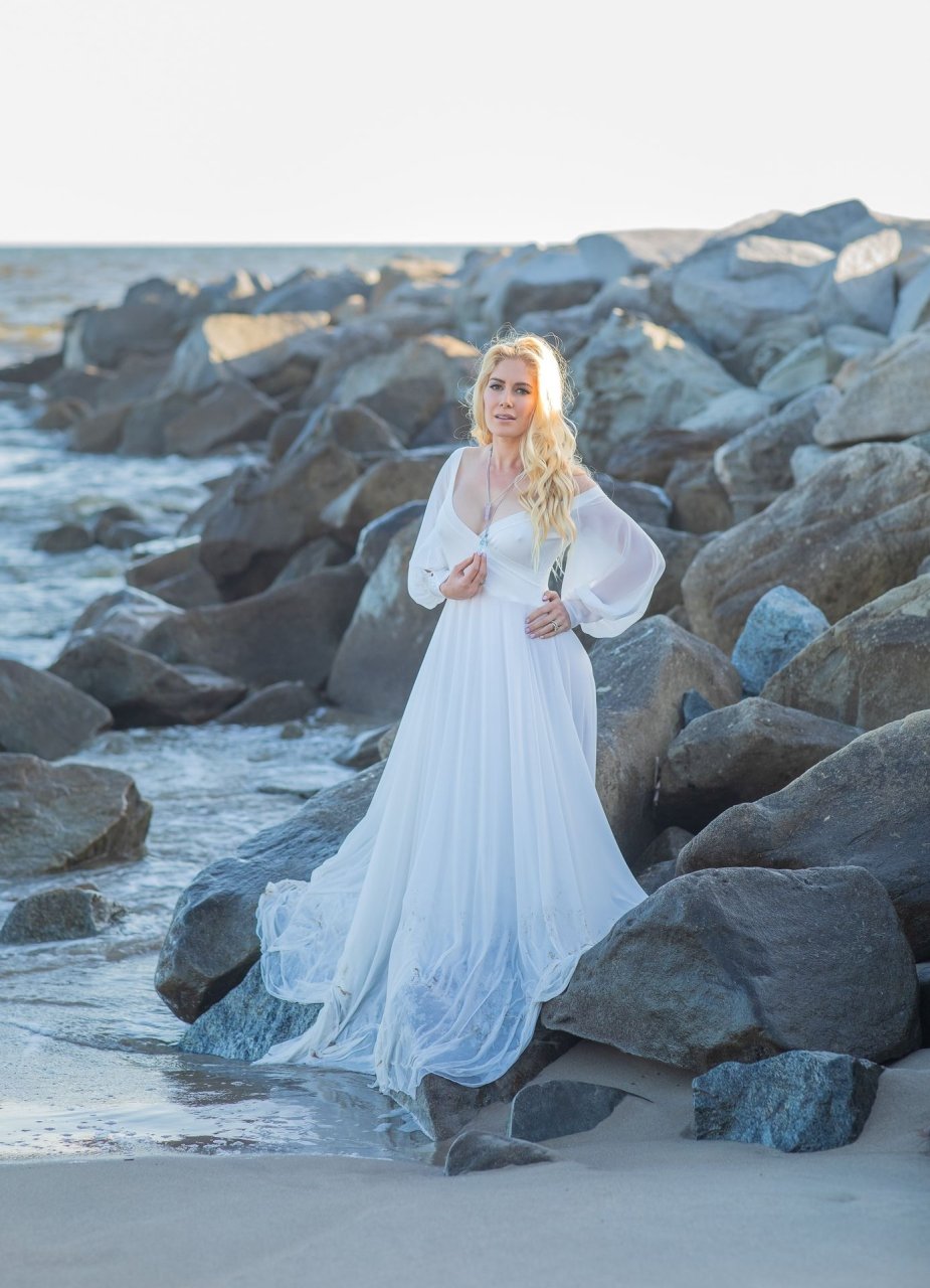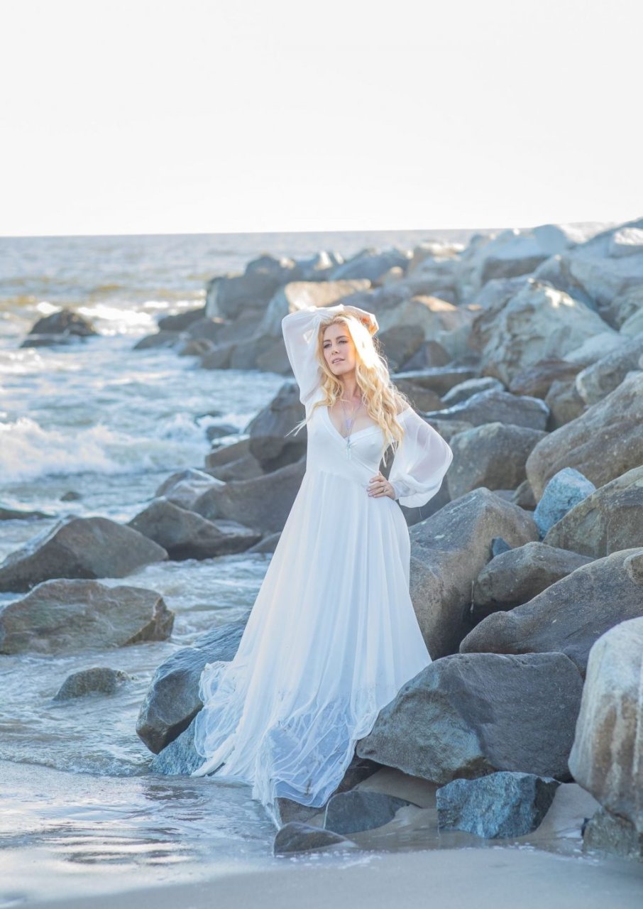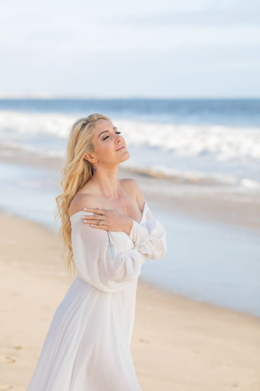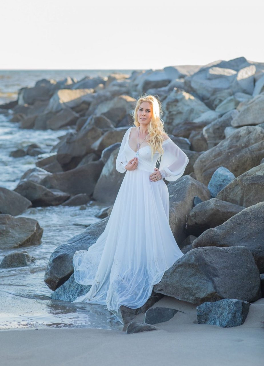 Телеведущая и певица Хайди Монтэг надела красивое белое прозрачное платье, позируя для фотографий в эти выходные в Малибу, 08.05.2019. 32-летняя горячая блондинка продемонстрировала декольте на пляже.