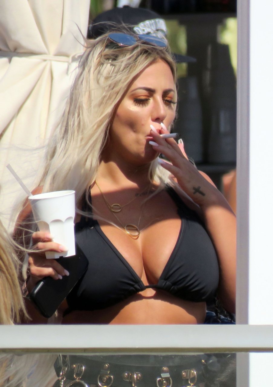 Звезда Geordie Shore Холли Хаган (25) показала свои завидные формы в бикини с завязкой на шее и шифоновой юбке, отдыхая с друзьями в Марбелье, 28.05.2018. Звезда реалити-шоу выглядела в хорошем настроении, когда ее видели на вечеринке с друзьями, курящей одну за другой сигареты во время празднования с товарищами.