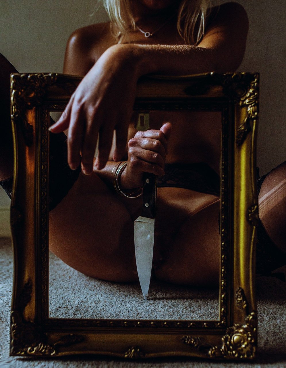 Интересный факт: нож символизирует пенис, а искусственный загар — её зависть и ненависть к этому органу