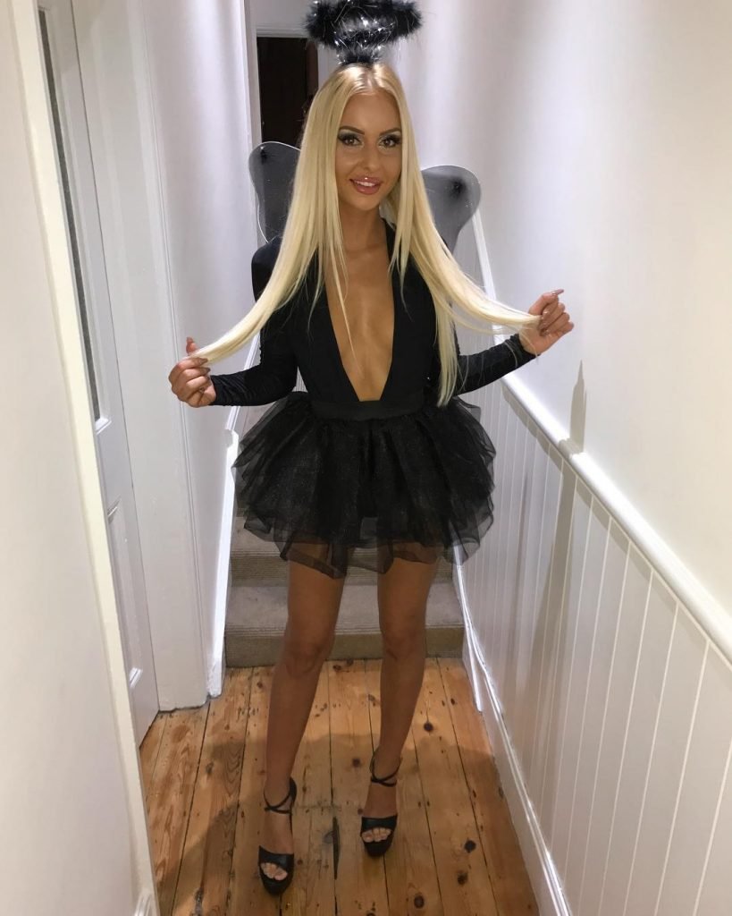 ‘Звезда шоу «Ex on the Beach» Холли Риквуд (25) прибывает на хэллоуинскую вечеринку в Кенте, 30.10.2017.