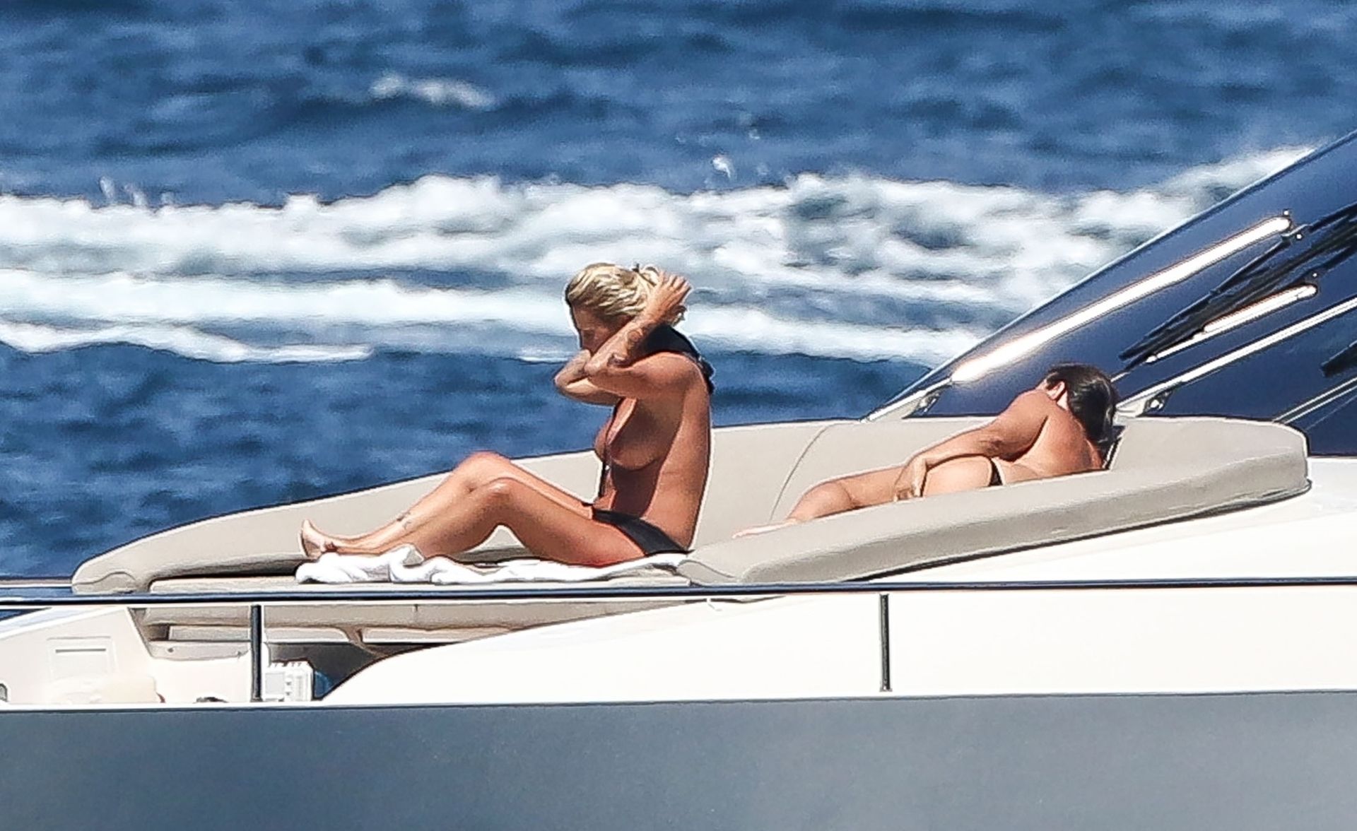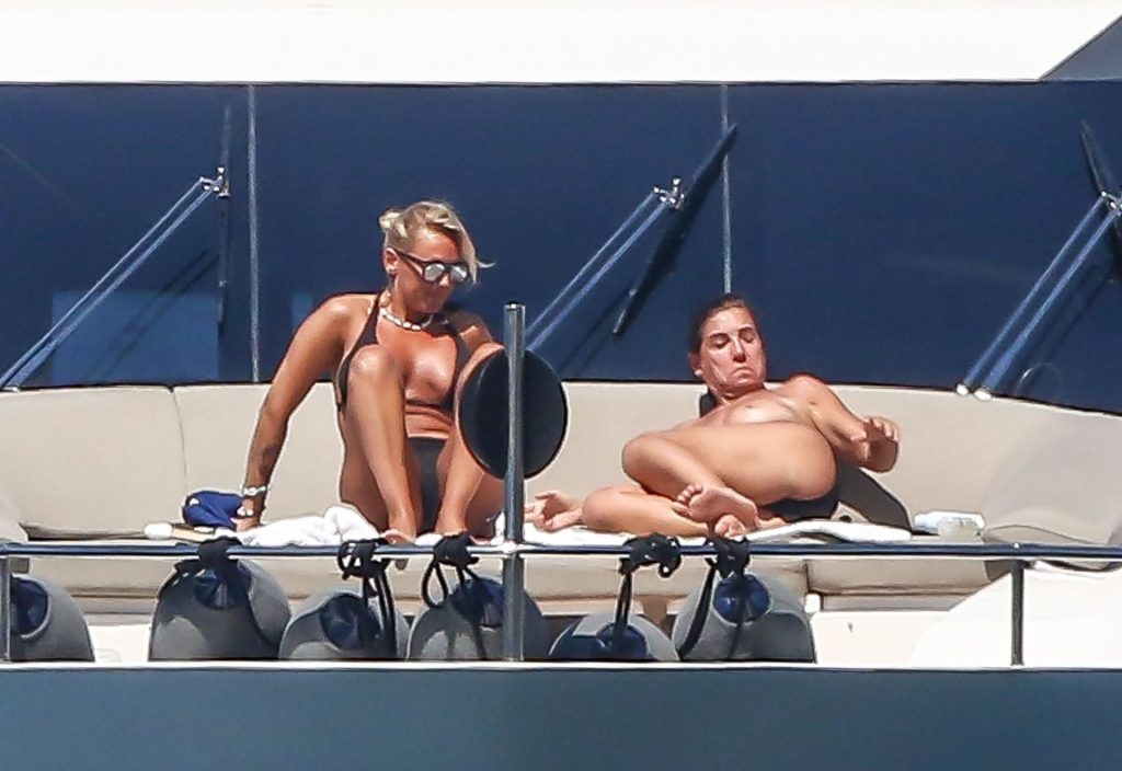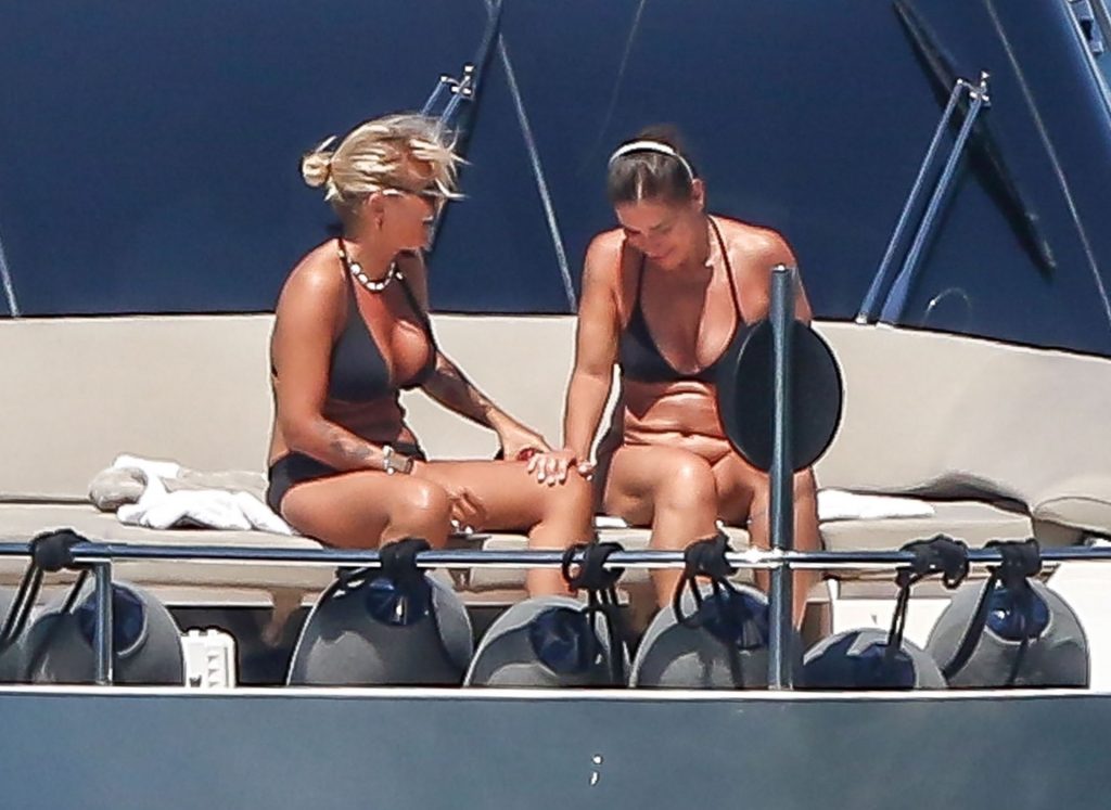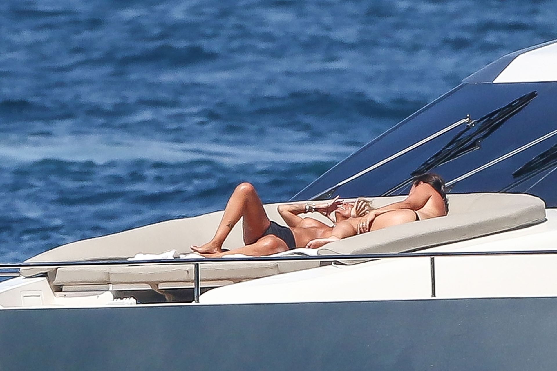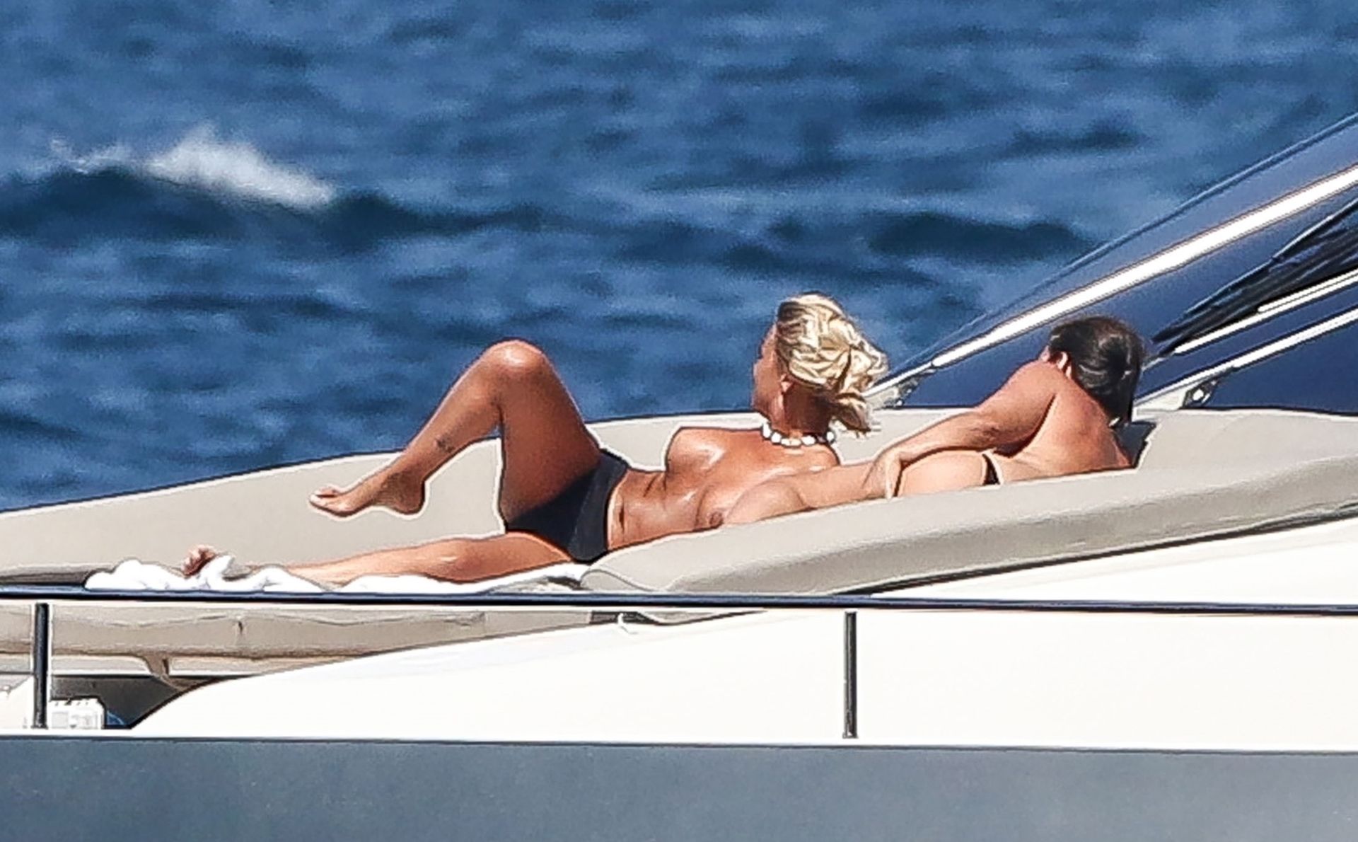 Экс-подруга Сильвио Берлускони Франческа Паскале и певица Паола Турчи загорают и снимают топы на своём солнечном отпуске на роскошной яхте у побережья Соррентино в Италии, 13.08.2020.