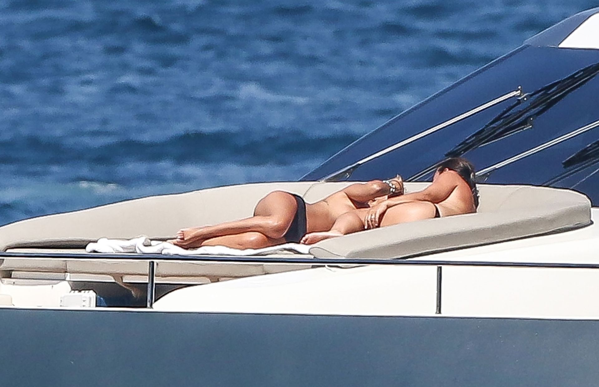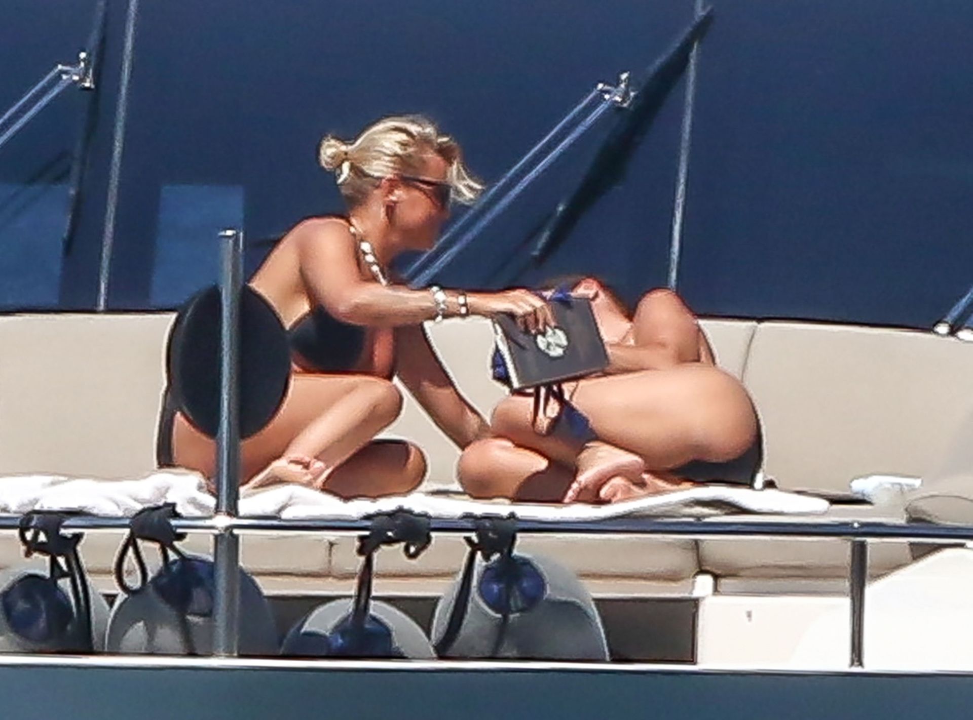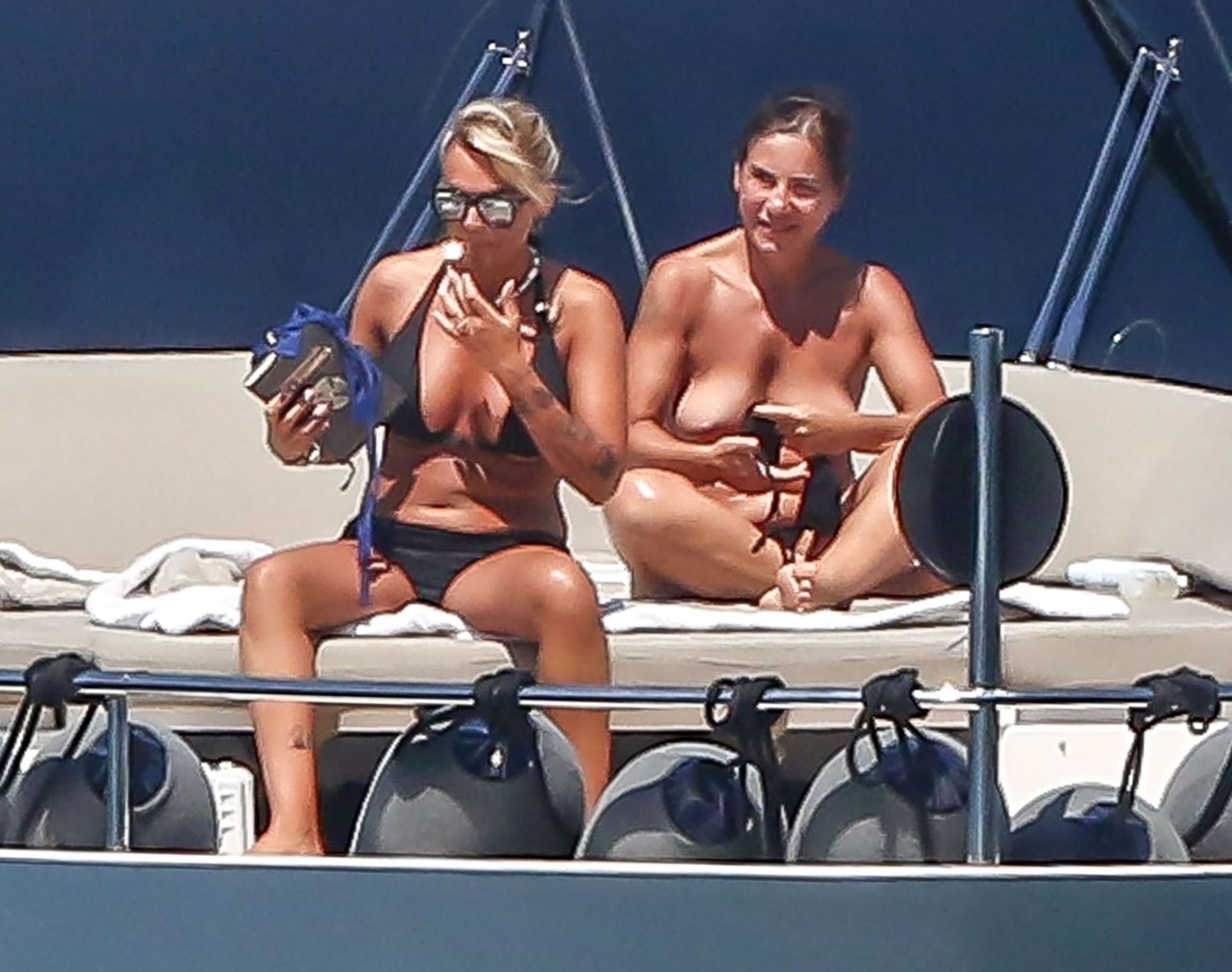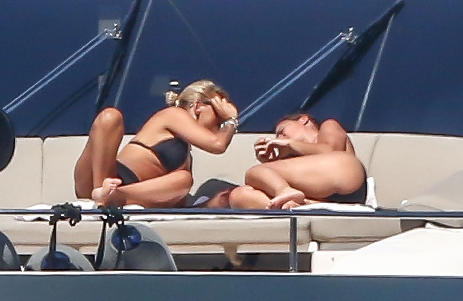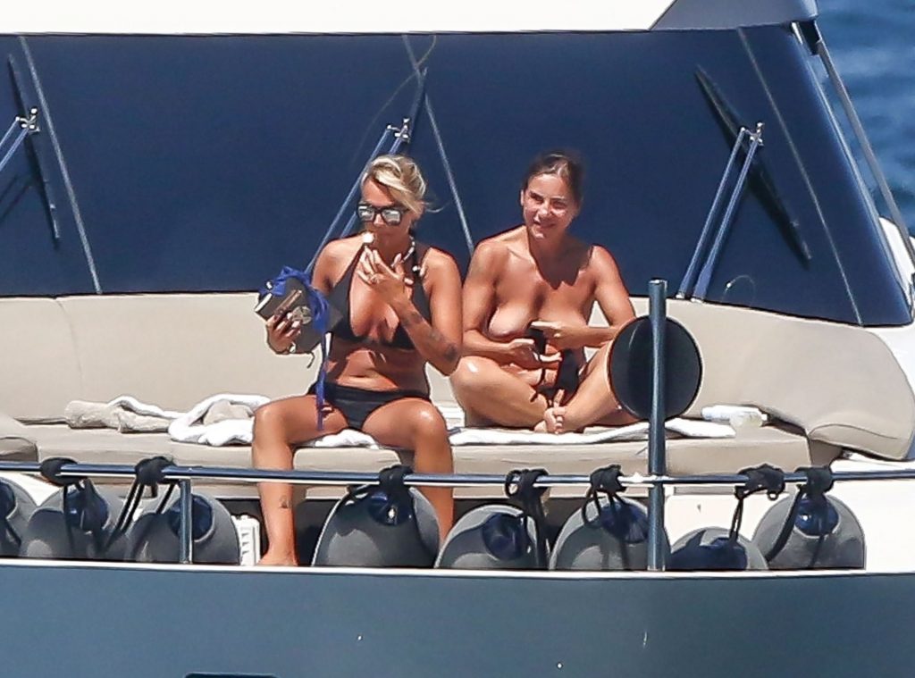 Экс-подруга Сильвио Берлускони Франческа Паскале и певица Паола Турчи загорают и снимают топы на своём солнечном отпуске на роскошной яхте у побережья Соррентино в Италии, 13.08.2020.