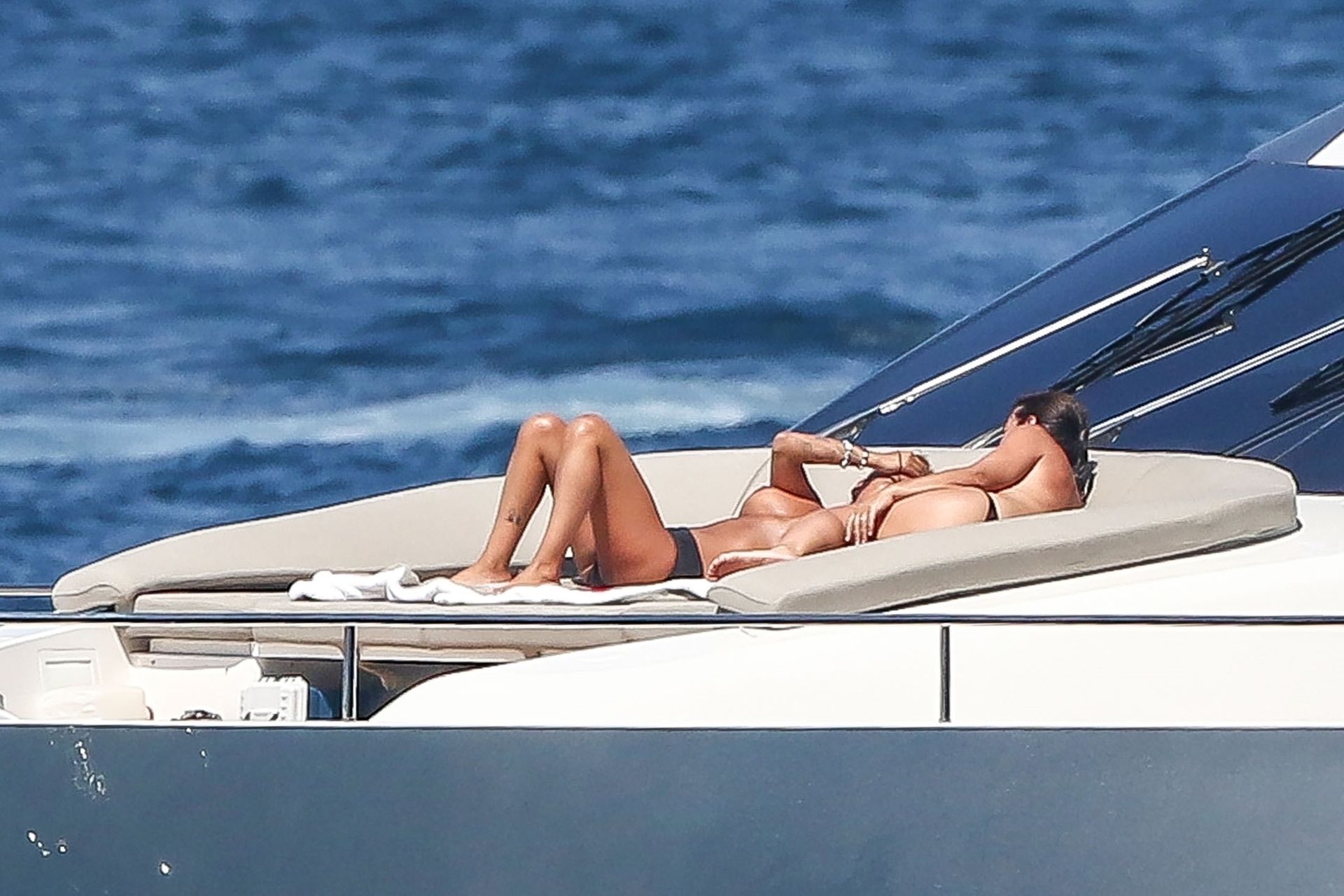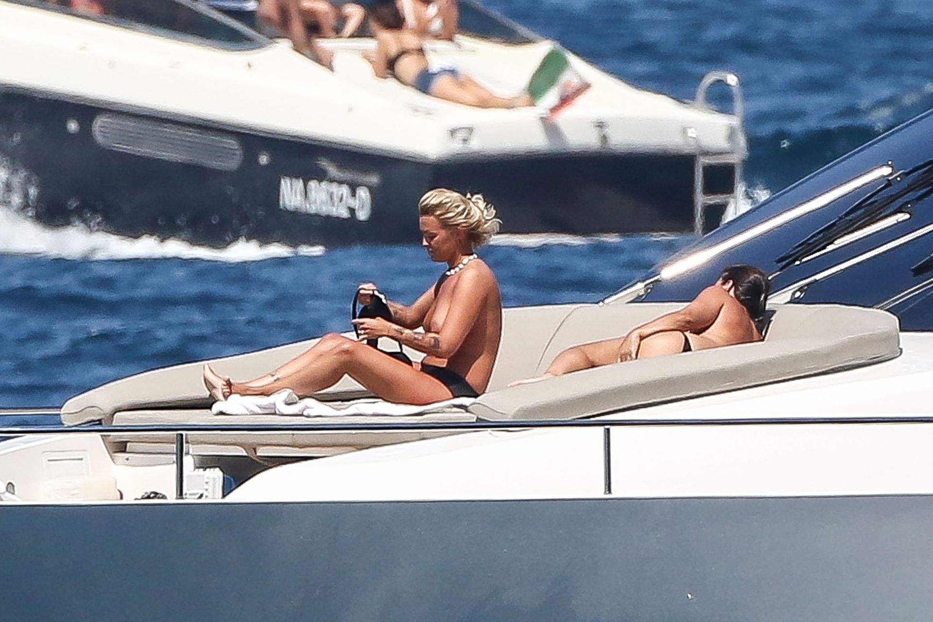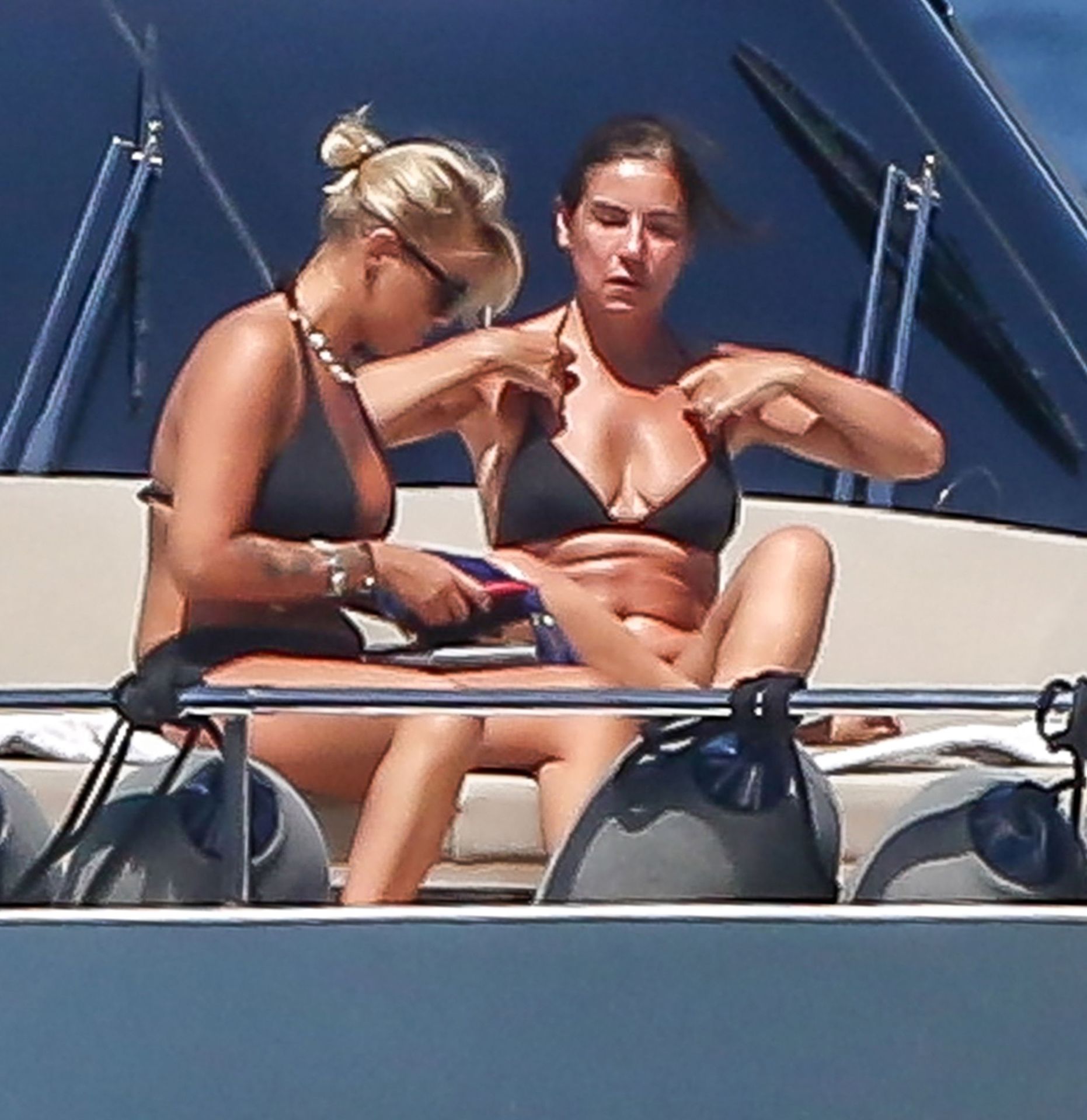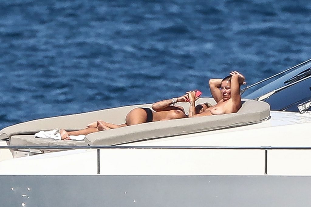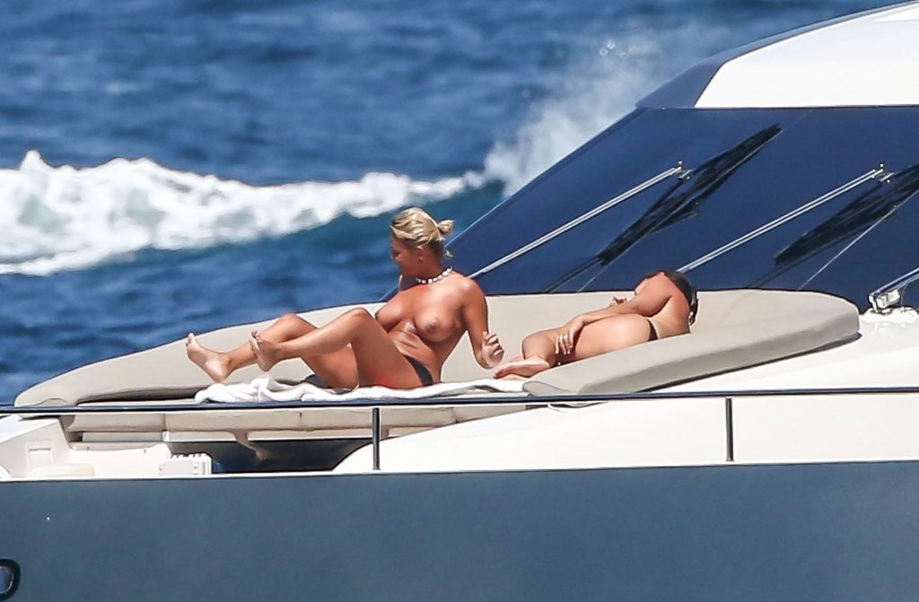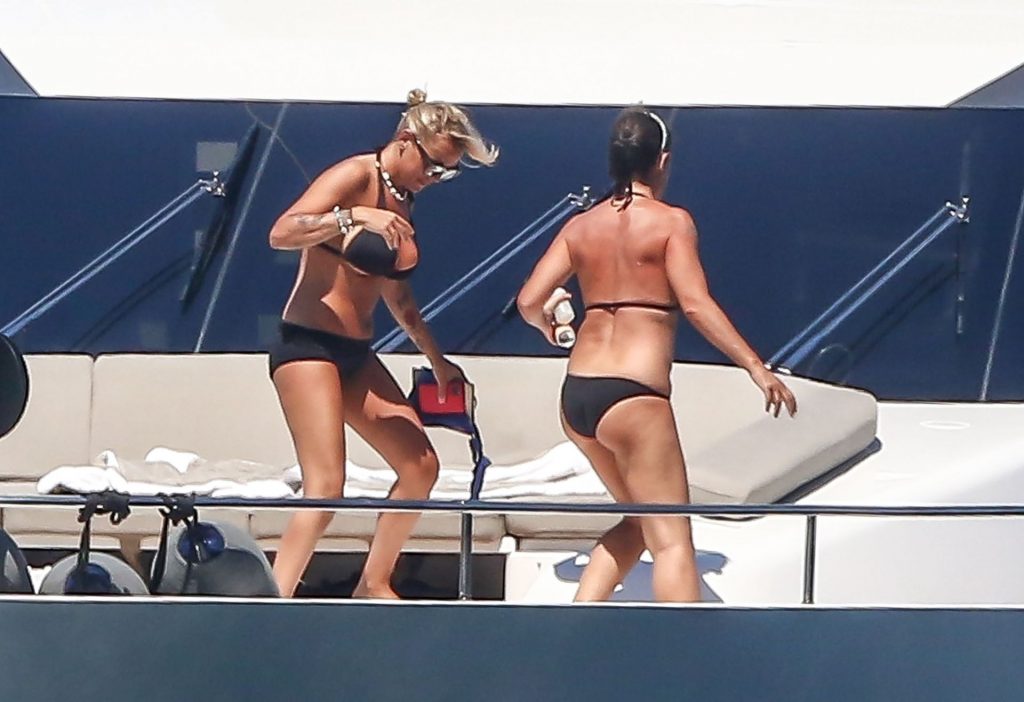 Экс-подруга Сильвио Берлускони Франческа Паскале и певица Паола Турчи загорают и снимают топы на своём солнечном отпуске на роскошной яхте у побережья Соррентино в Италии, 13.08.2020.