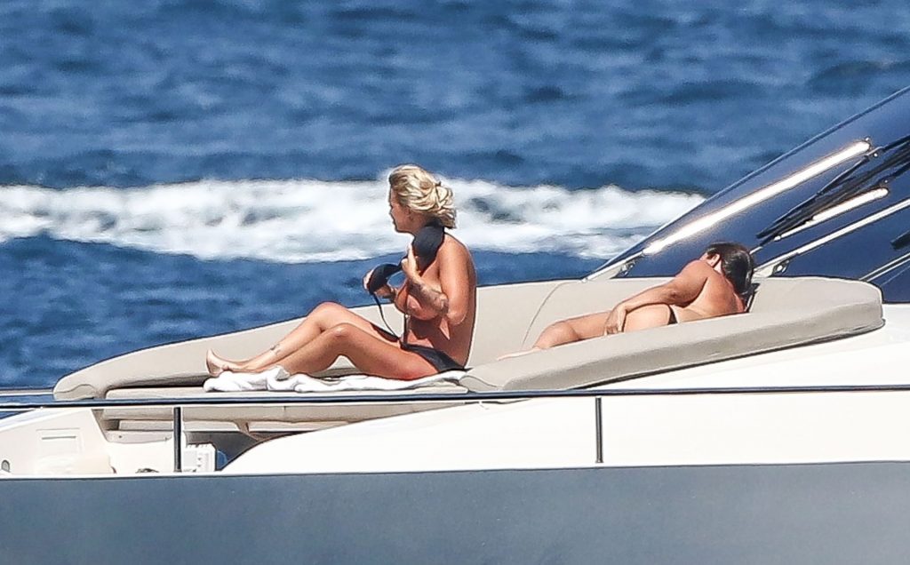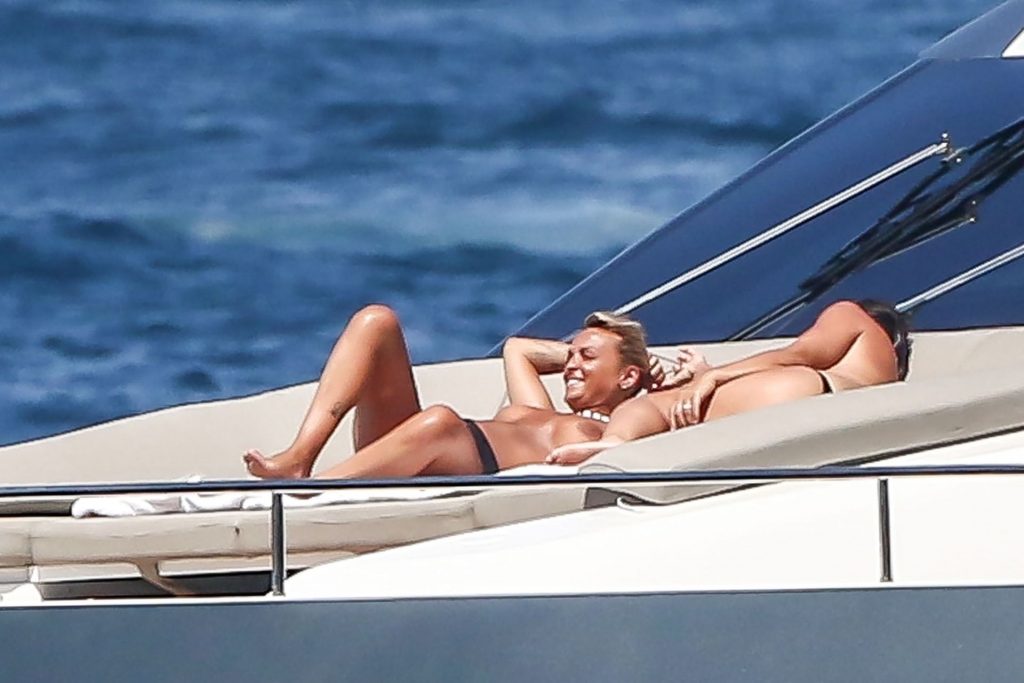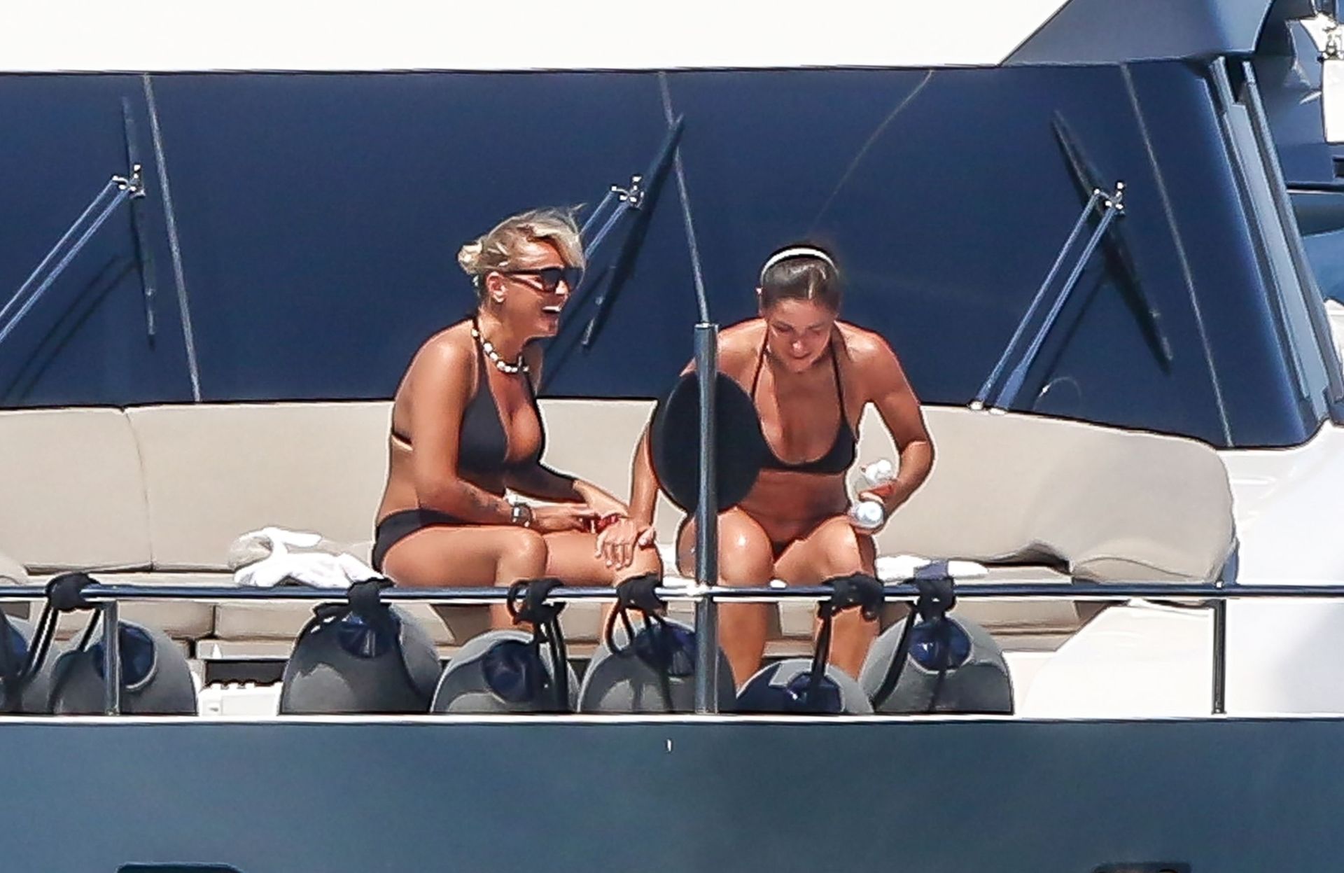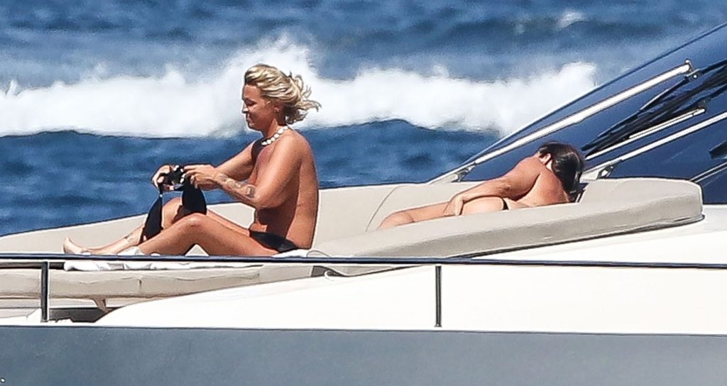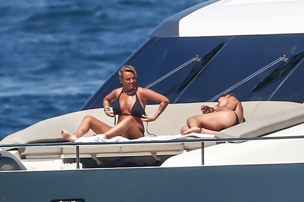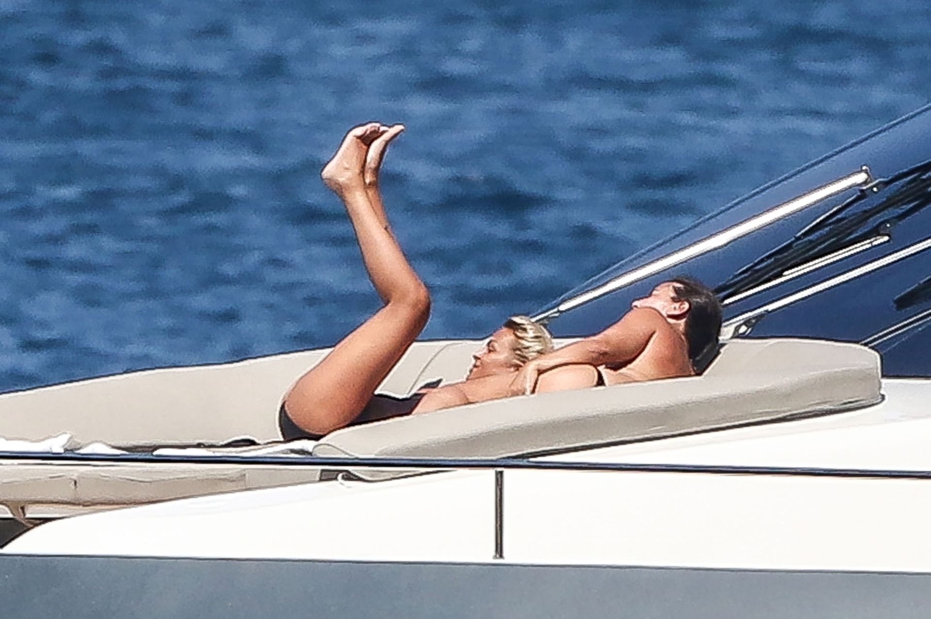 Экс-подруга Сильвио Берлускони Франческа Паскале и певица Паола Турчи загорают и снимают топы на своём солнечном отпуске на роскошной яхте у побережья Соррентино в Италии, 13.08.2020.