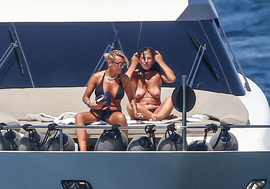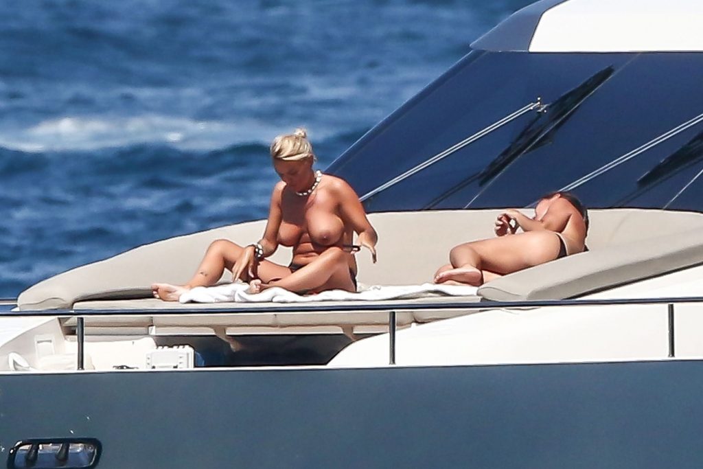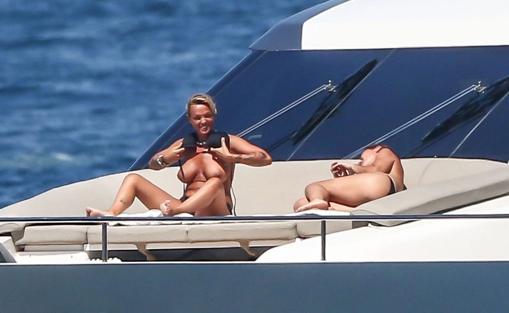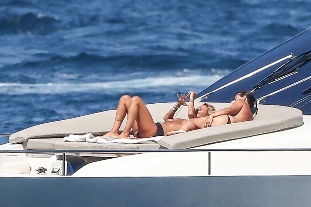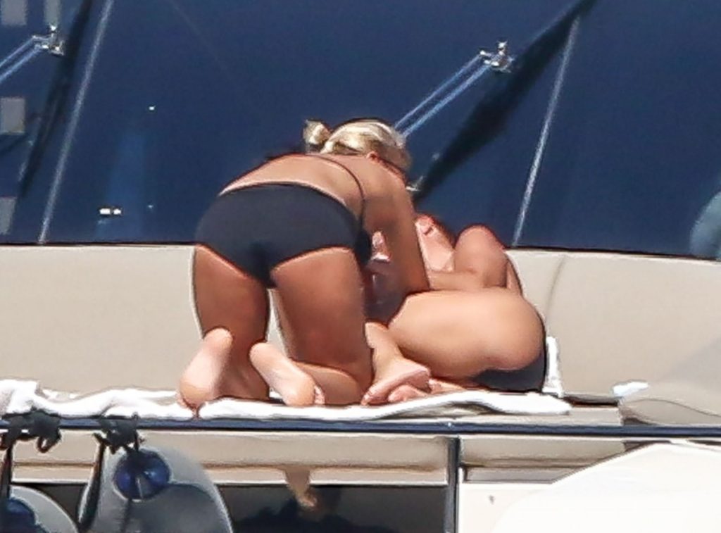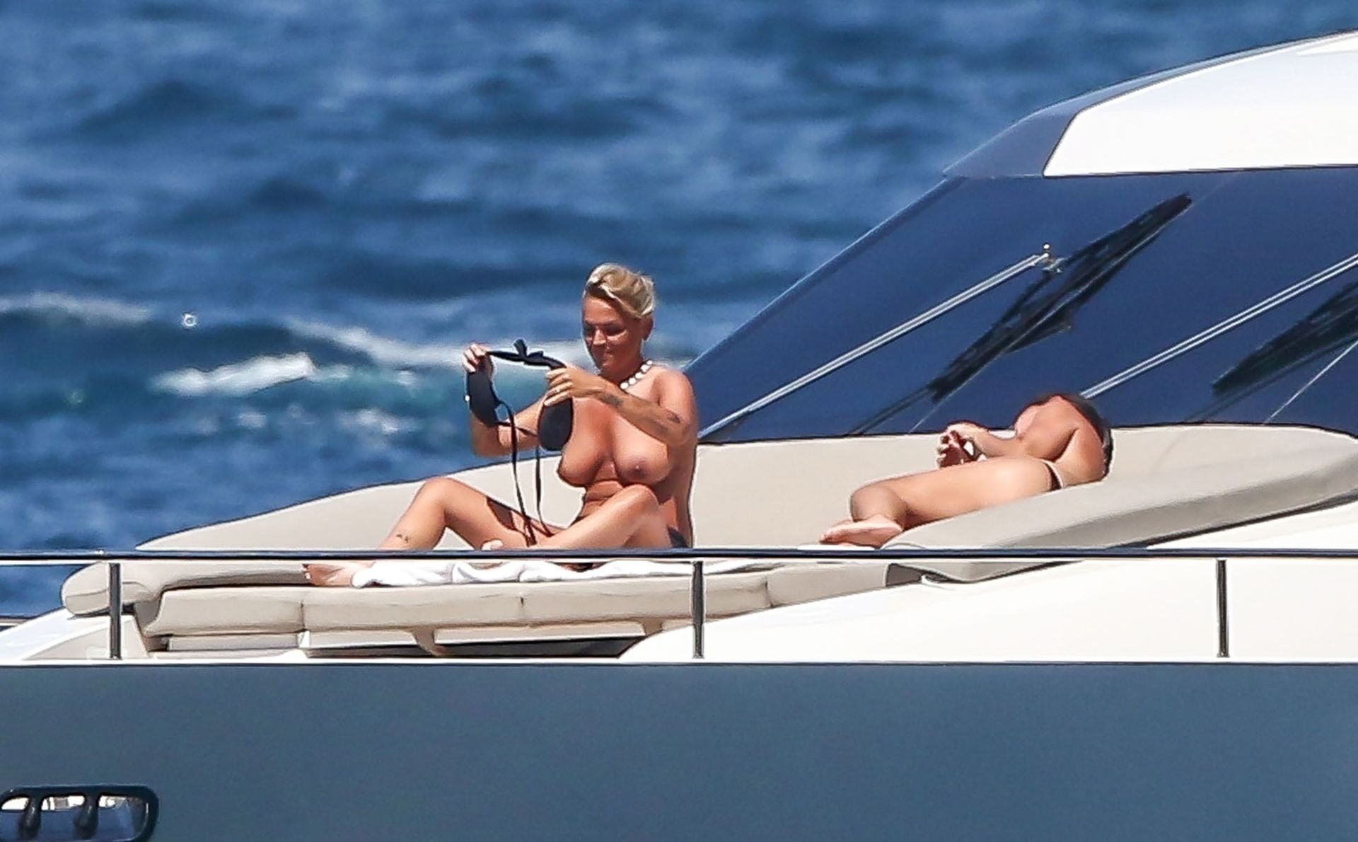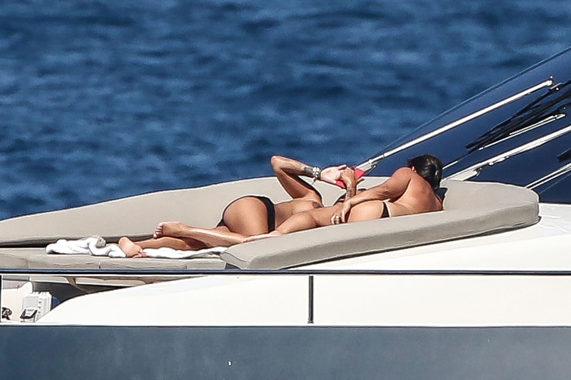 Экс-подруга Сильвио Берлускони Франческа Паскале и певица Паола Турчи загорают и снимают топы на своём солнечном отпуске на роскошной яхте у побережья Соррентино в Италии, 13.08.2020.