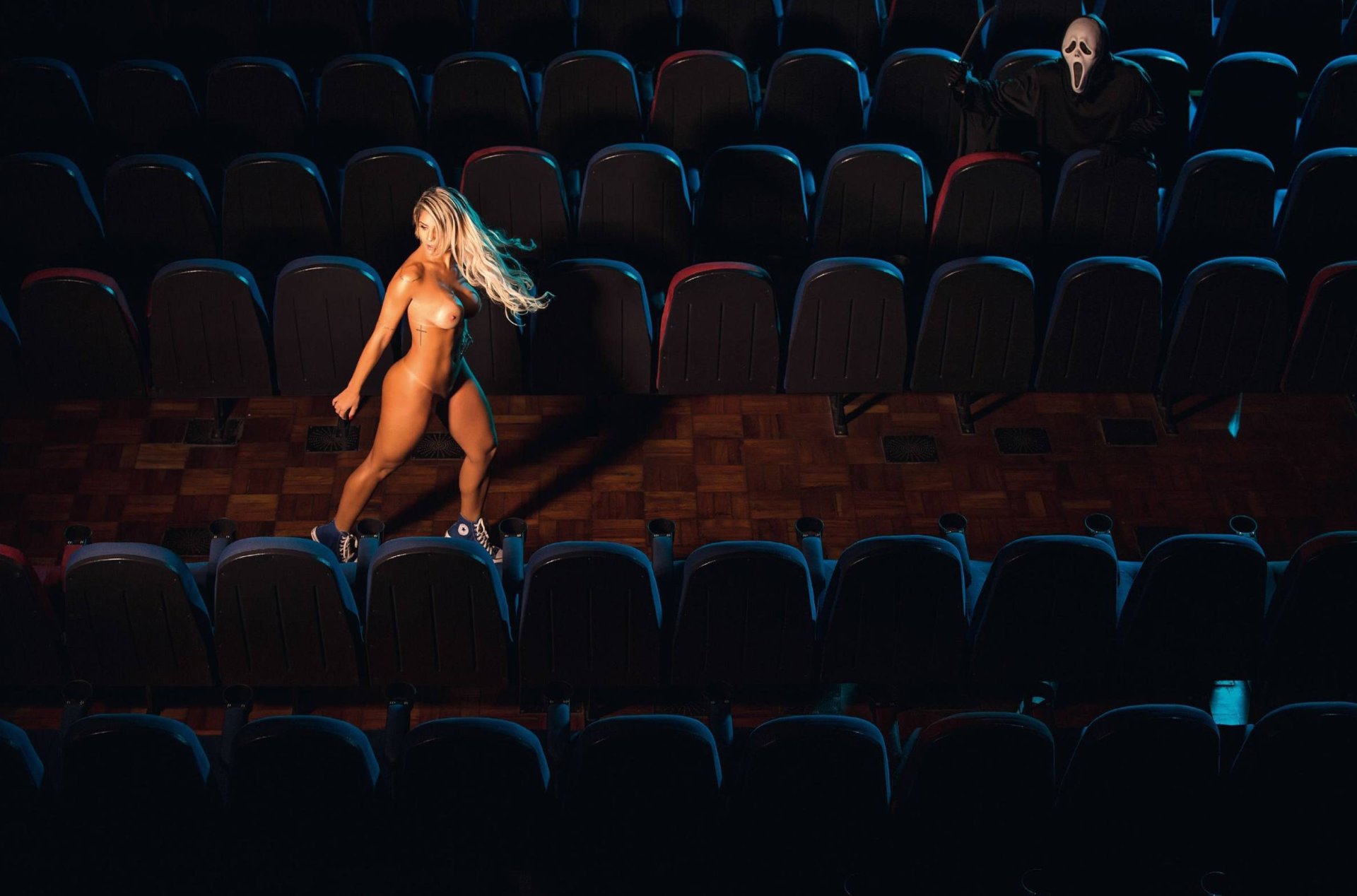 Посмотрите обнажённые и сексуальные фотографии от Пабло Саборидо и три закулисных видео с Иарой Рамос для Playboy Brazil (октябрь 2015), основанные на фильме “Крик”, потому что блондинка очень любит ужасы и сверхъестественное.