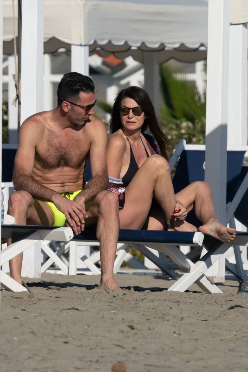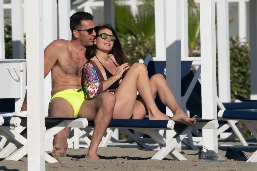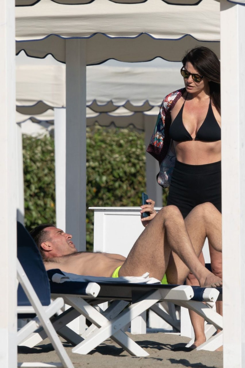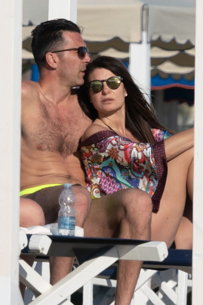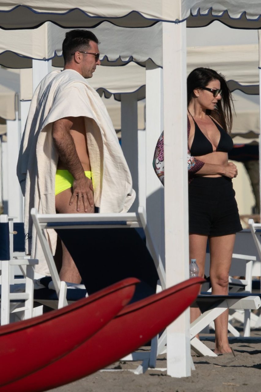 Gigi Buffon и Ilaria D’Amico были замечены на пляже в Форте-дей-Марми, Италия, 01.06.2019. 45-летняя итальянская телеведущая продемонстрировала свое сексуальное тело, надев черный бикини.