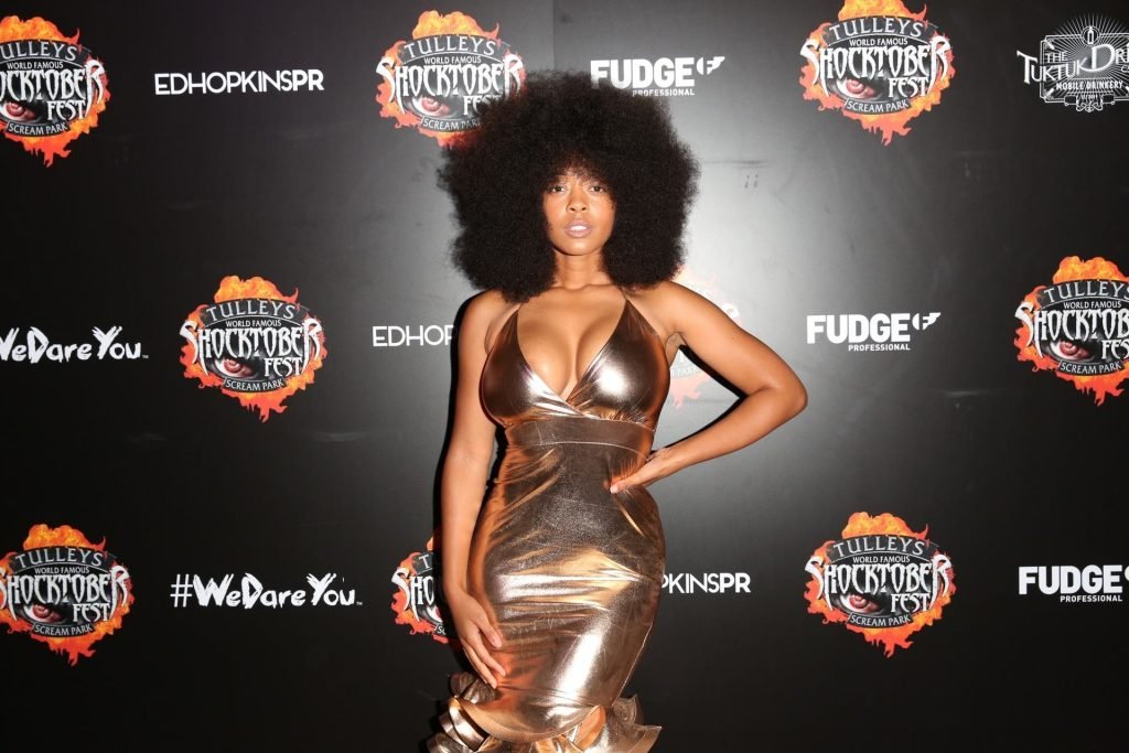 Бренд-инфлюенсер на фото с фестиваля Shocktober Fest на ферме Tulleys в Кроули, 04.10.2019.