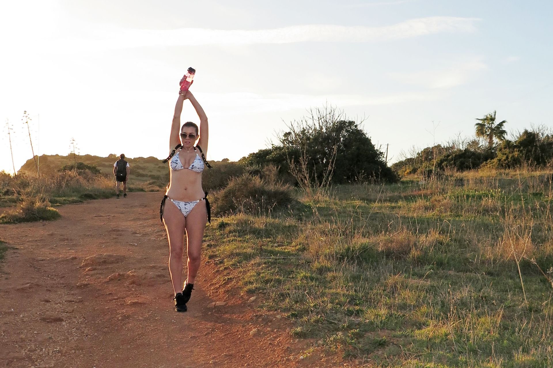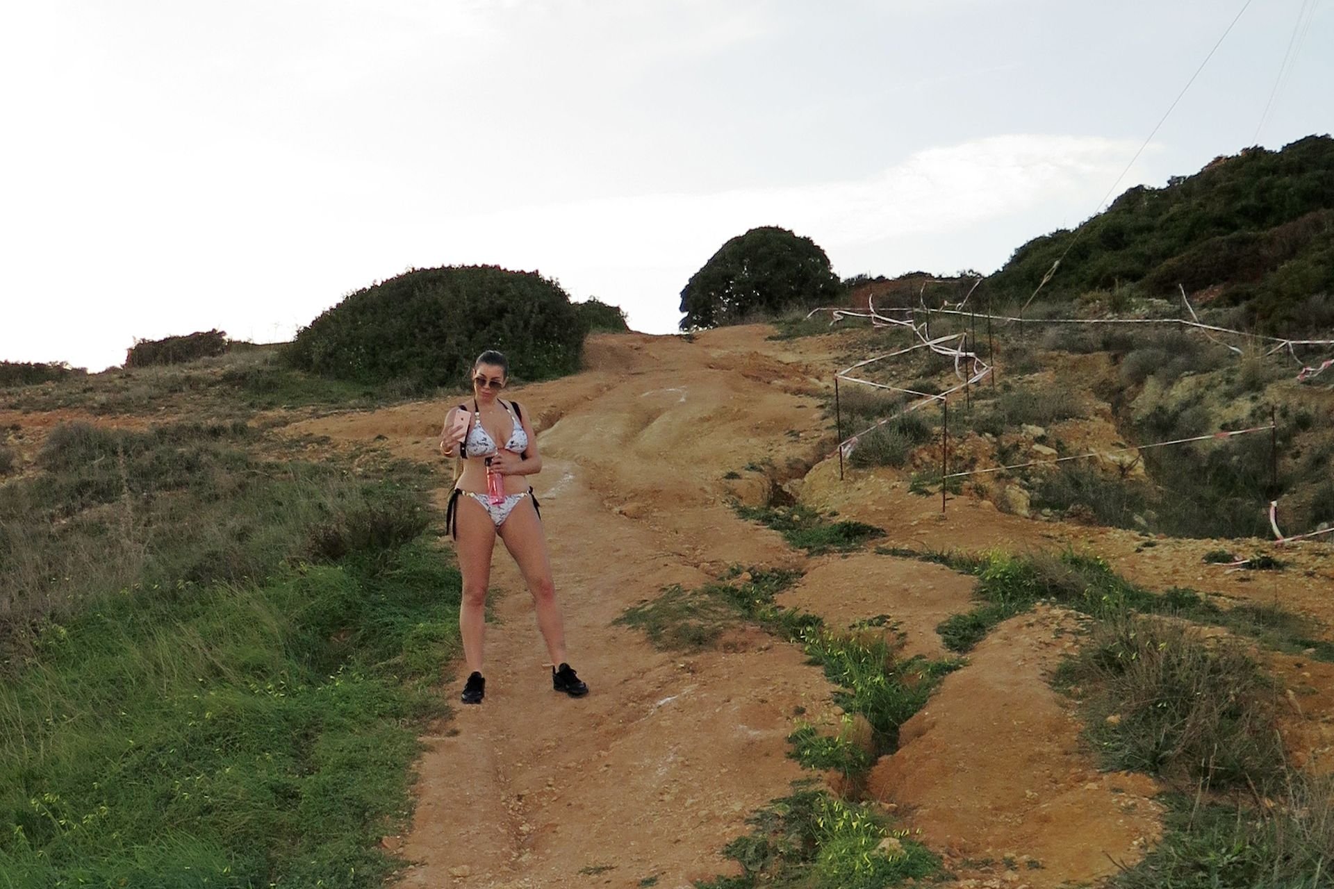 Имоджен Томас уверенно демонстрирует свою подтянутую фигуру и отправляется в поход в бикини из своей коллекции Chasing Summer, кроссовках Valentino и рюкзаке Burberry, 26.01.2019.