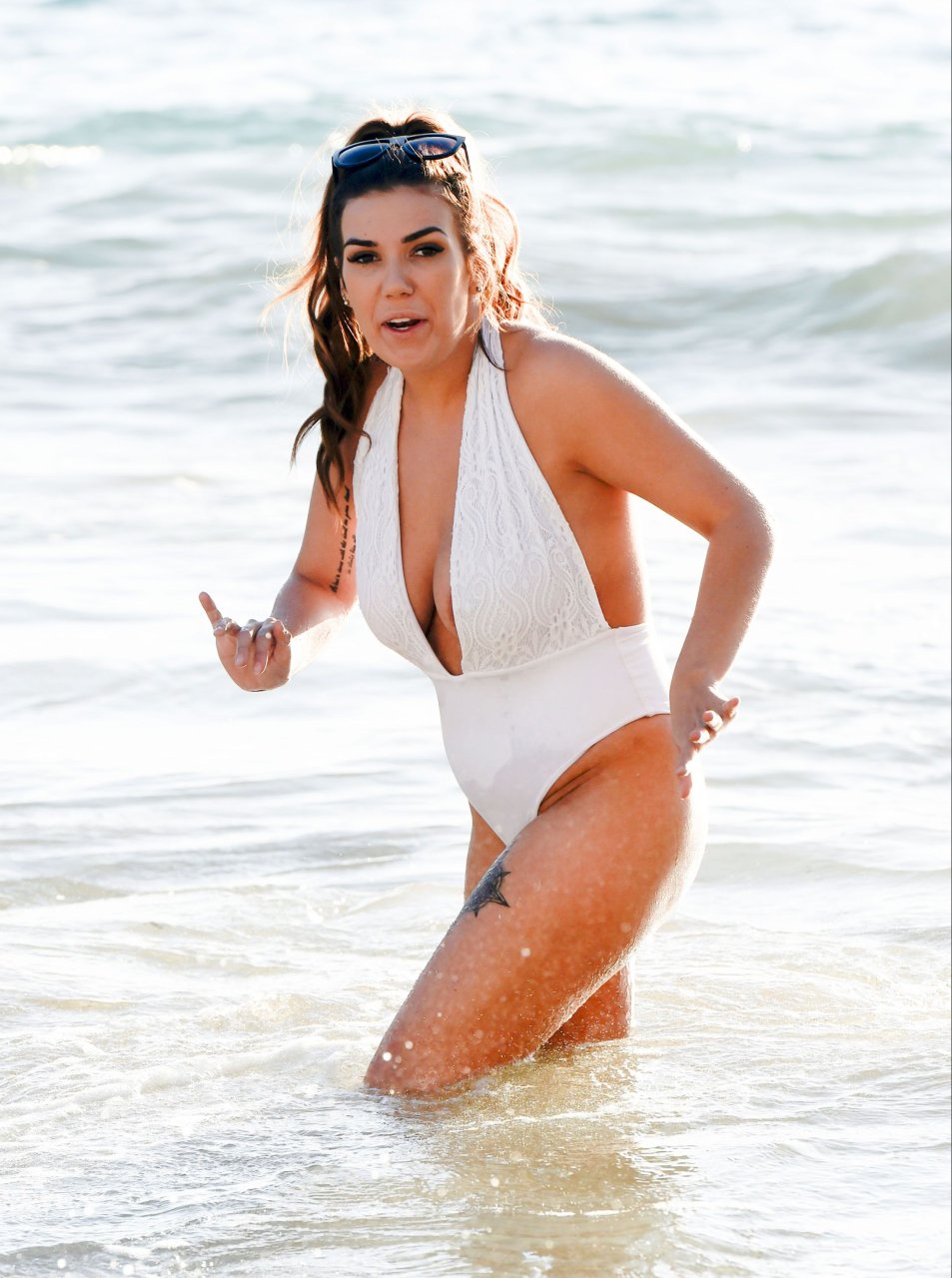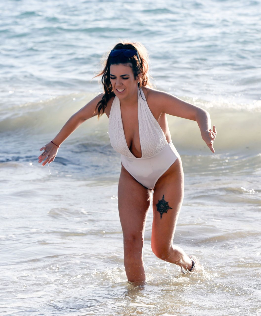 Imogen Townley носит белый купальник и демонстрирует идеальный боковой бюст на отдыхе на пляже в Испании, 13.01.2017. Imogen Townley — британская звезда реалити-шоу. Возраст: 24 (19 марта 1992).