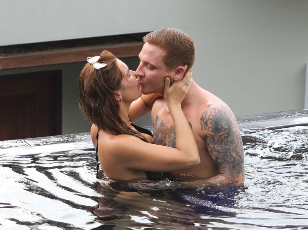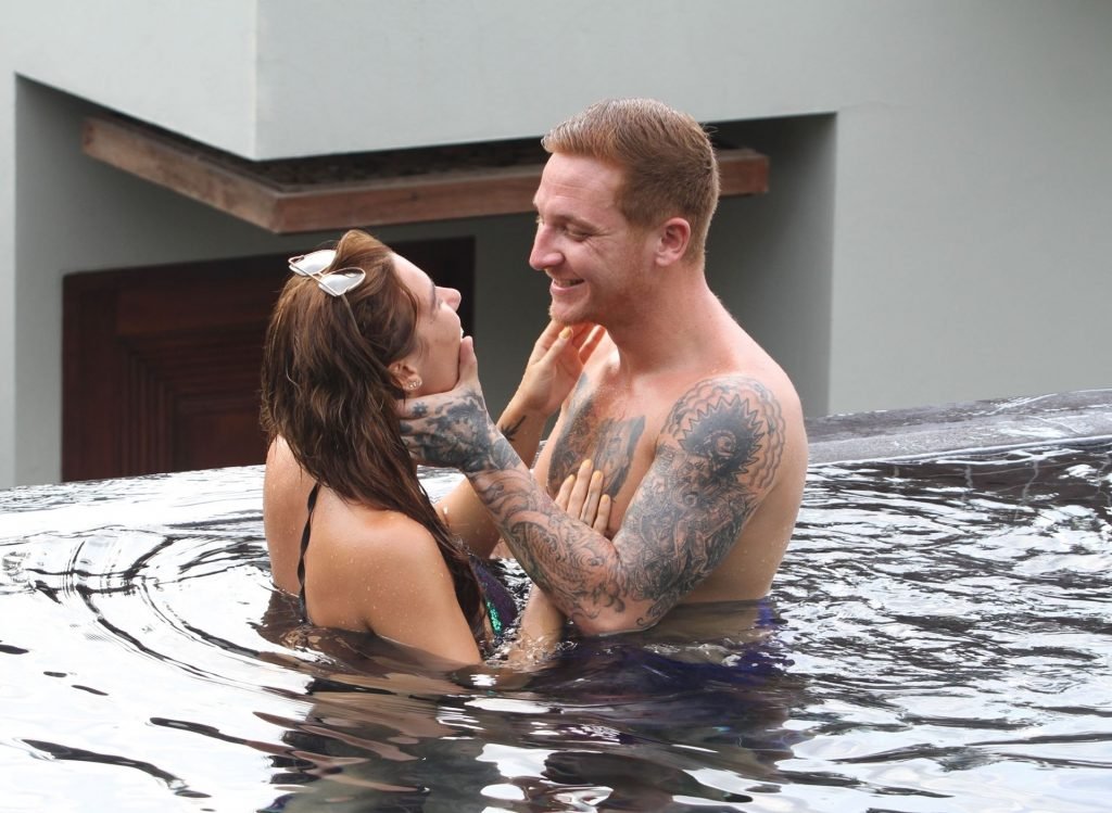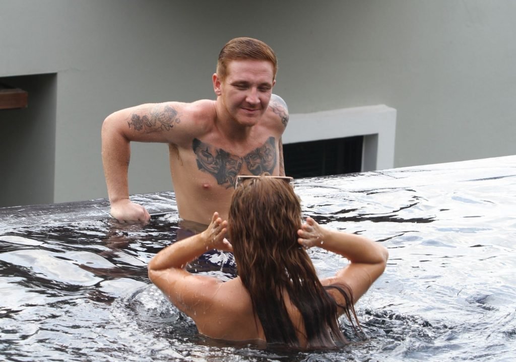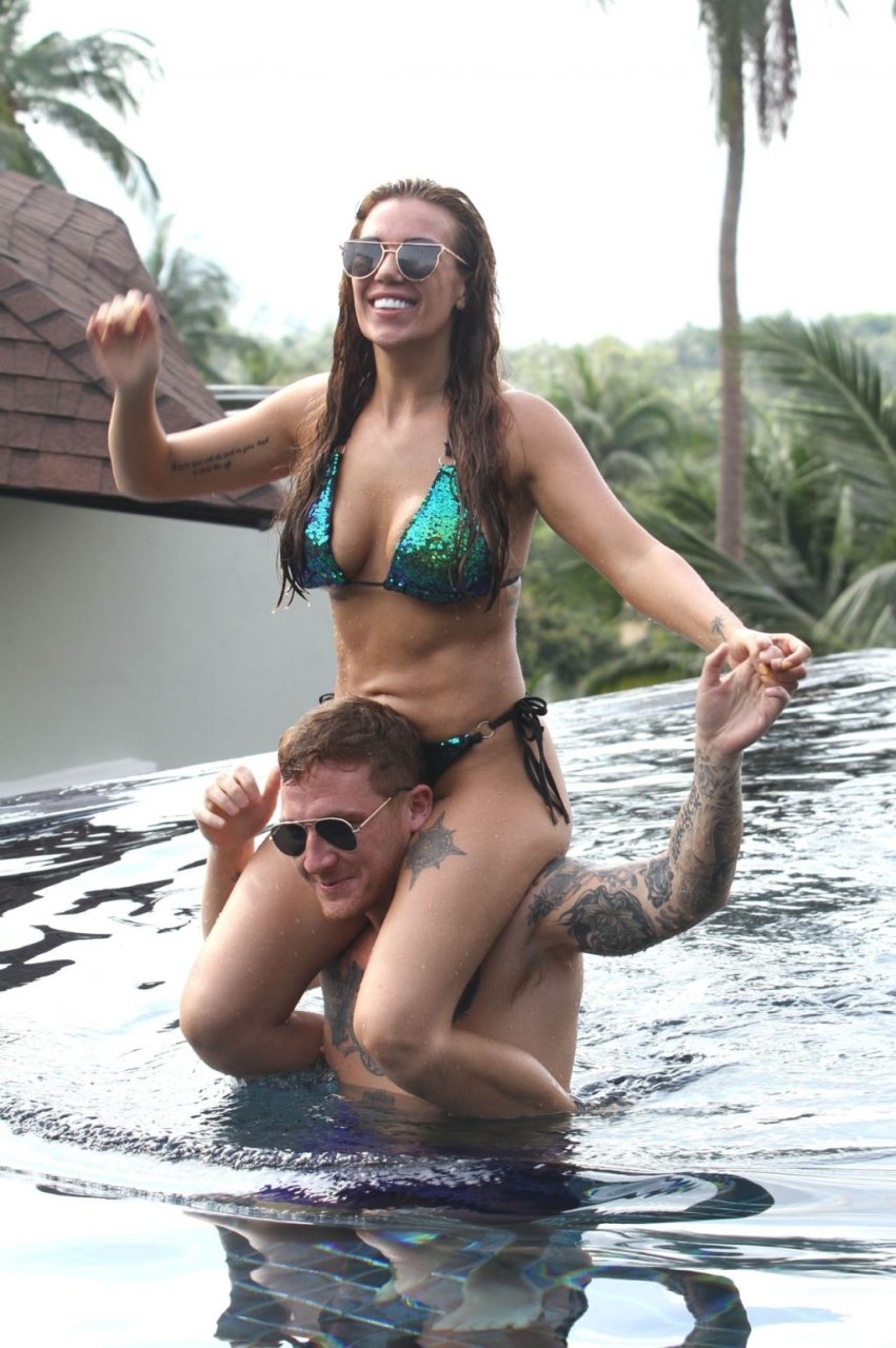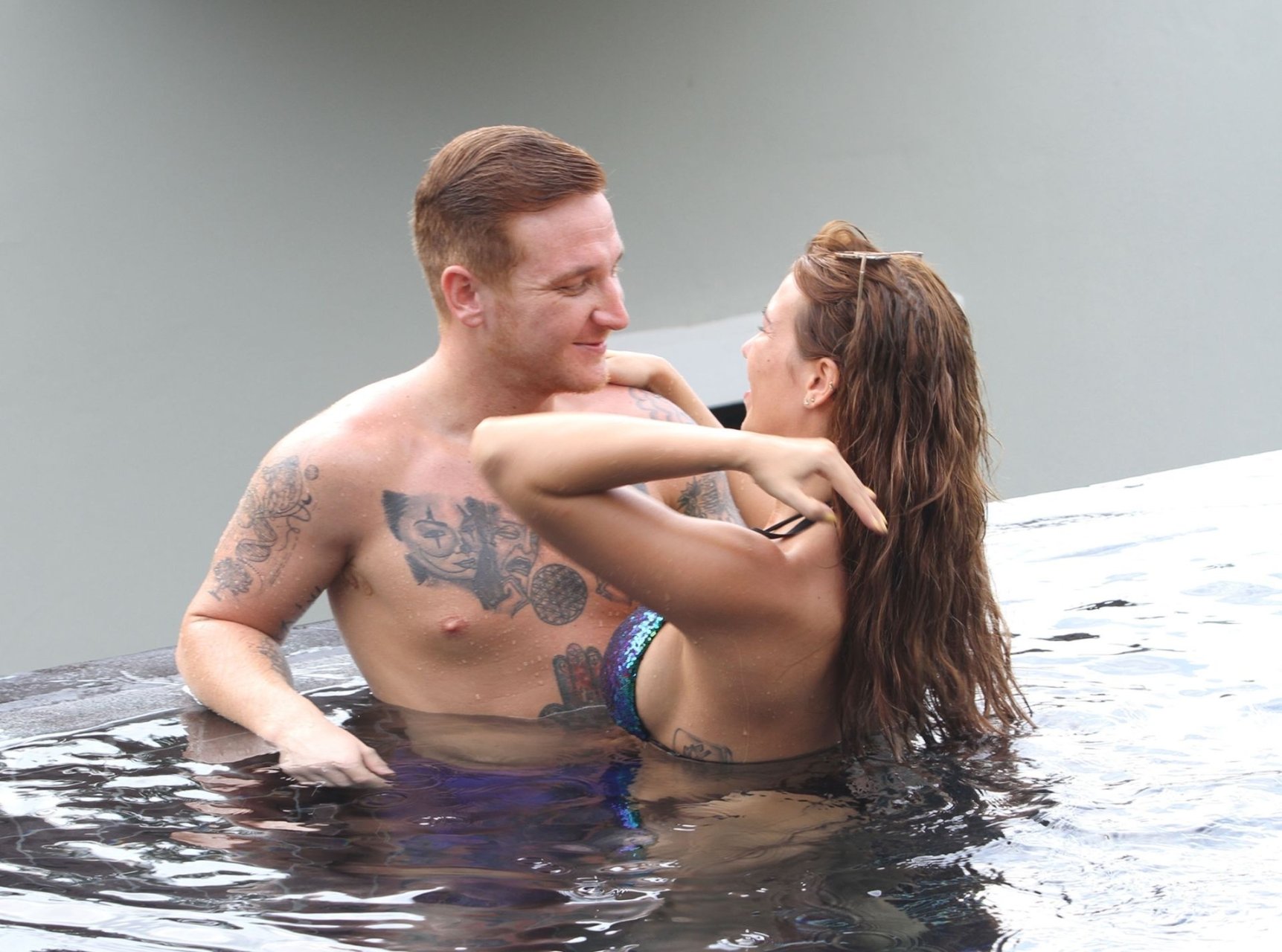 “Звезда “Ibiza Weekender” Имоджен Таунли демонстрирует сексуальную привязанность со своим сильно татуированным парнем Льюисом.