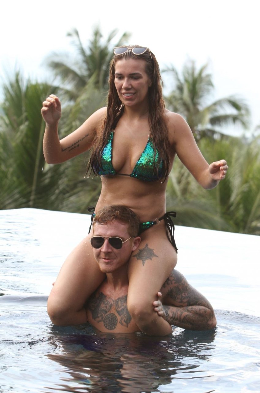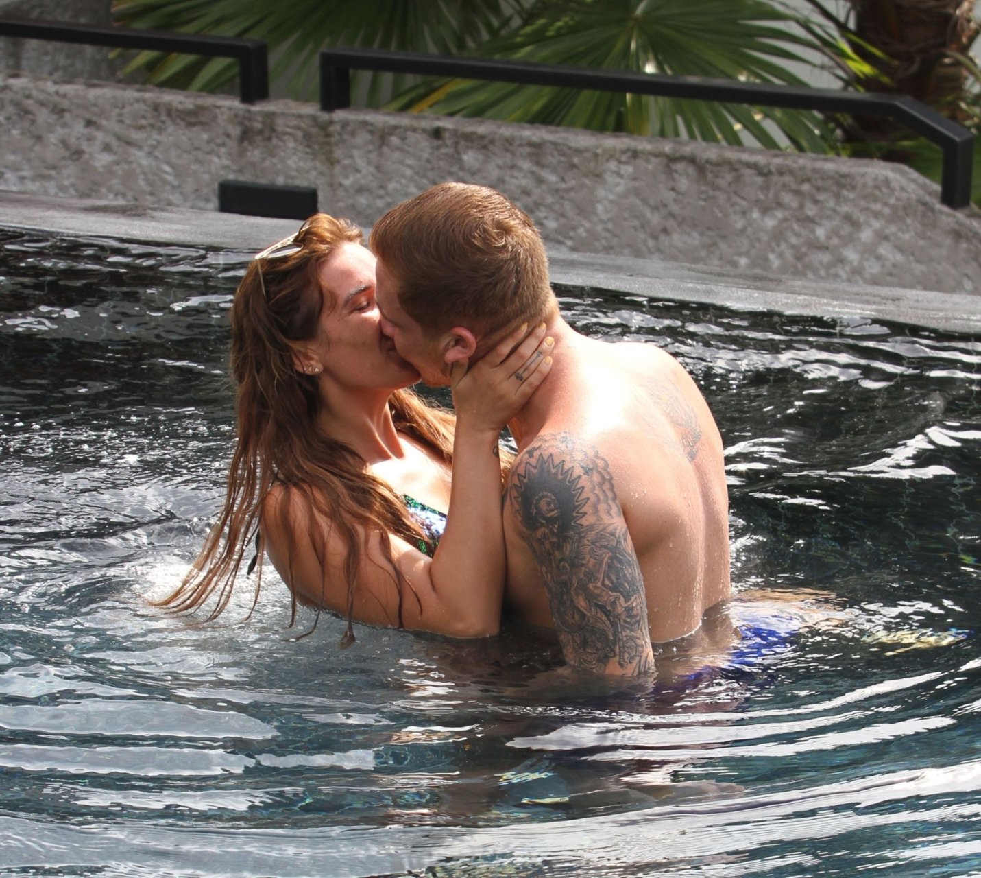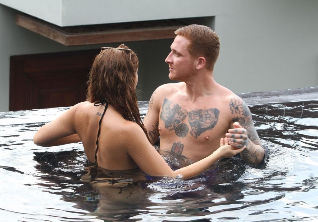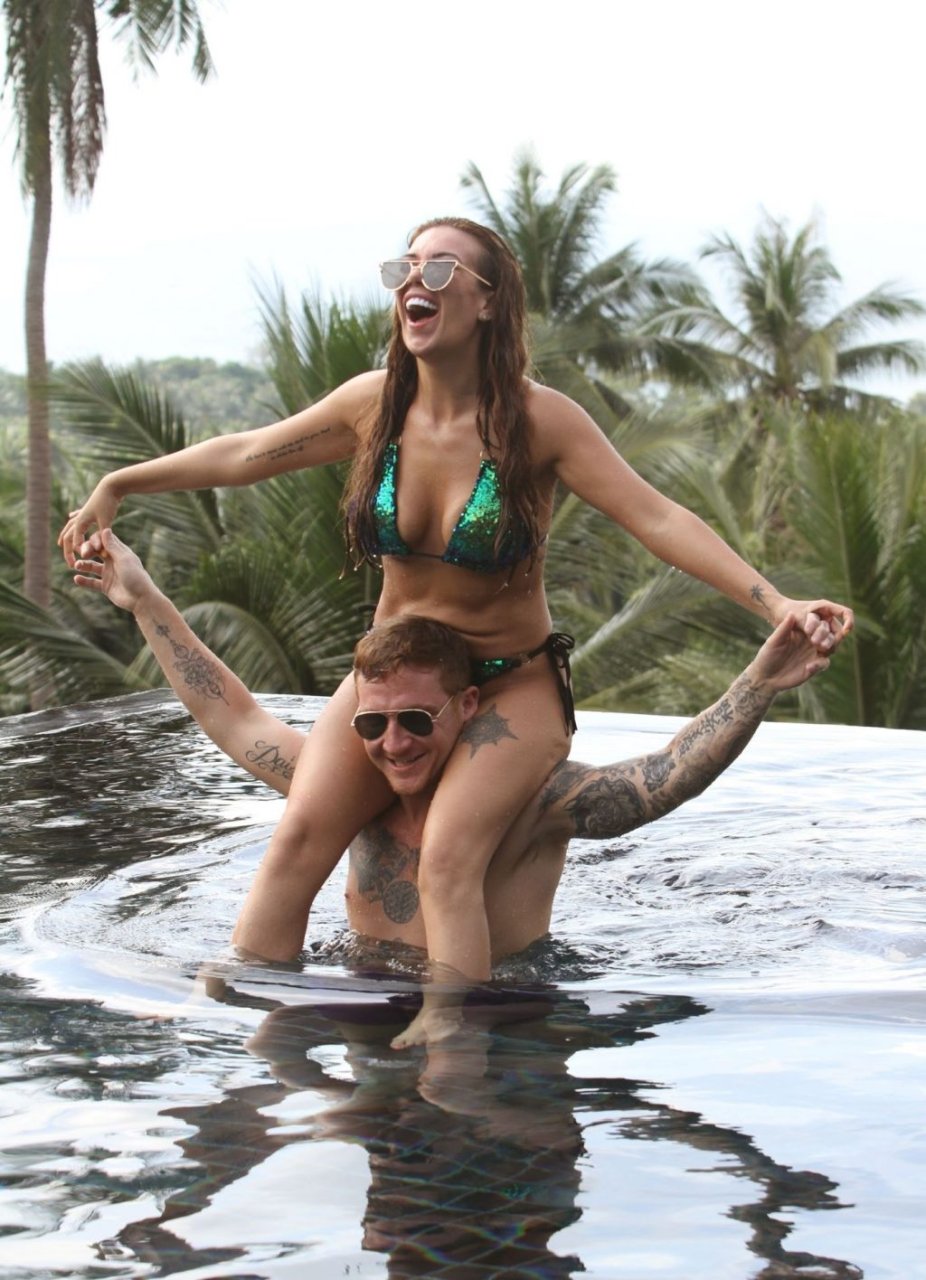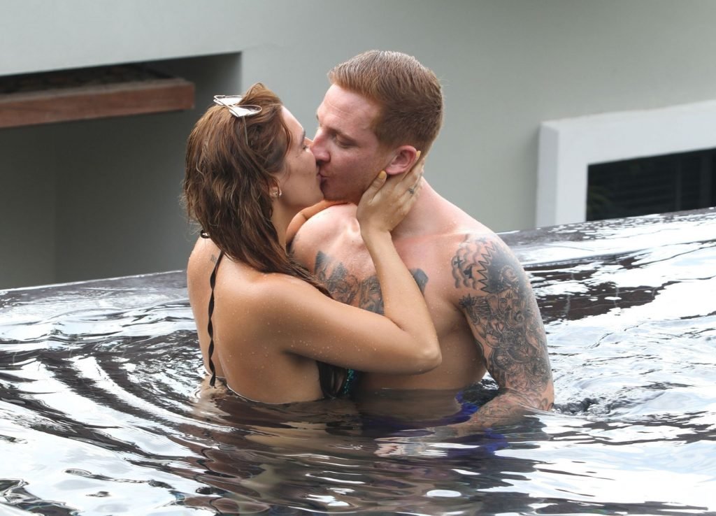 “Звезда “Ibiza Weekender” Имоджен Таунли демонстрирует сексуальную привязанность со своим сильно татуированным парнем Льюисом.