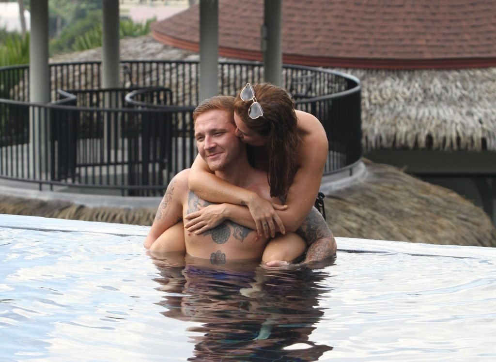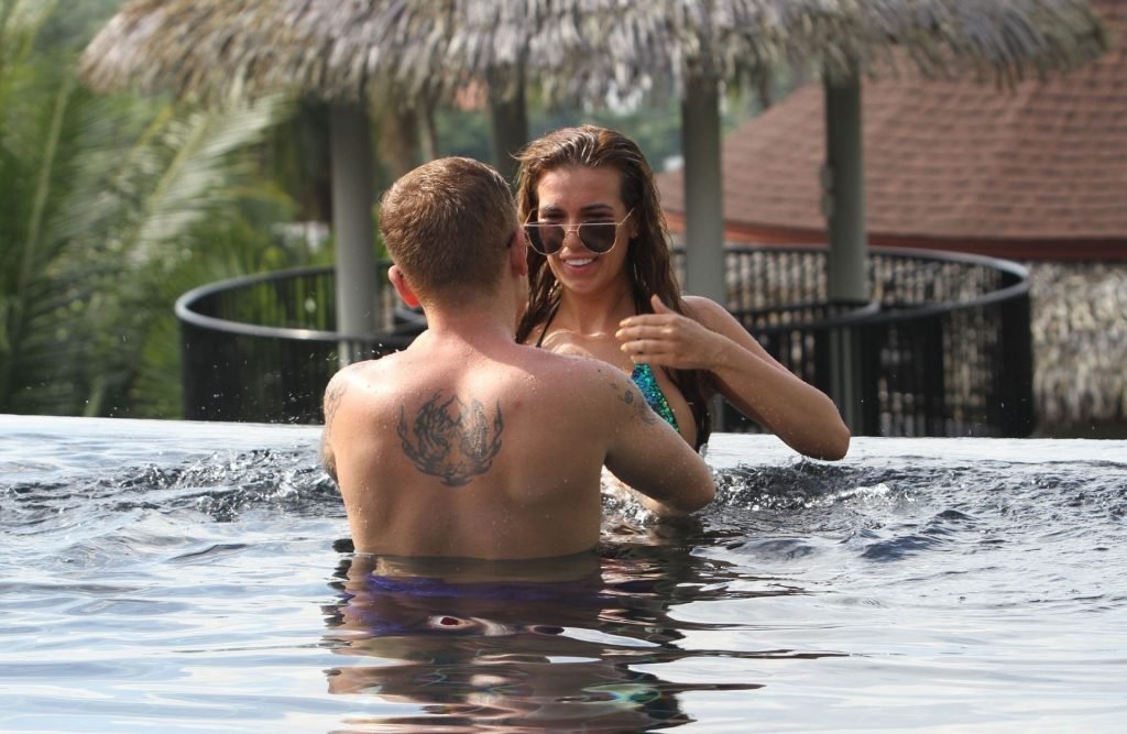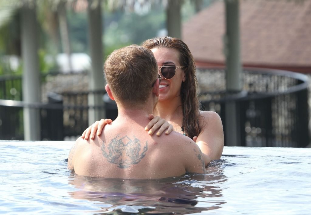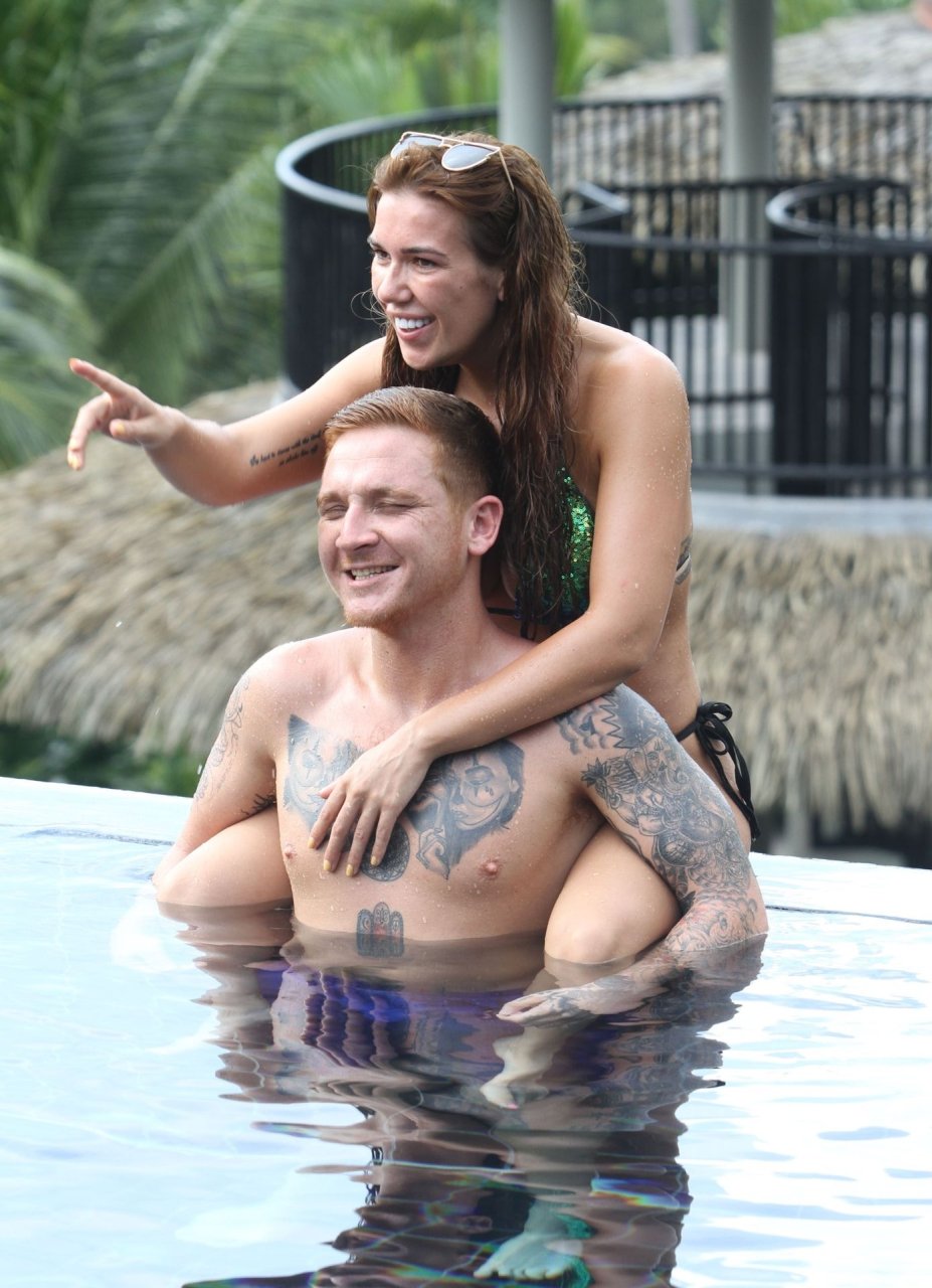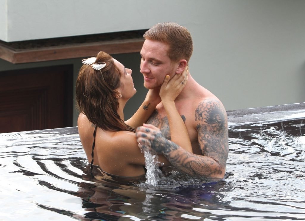 “Звезда “Ibiza Weekender” Имоджен Таунли демонстрирует сексуальную привязанность со своим сильно татуированным парнем Льюисом.