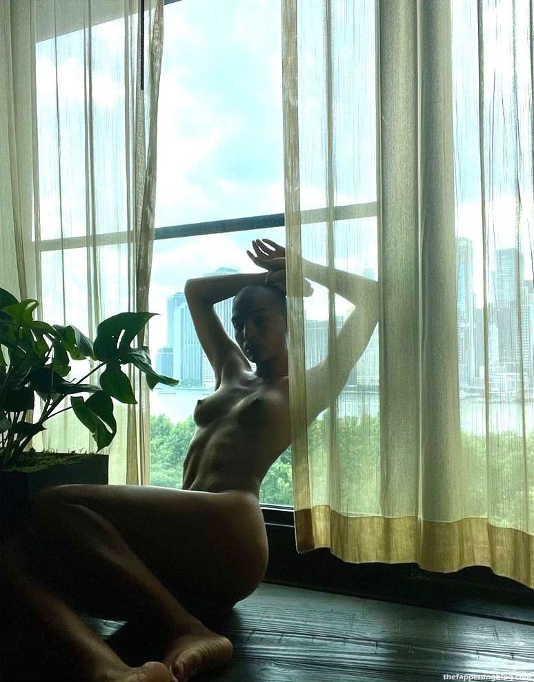 Американская актриса/модель Indya Moore позирует обнажённой перед окном в новой фотосессии для социальных сетей (июнь 2021).