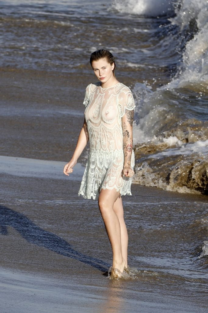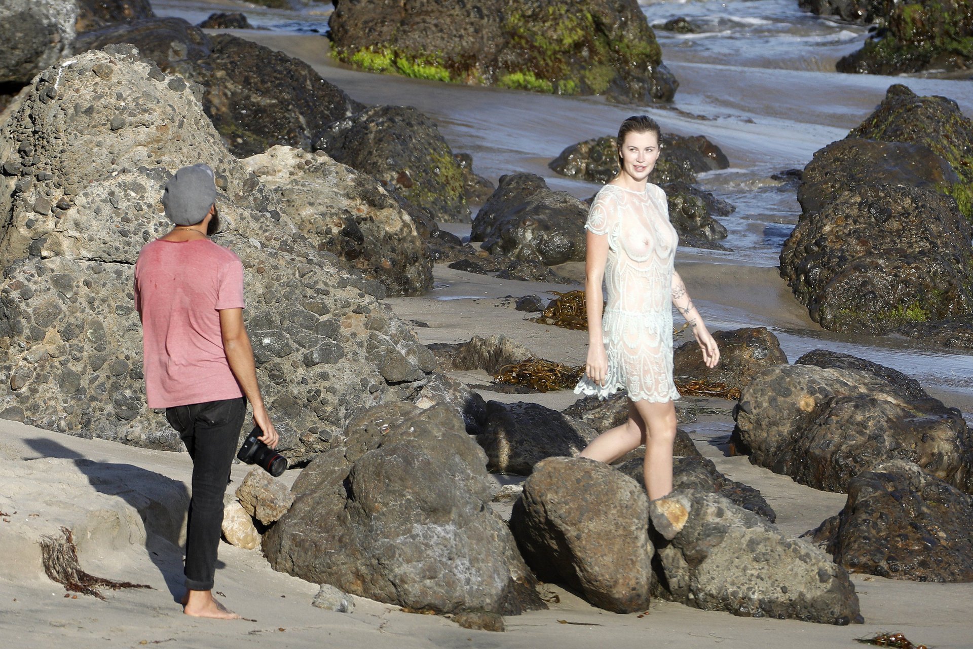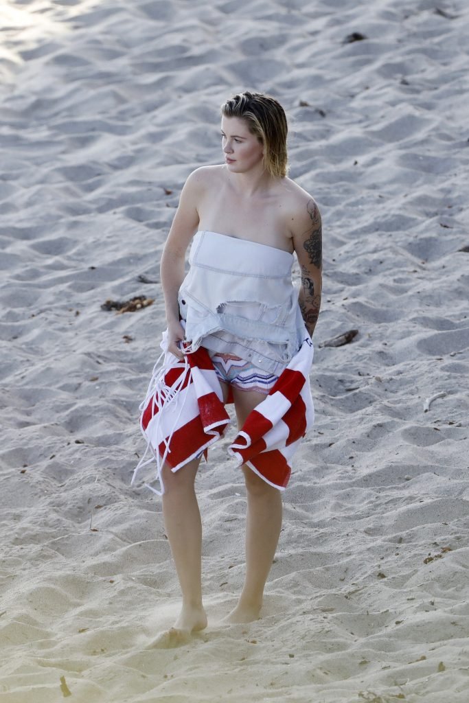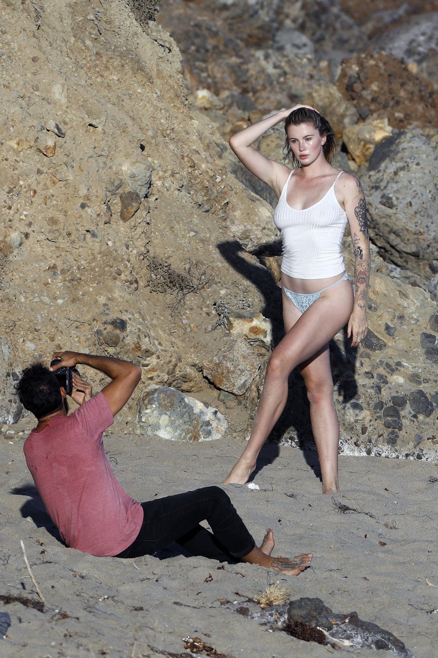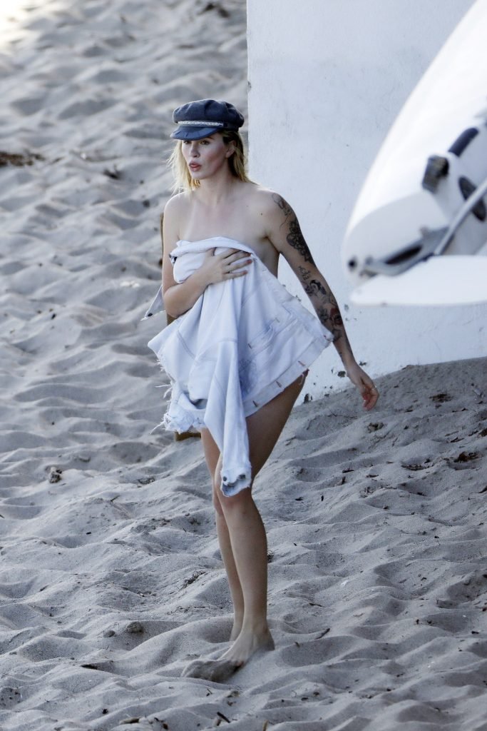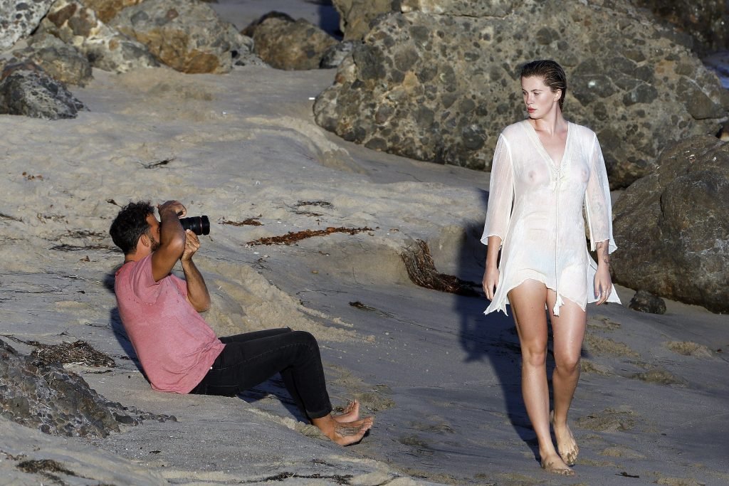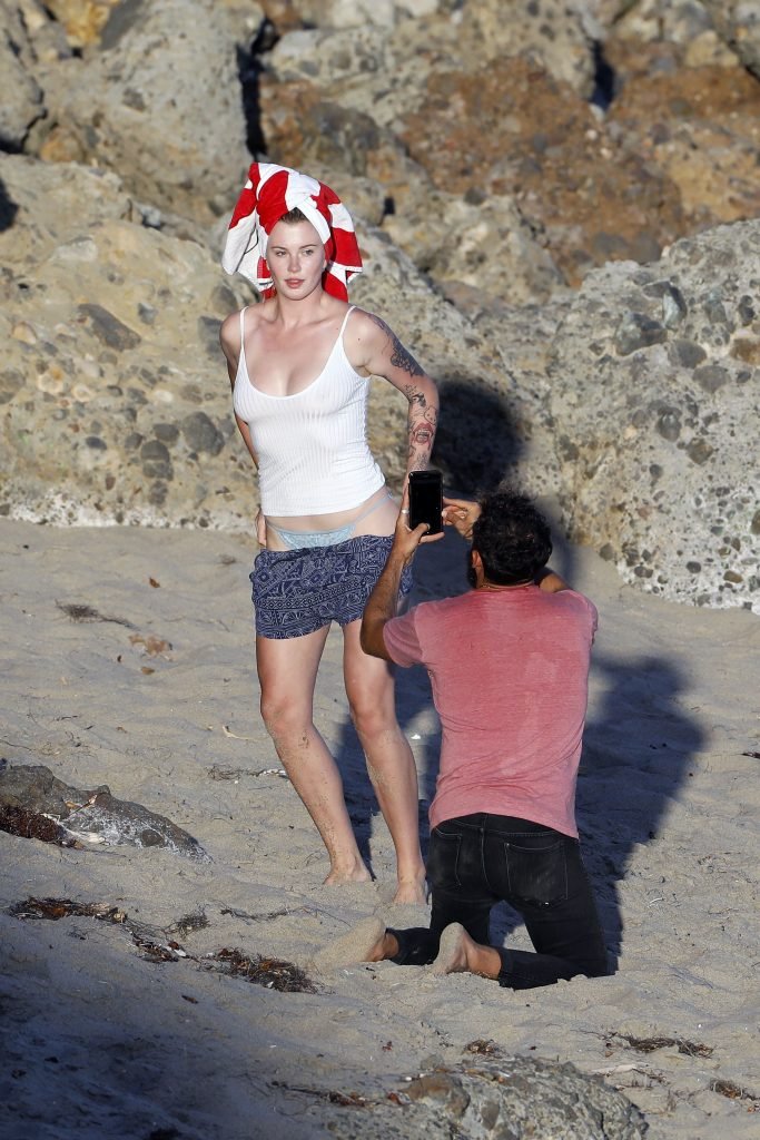 Айрленд Болдуин позирует для фотосессии на пляже в Малибу, 05.10.2017. Айрленд Болдуин-Бейсингер — американская модель, актриса (Кампус Коллер). Возраст – 21 год (родилась 23 октября 1995).
