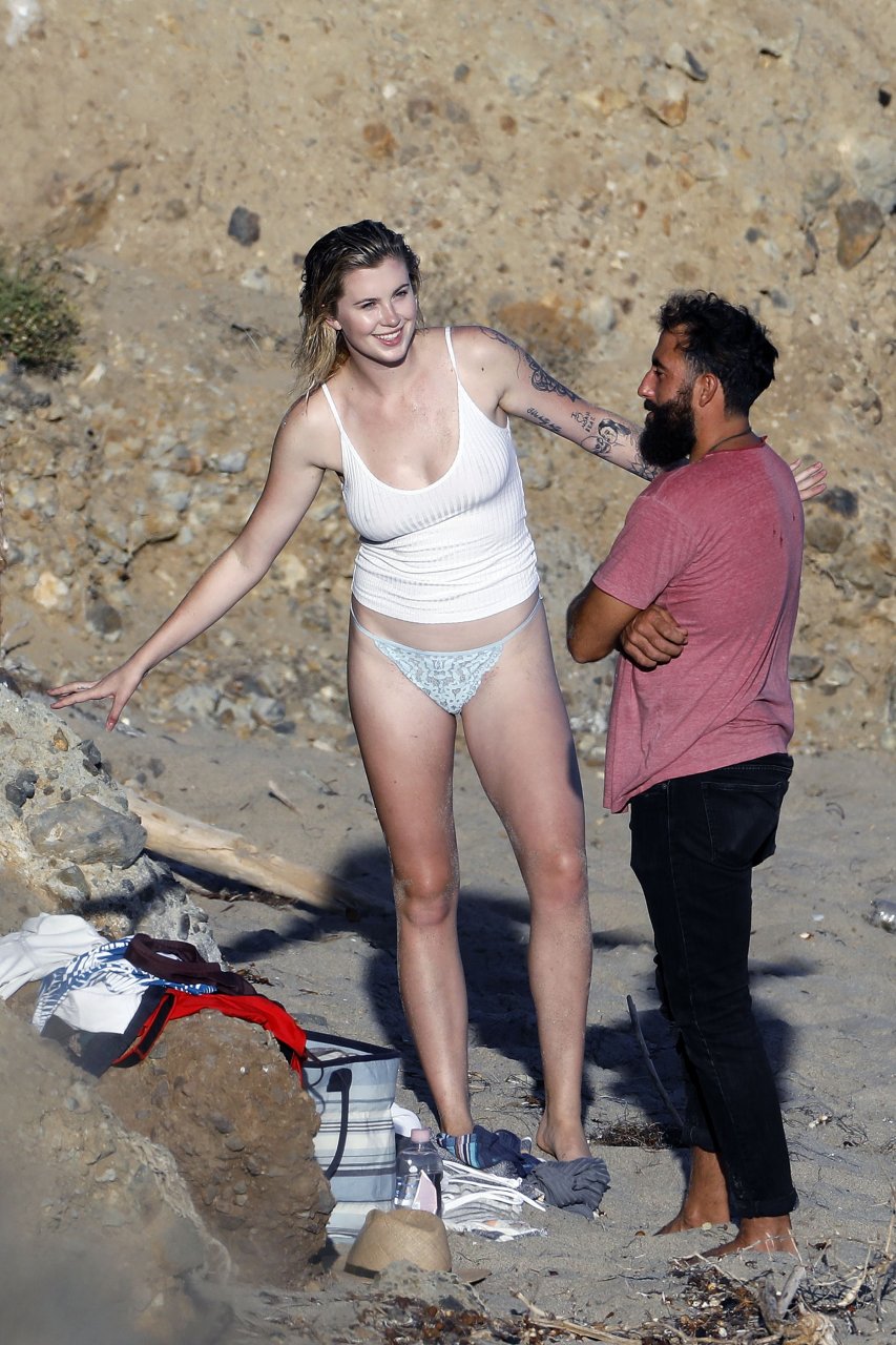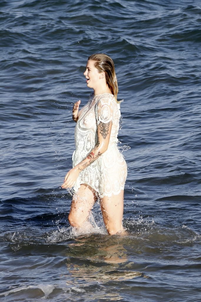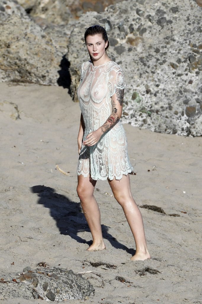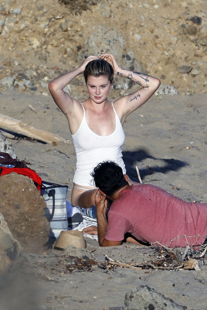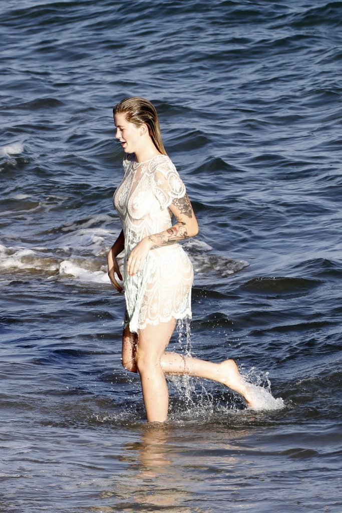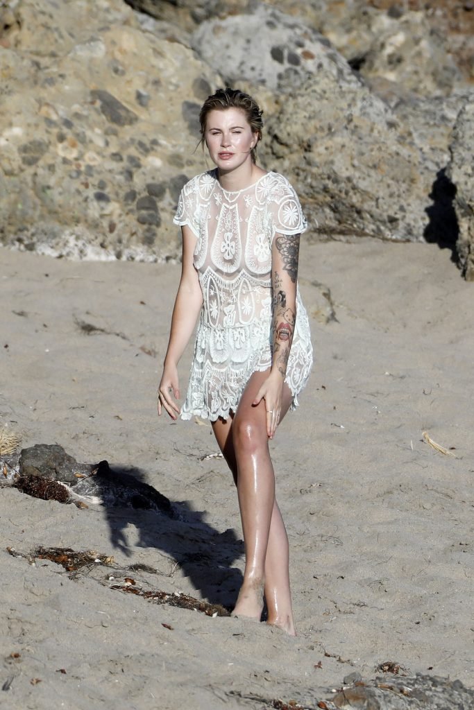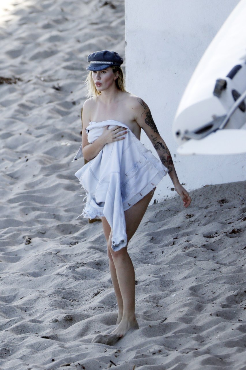 Айрленд Болдуин позирует для фотосессии на пляже в Малибу, 05.10.2017. Айрленд Болдуин-Бейсингер — американская модель, актриса (Кампус Коллер). Возраст – 21 год (родилась 23 октября 1995).
