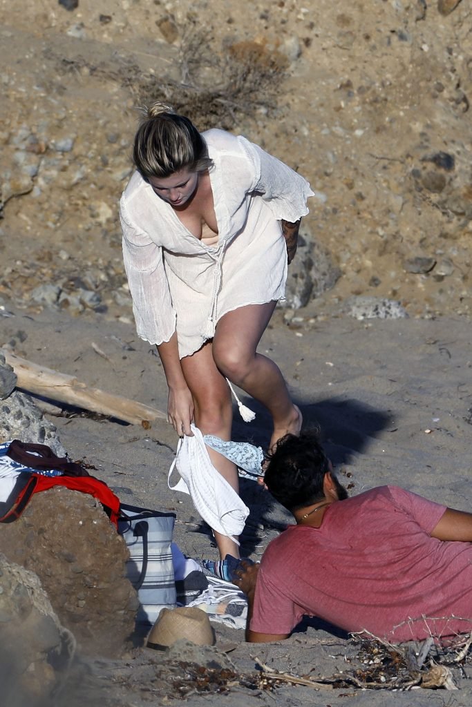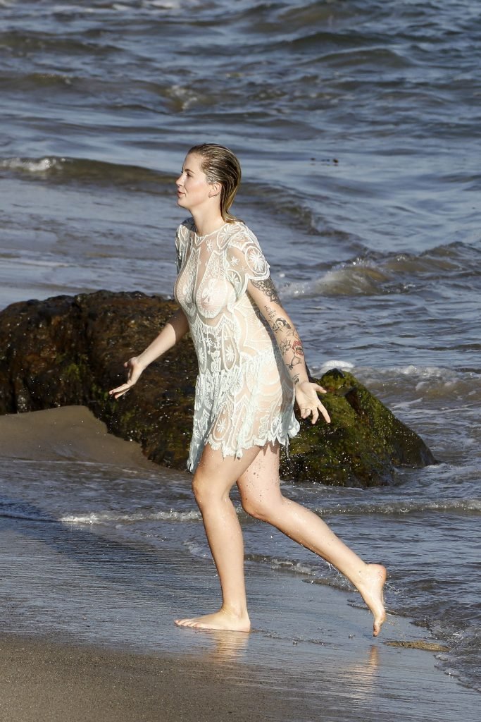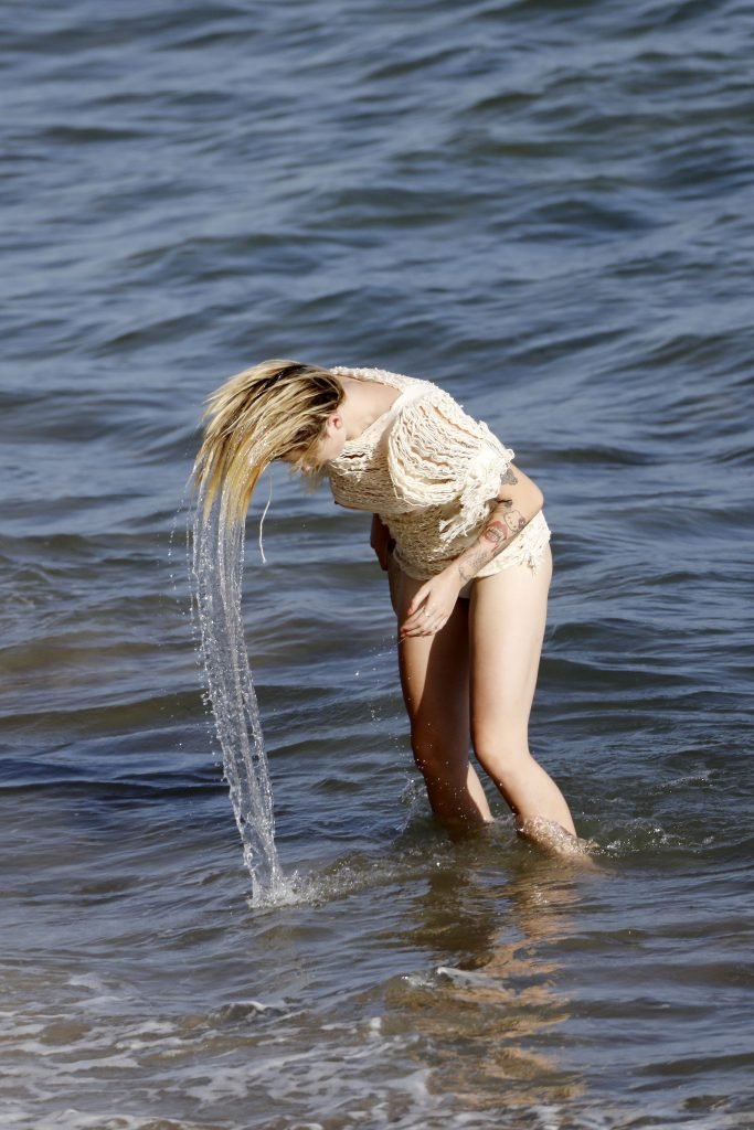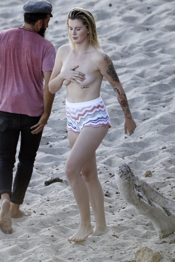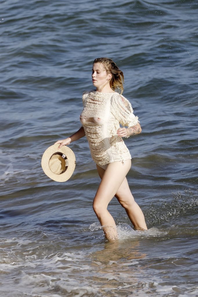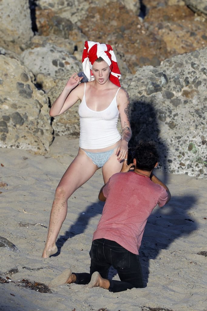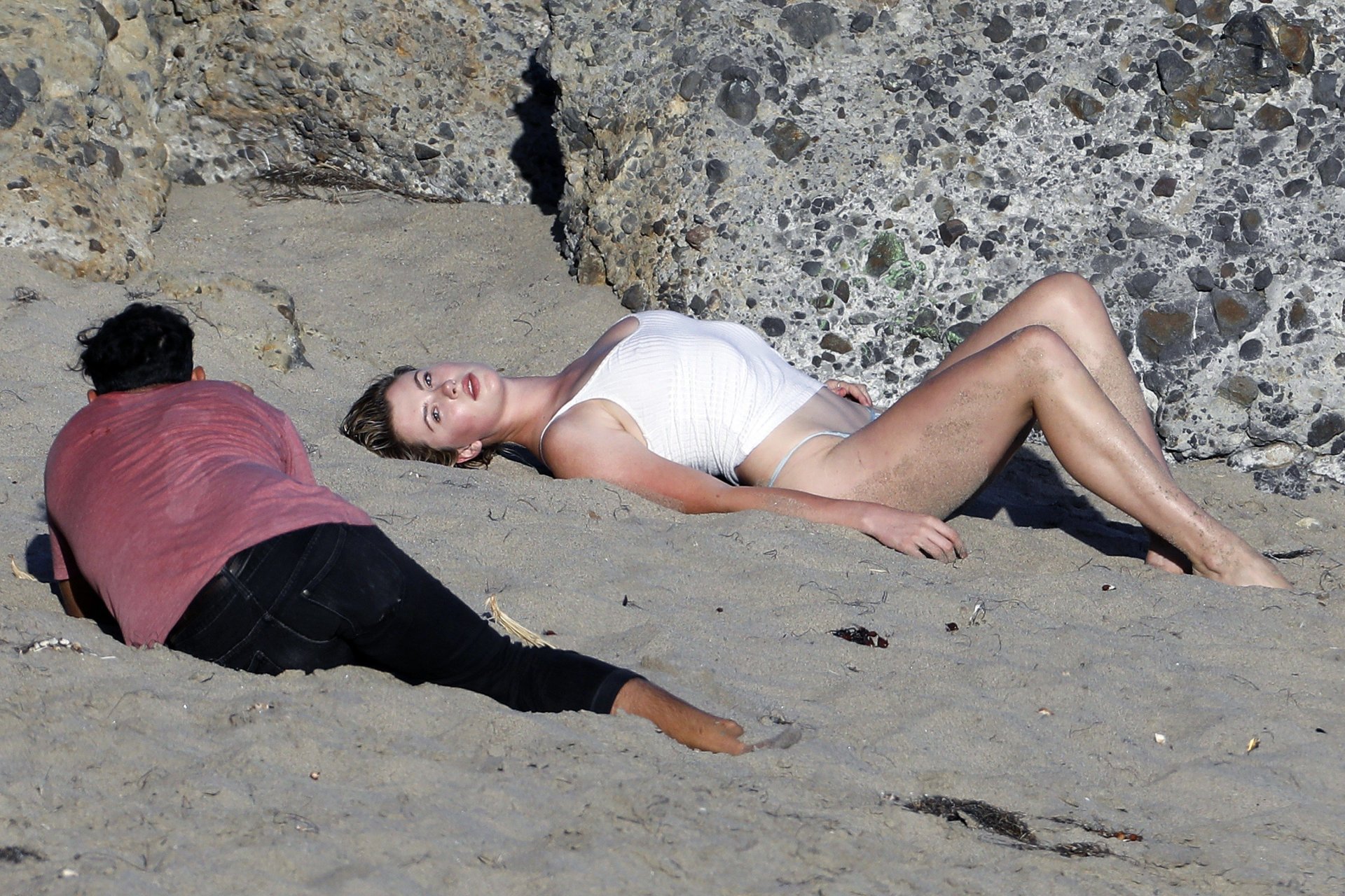 Айрленд Болдуин позирует для фотосессии на пляже в Малибу, 05.10.2017. Айрленд Болдуин-Бейсингер — американская модель, актриса (Кампус Коллер). Возраст – 21 год (родилась 23 октября 1995).