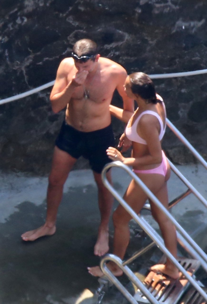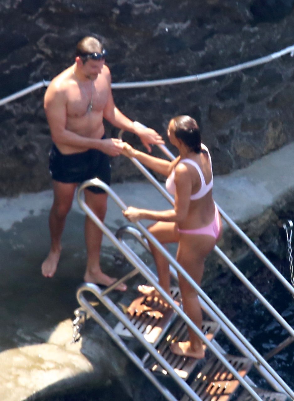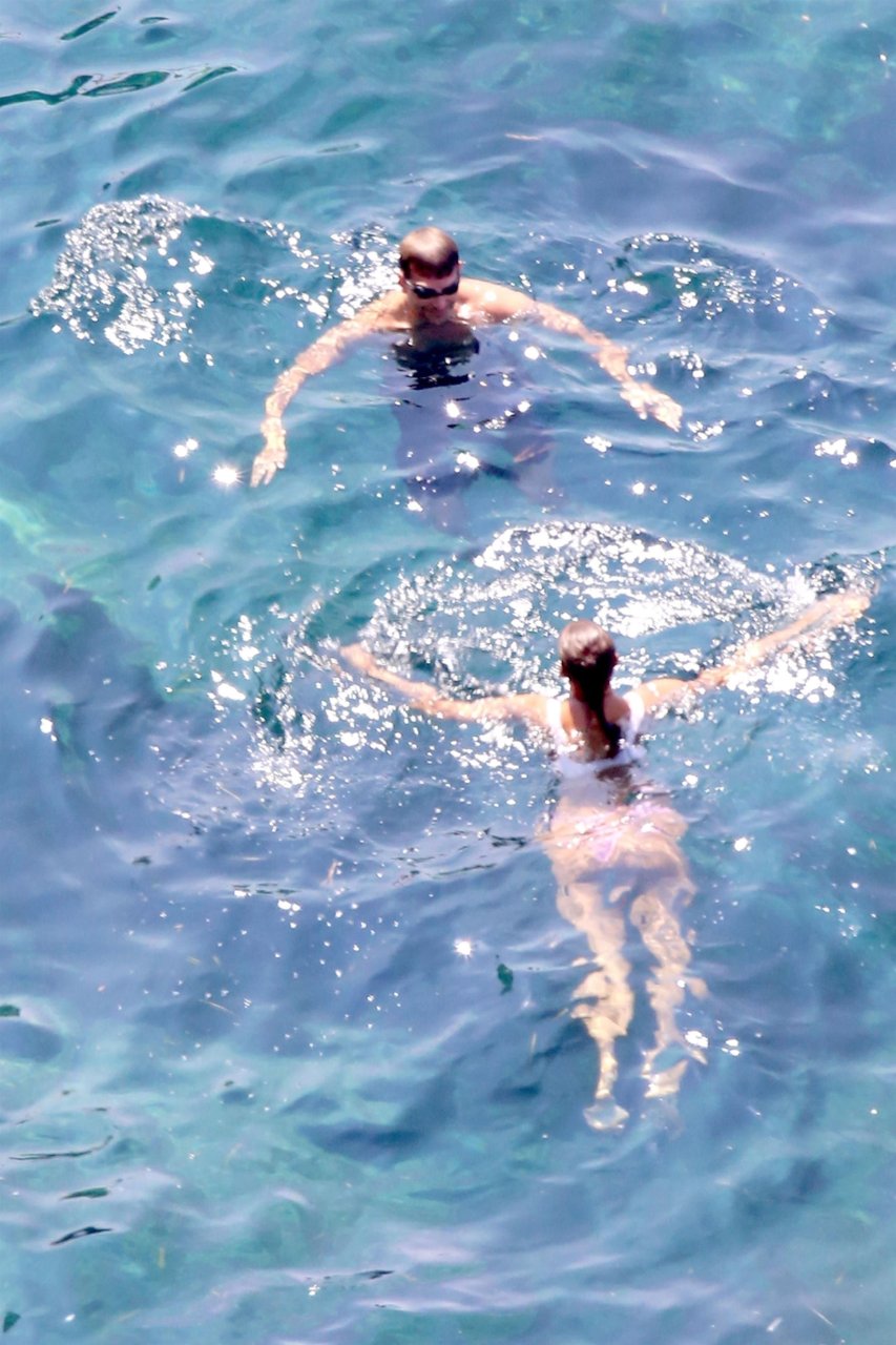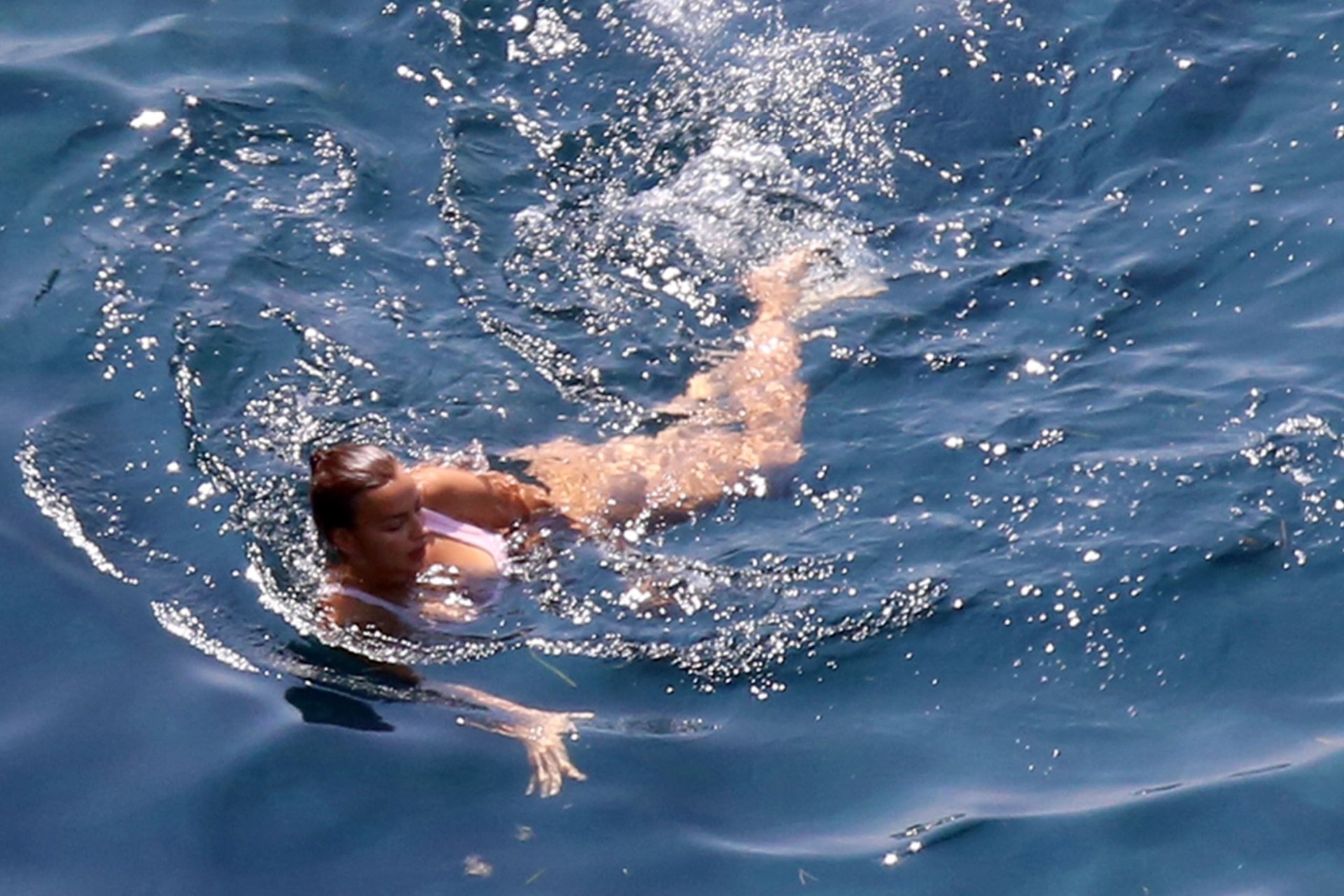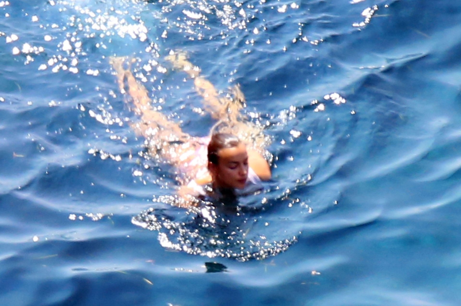 Счастливая пара была сфотографирована вместе, когда они плавали в бирюзовом море, а затем вместе загорали, наслаждаясь солнечными лучами. В один момент Ирина игриво щипает Брэдли за ягодицы, что он воспринял с юмором.