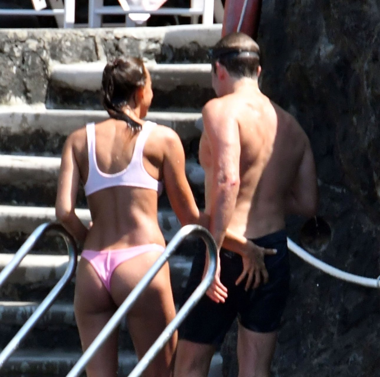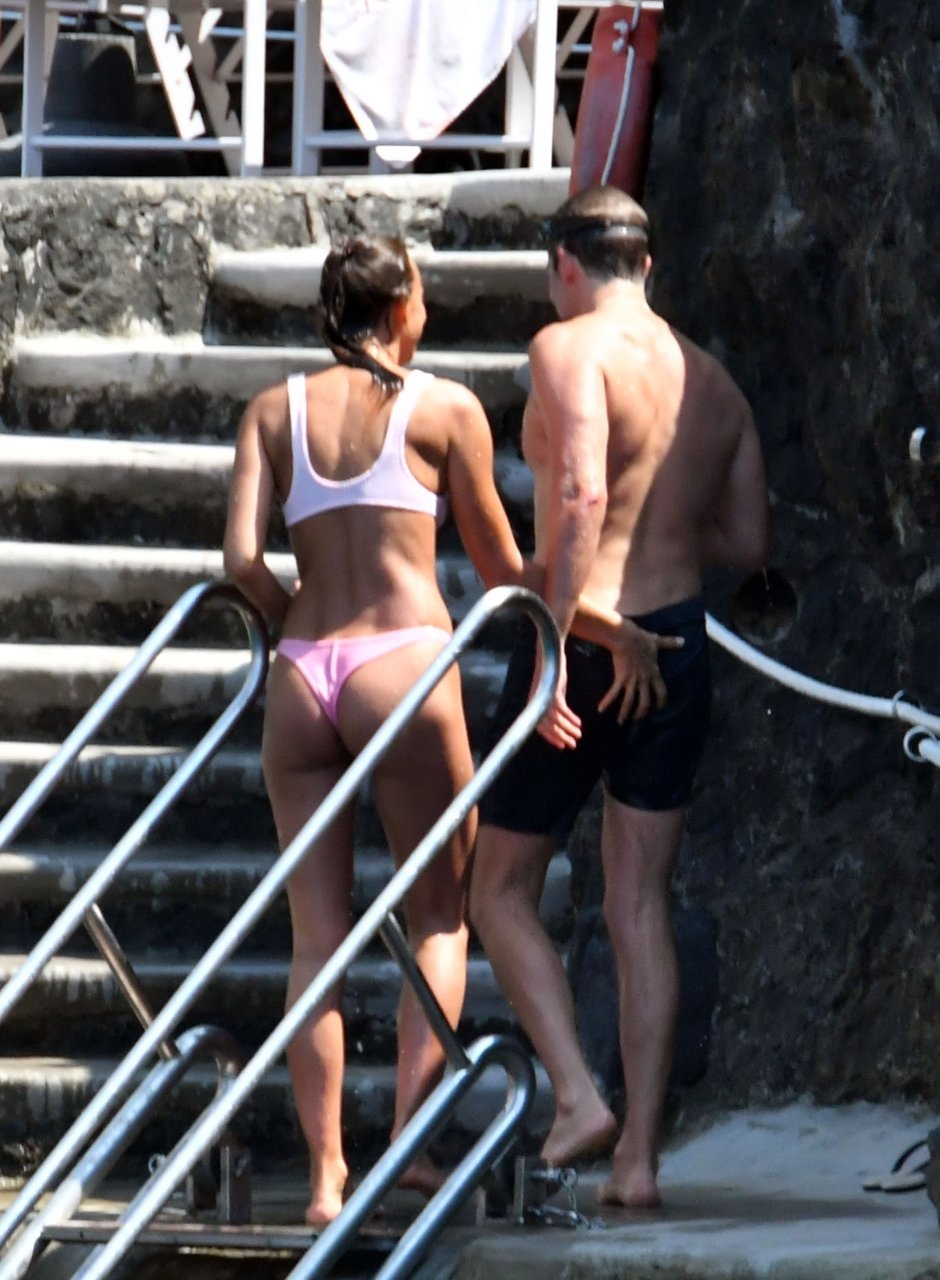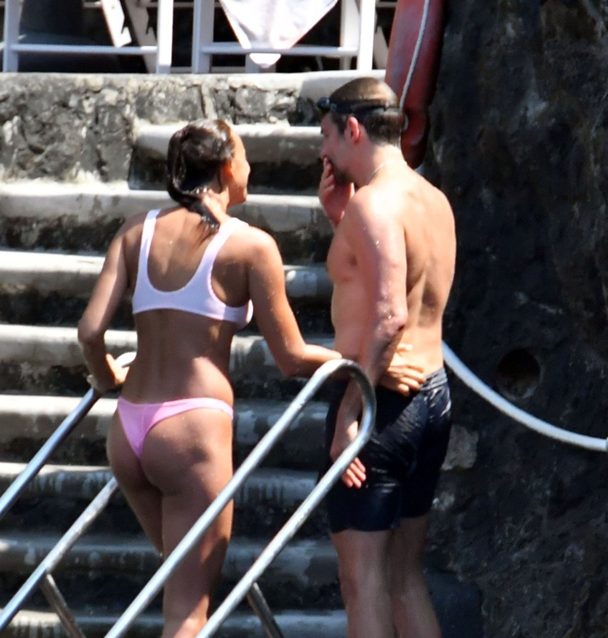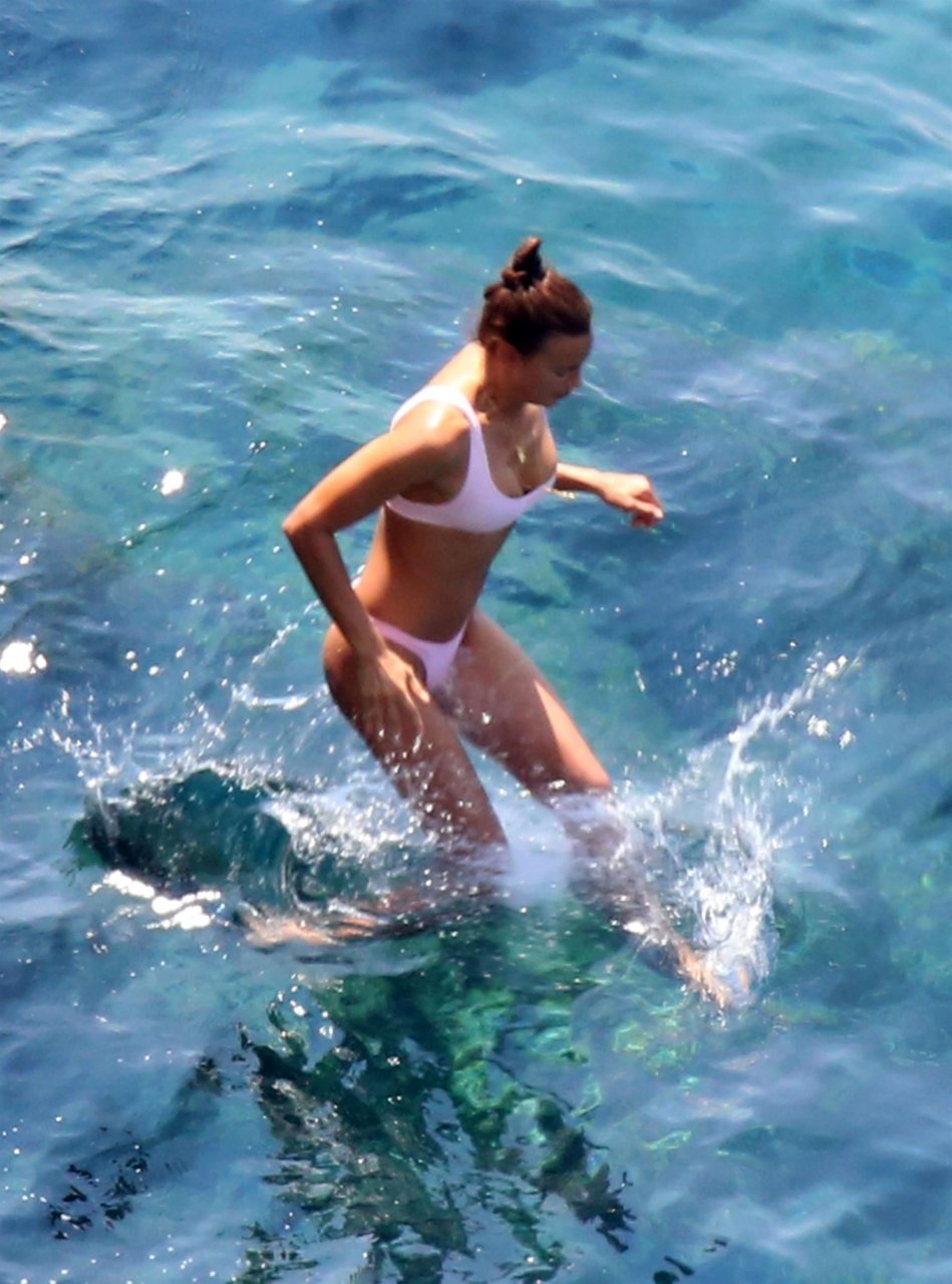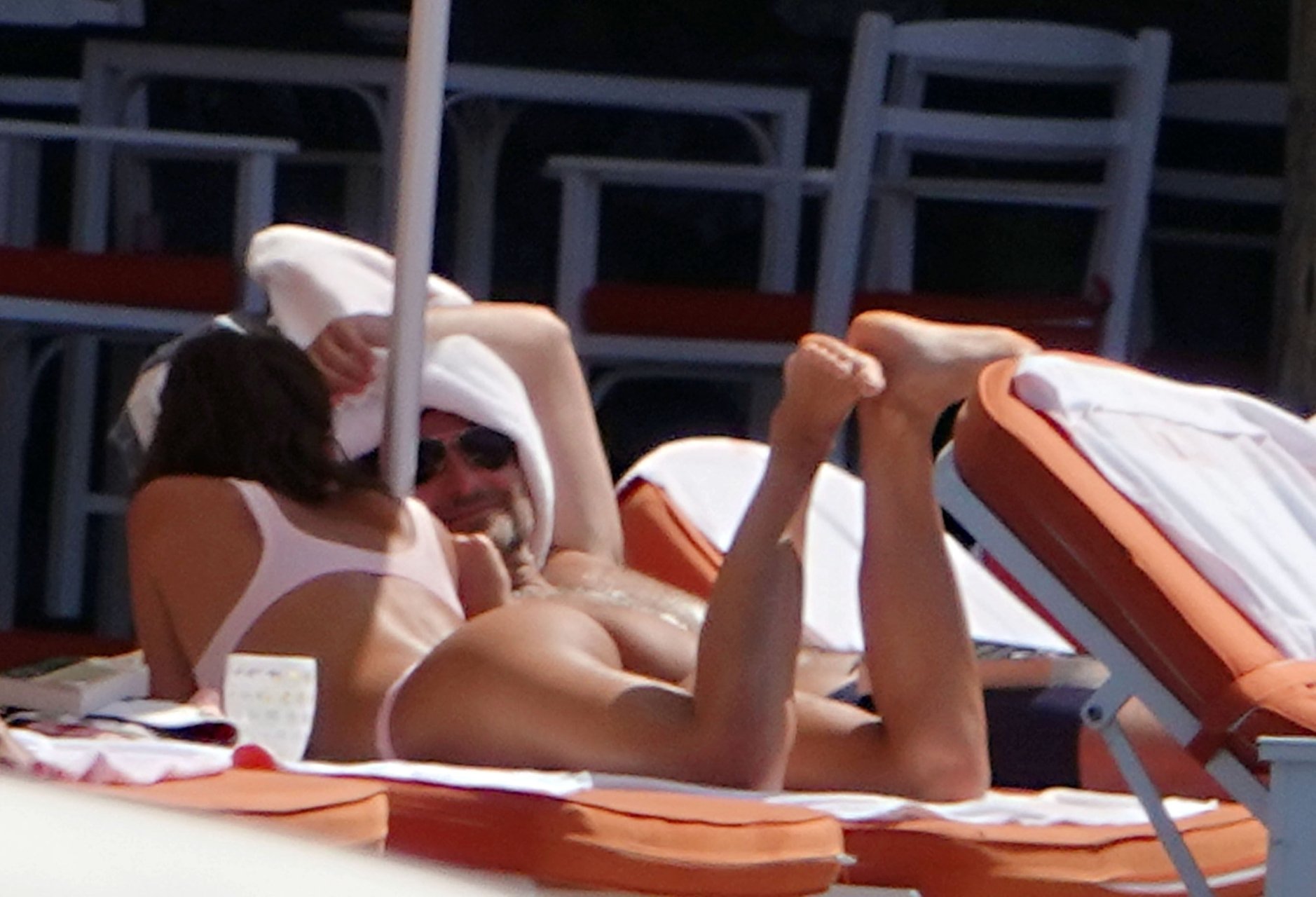 Счастливая пара была сфотографирована вместе, когда они плавали в бирюзовом море, а затем вместе загорали, наслаждаясь солнечными лучами. В один момент Ирина игриво щипает Брэдли за ягодицы, что он воспринял с юмором.