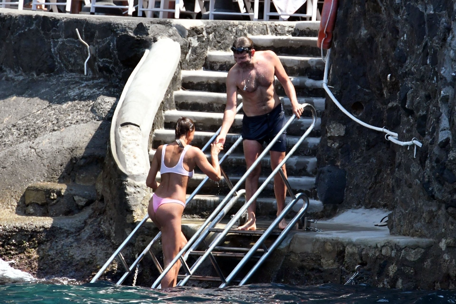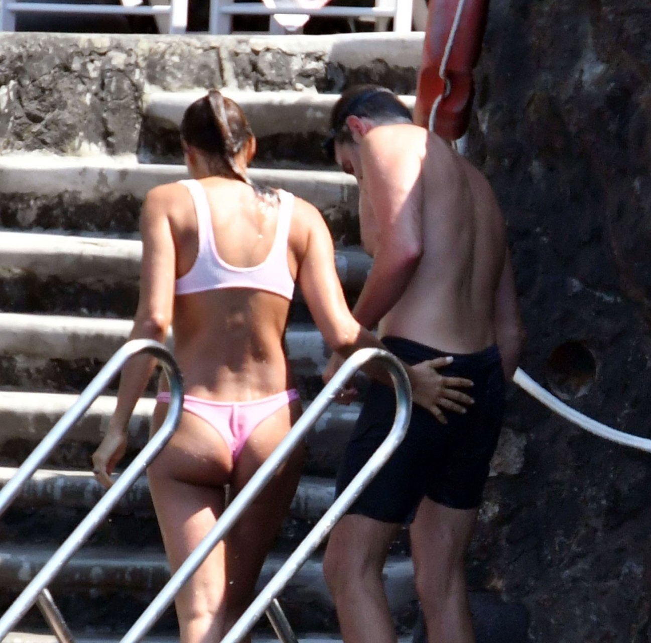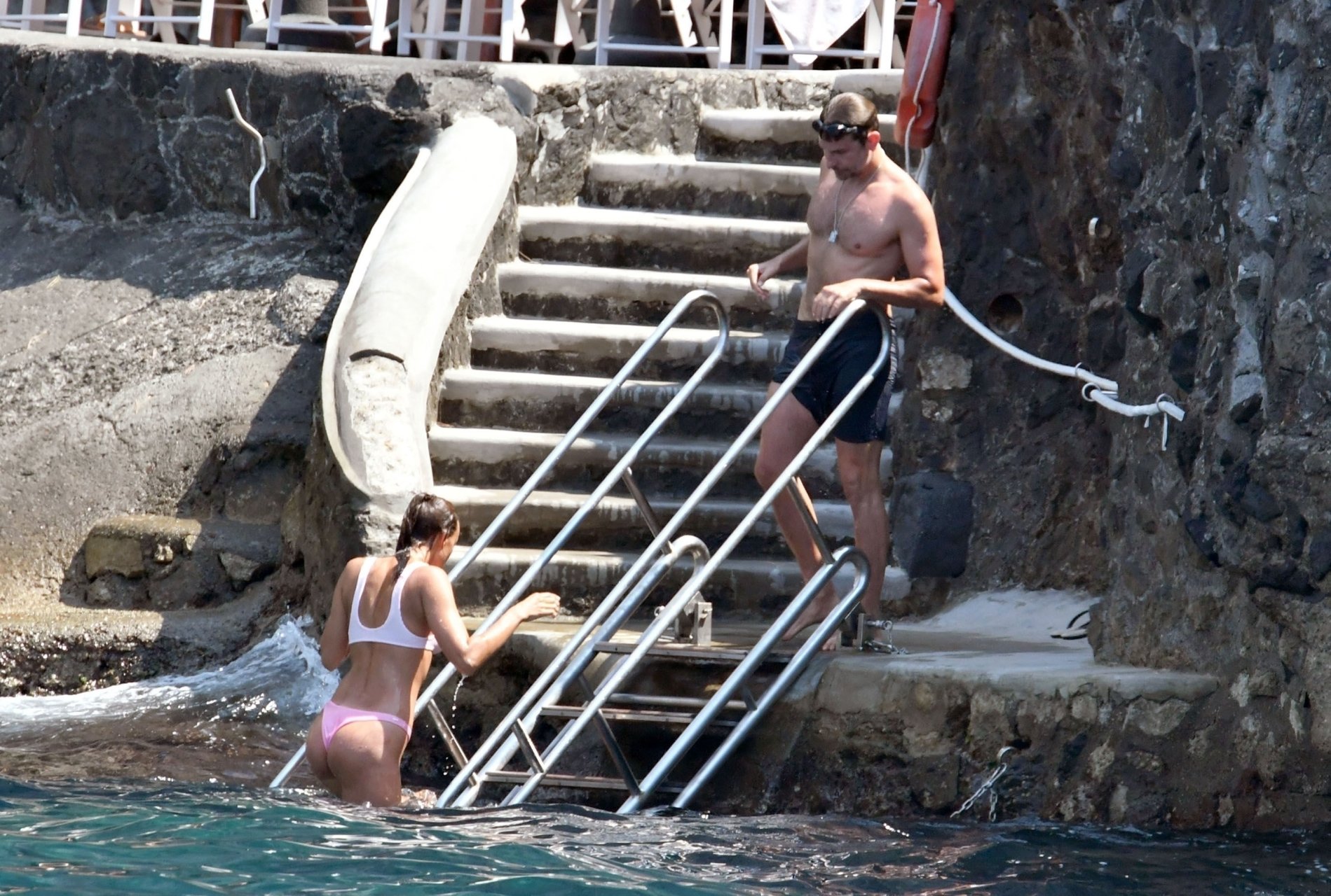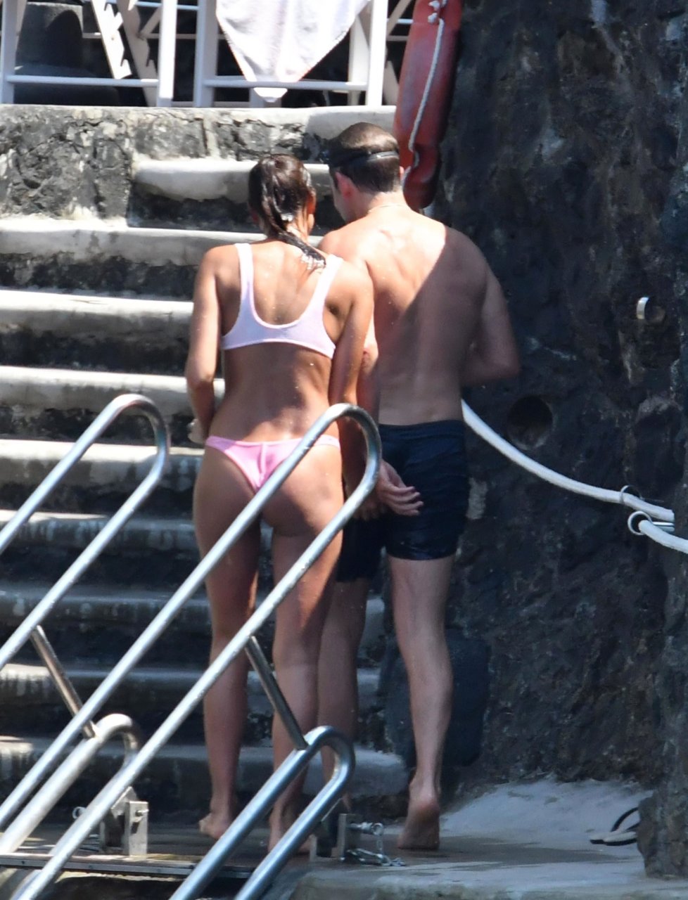 Счастливая пара была сфотографирована вместе, когда они плавали в бирюзовом море, а затем вместе загорали, наслаждаясь солнечными лучами. В один момент Ирина игриво щипает Брэдли за ягодицы, что он воспринял с юмором.