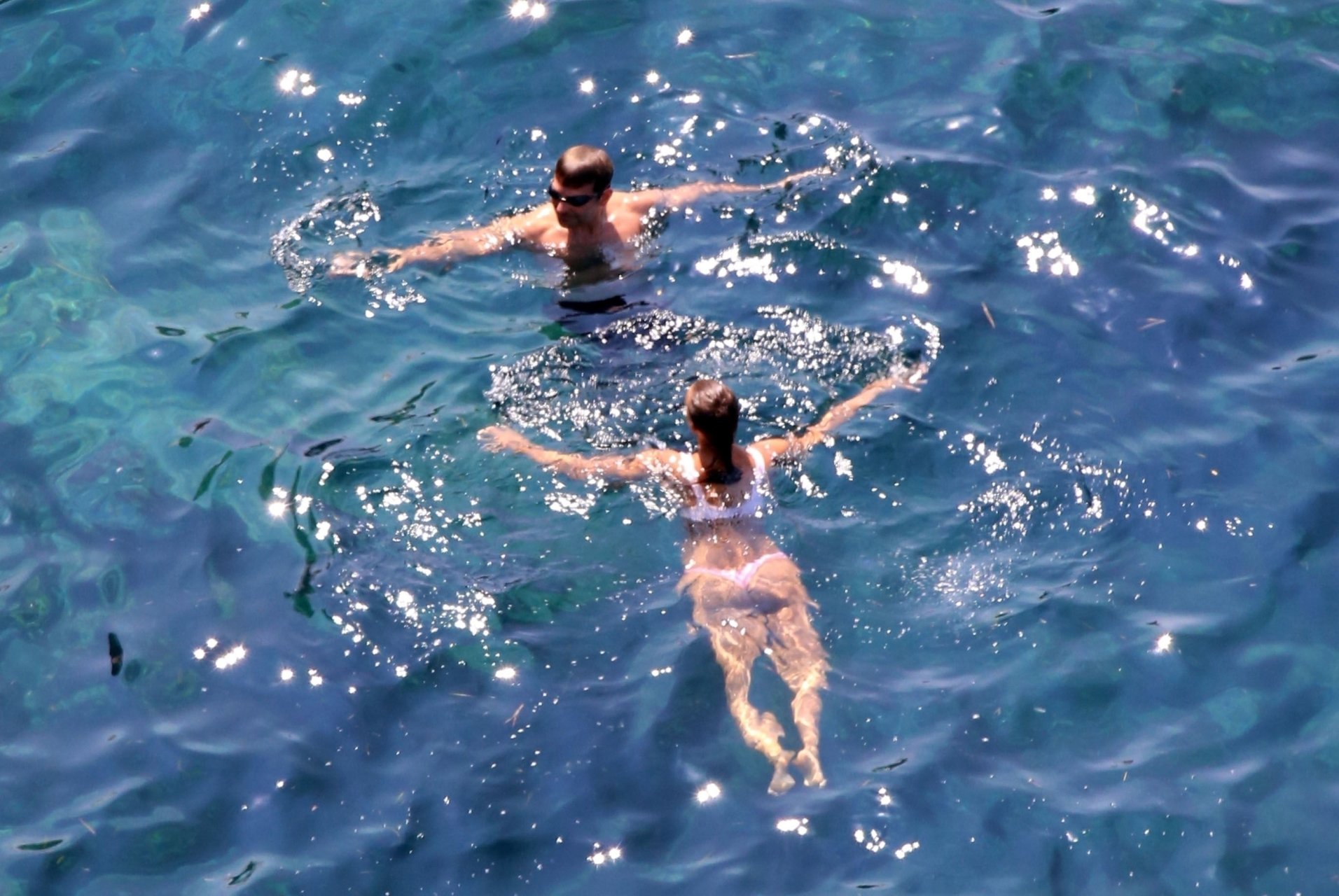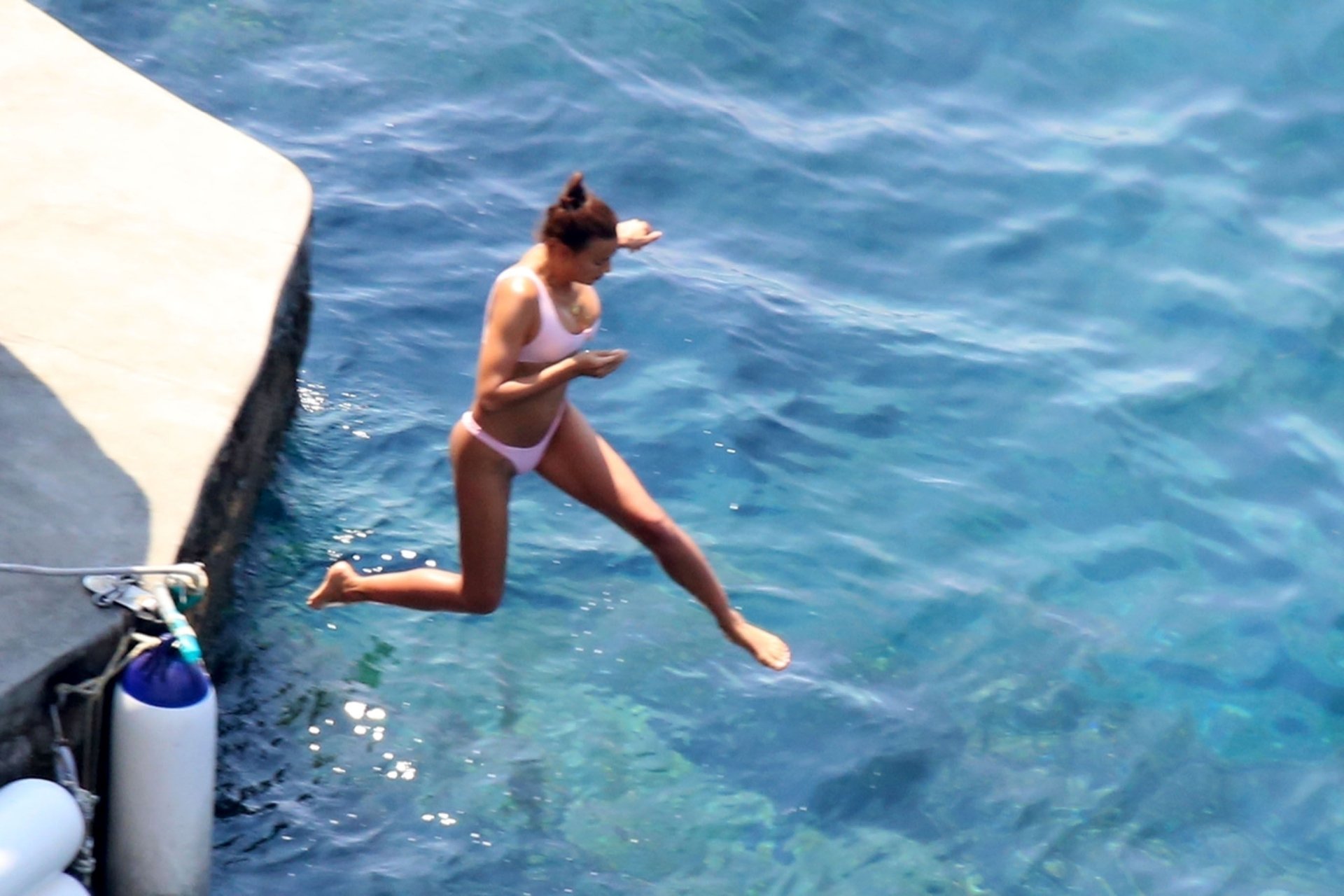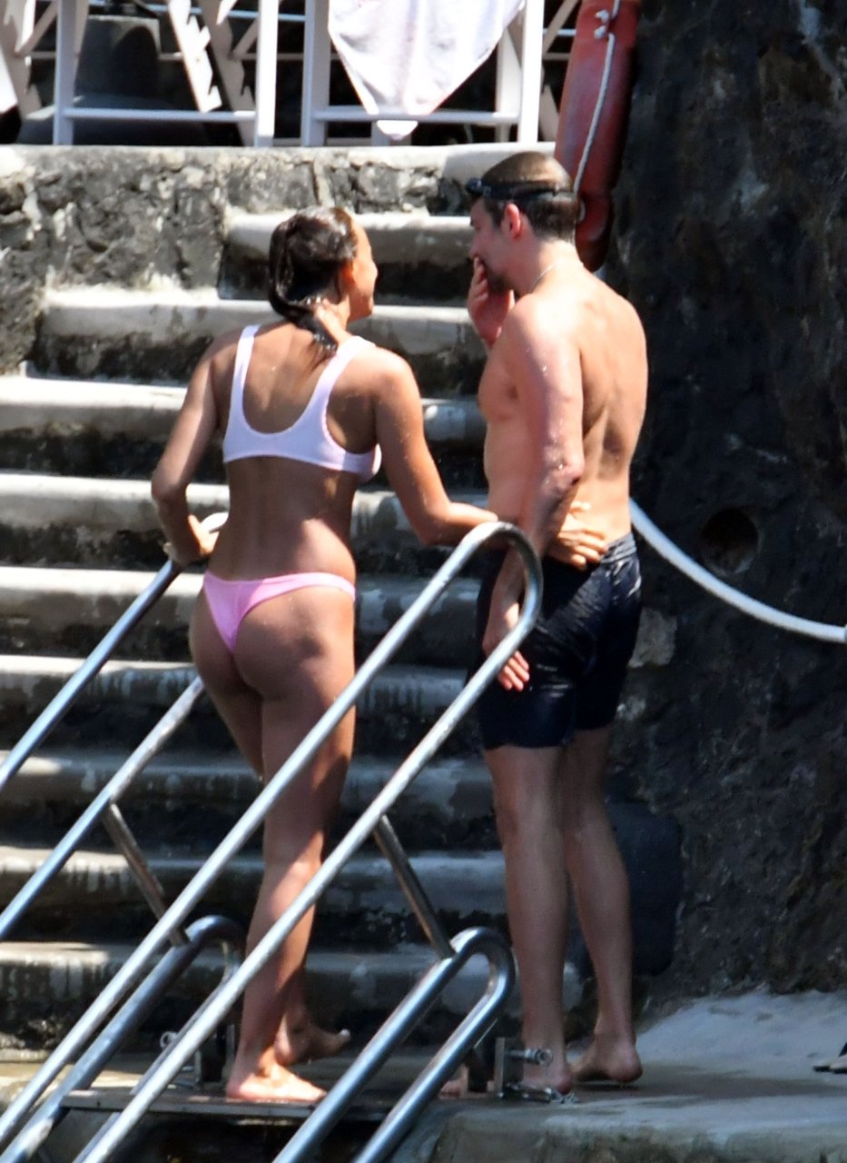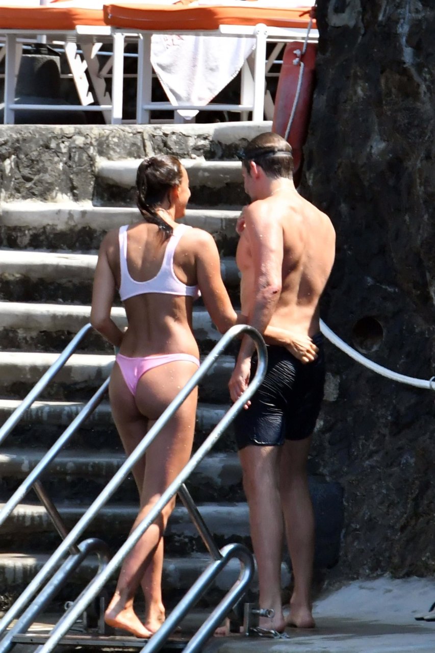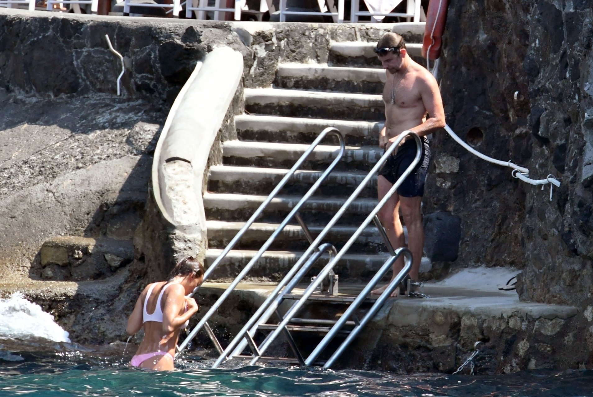Счастливая пара была сфотографирована вместе, когда они плавали в бирюзовом море, а затем вместе загорали, наслаждаясь солнечными лучами. В один момент Ирина игриво щипает Брэдли за ягодицы, что он воспринял с юмором.