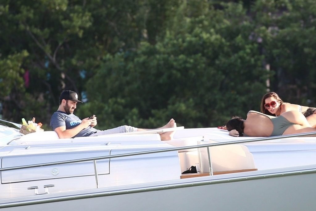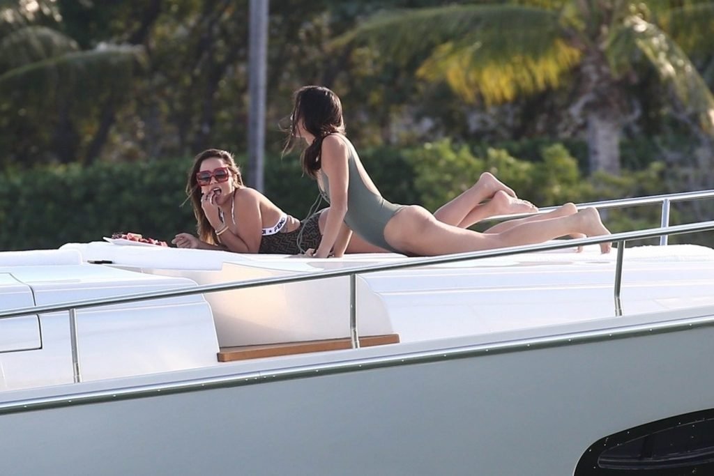 Бразильские красотки Изабела Рангель Грутман и Анитта отдыхают на солнце на яхте в Майами, 28.10.2018. Изабела расположилась на носу яхты в купальнике (как и её подруга) и несколько раз взглянула в камеру, проходя мимо.