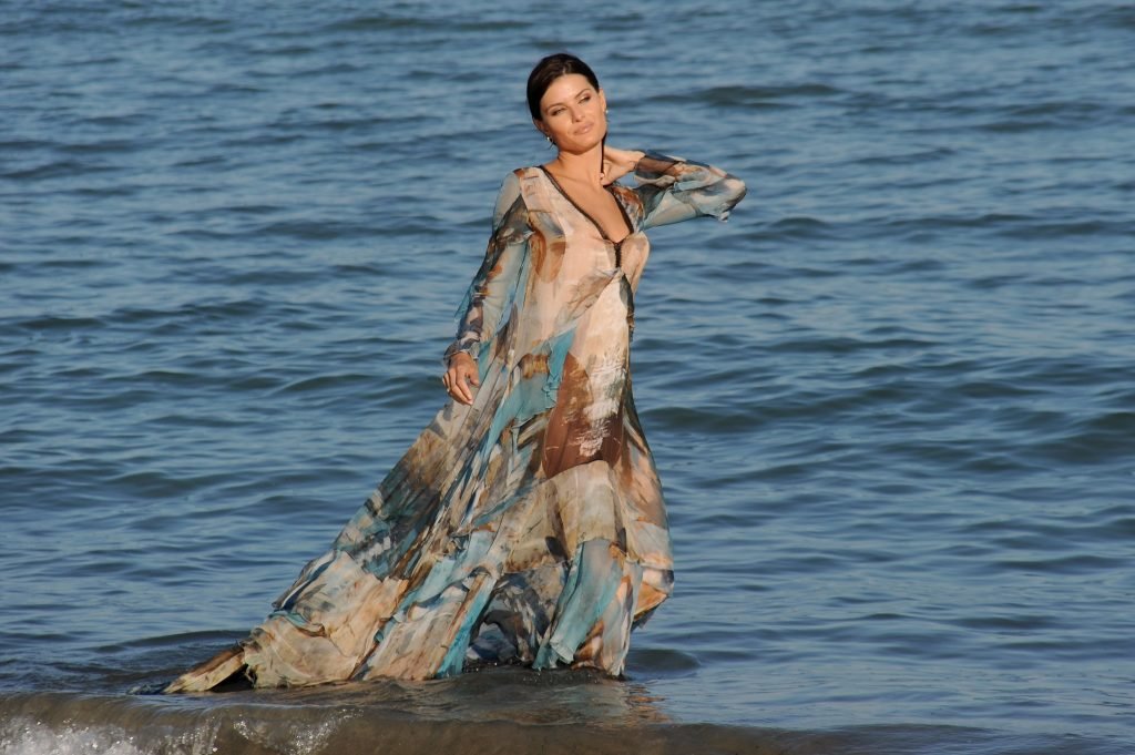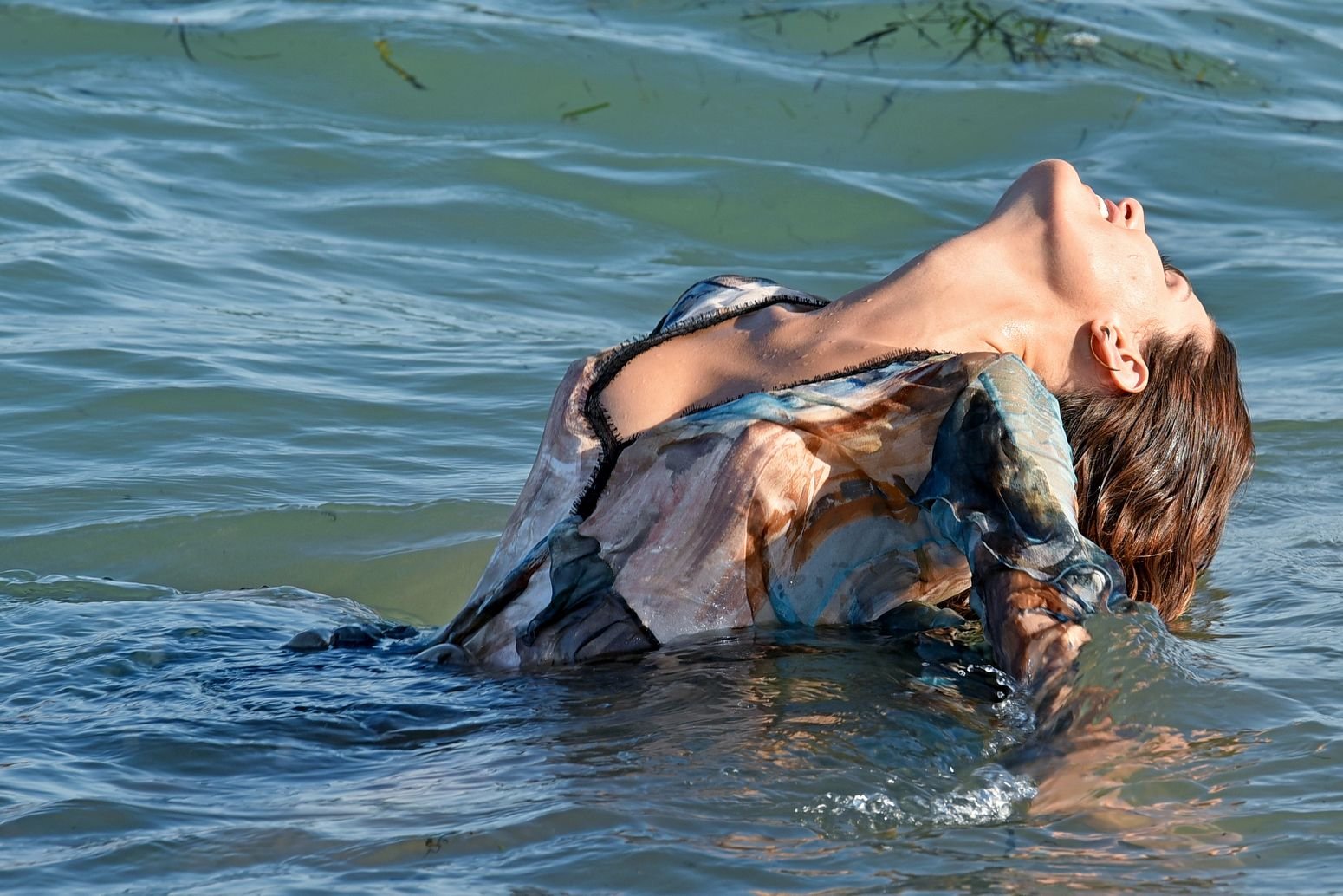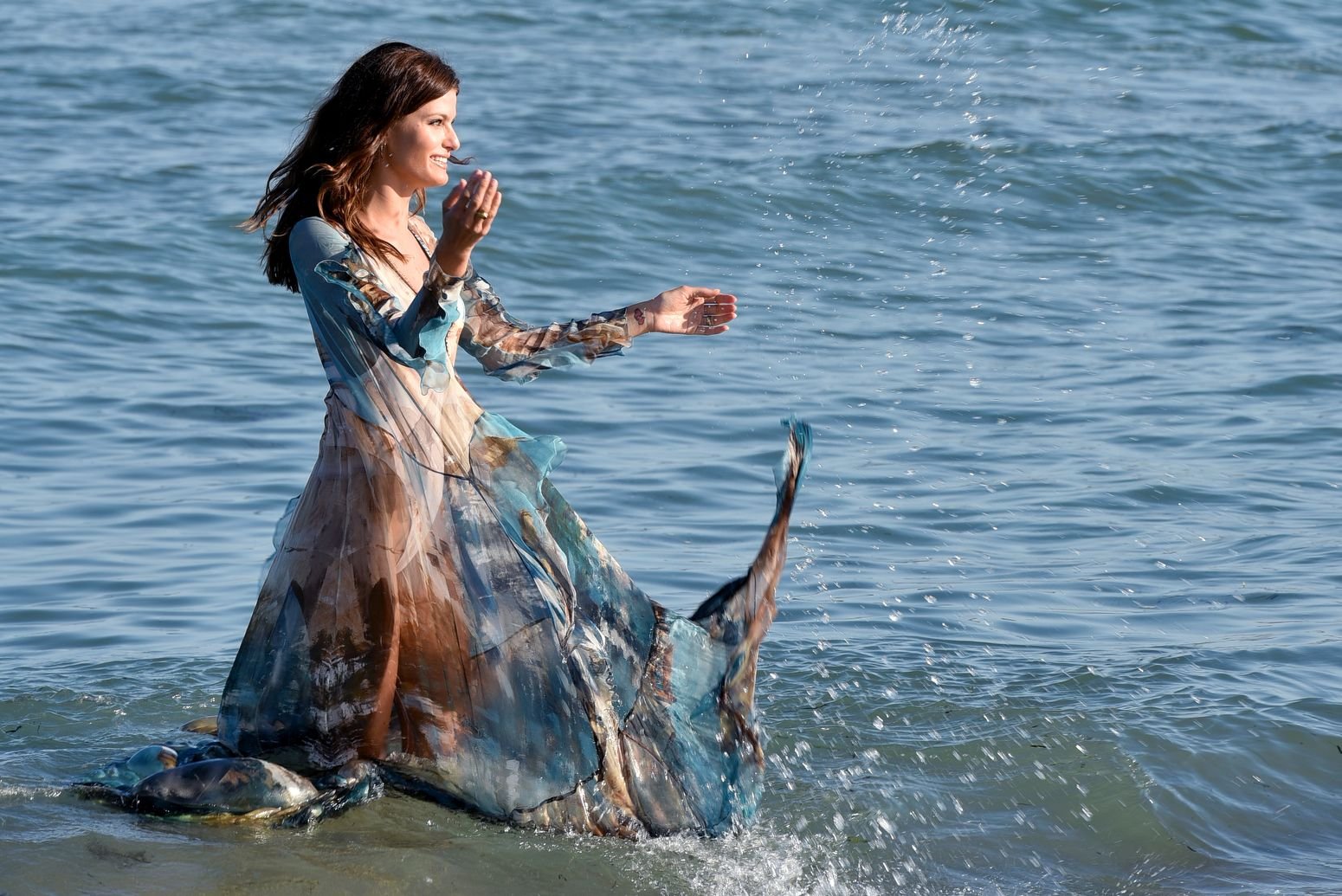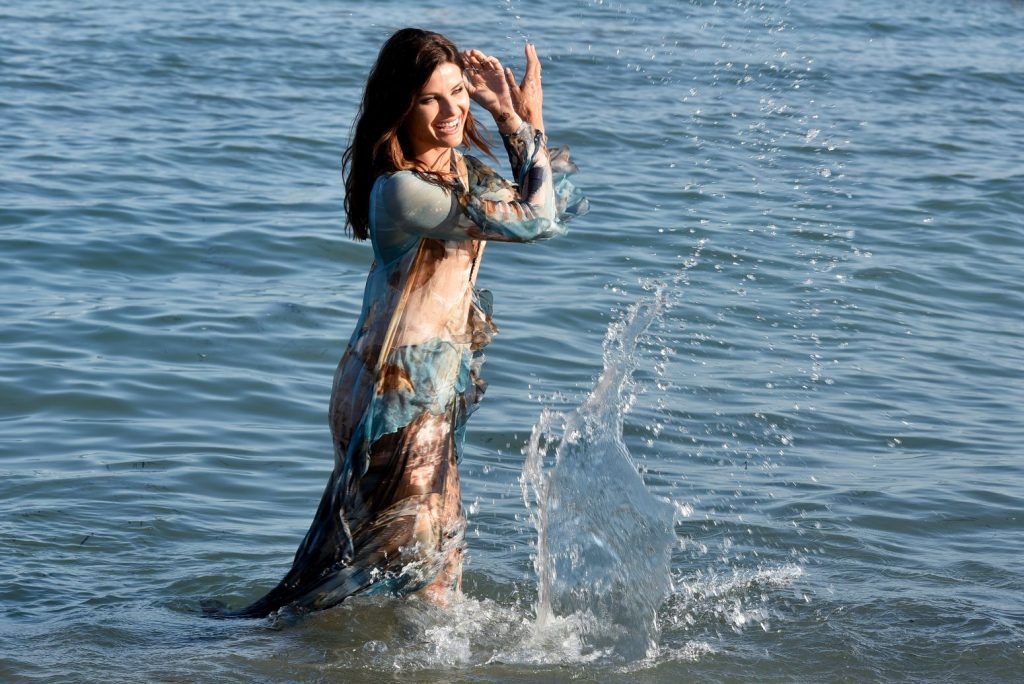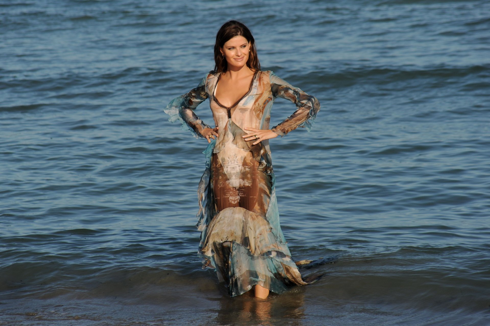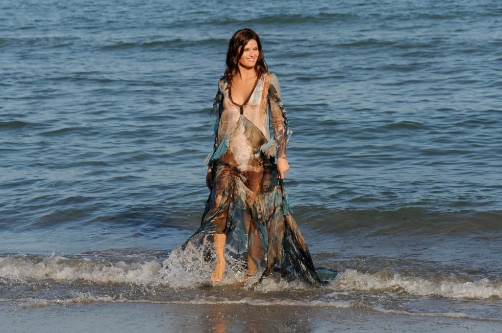 Модель Изабели Фонтана (34) без бюстгальтера позирует фотографам на пляже в Венеции, 29.08.2017.