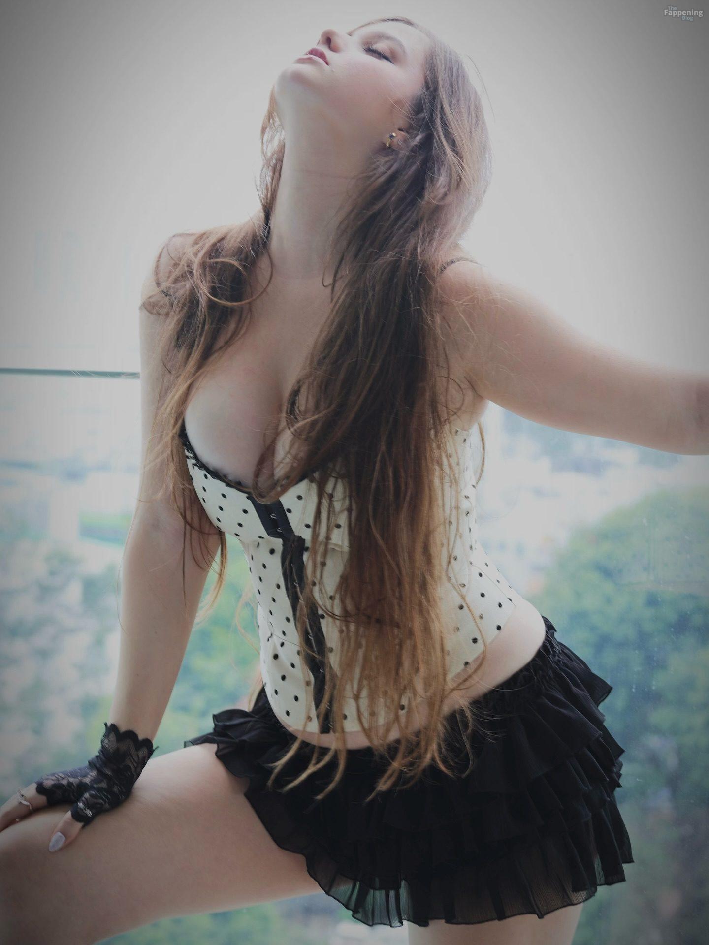 Изабелла Ардли позирует на балконе в нижнем белье, показывая свои сексуальные груди.