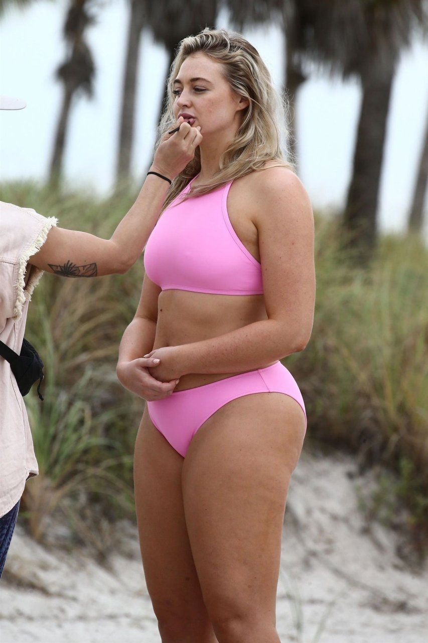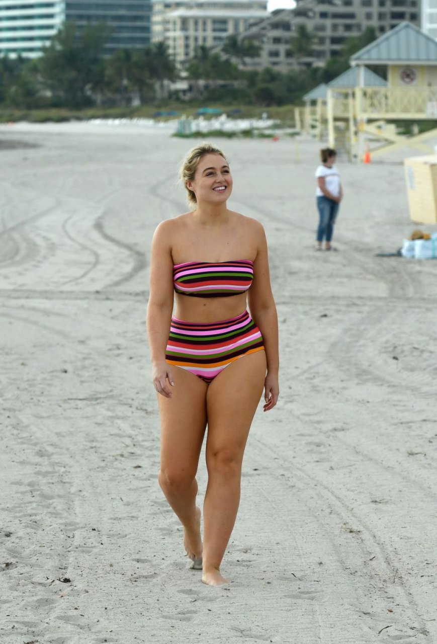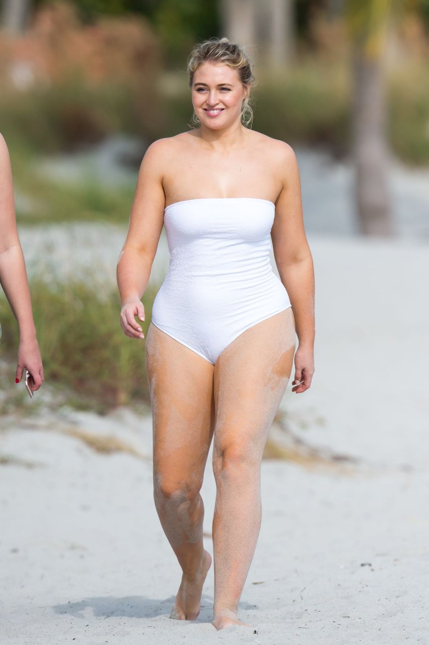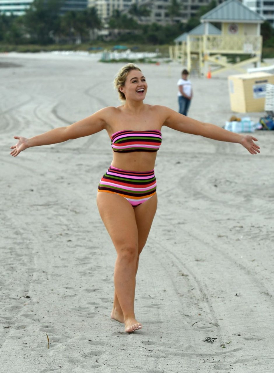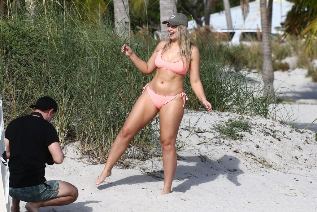 Британская модель Искра Лоренс была замечена на фотосессии для Aerie на пляже в Майами, 27.11.2018. Искра сияла улыбкой, наслаждаясь очередным днем съемок для линии купальников.
