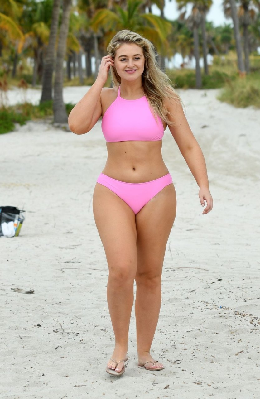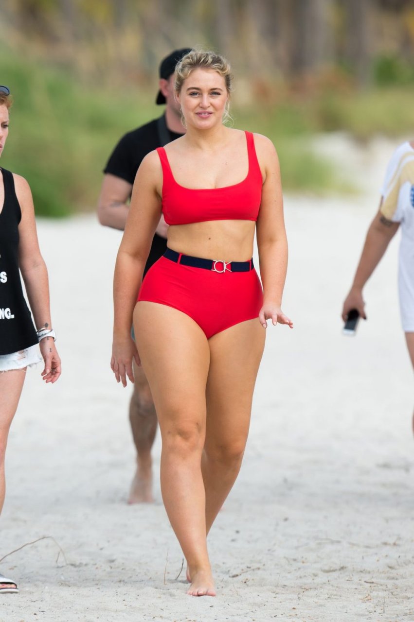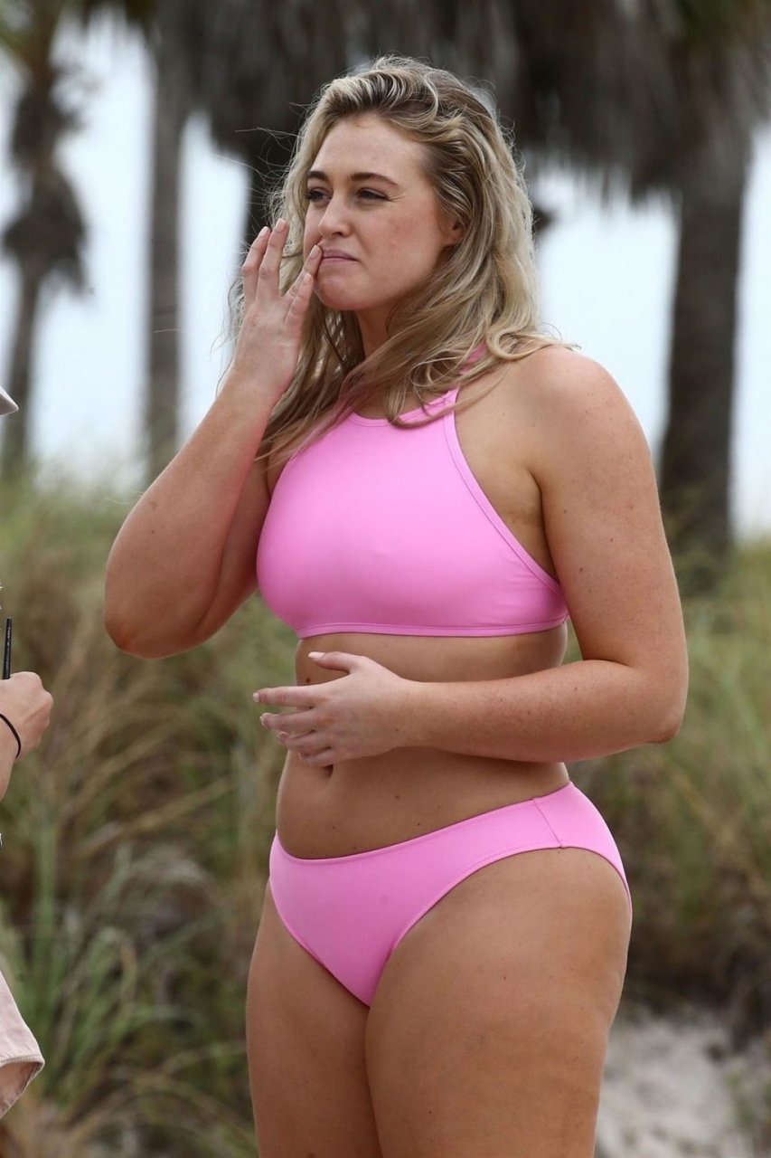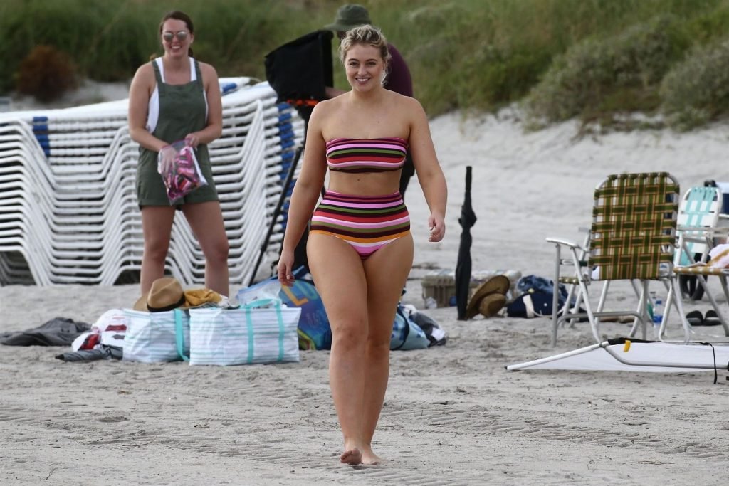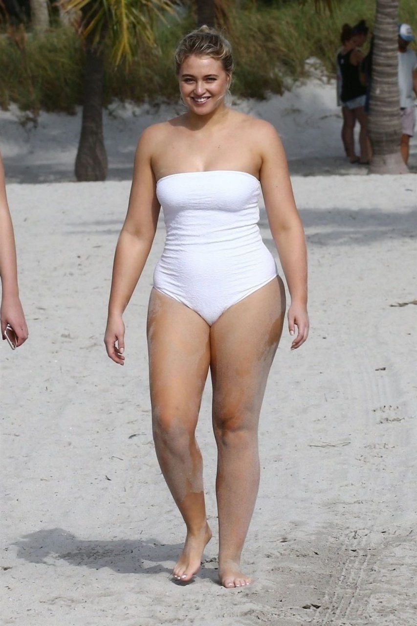 Британская модель Искра Лоренс была замечена на фотосессии для Aerie на пляже в Майами, 27.11.2018. Искра сияла улыбкой, наслаждаясь очередным днем съемок для линии купальников.