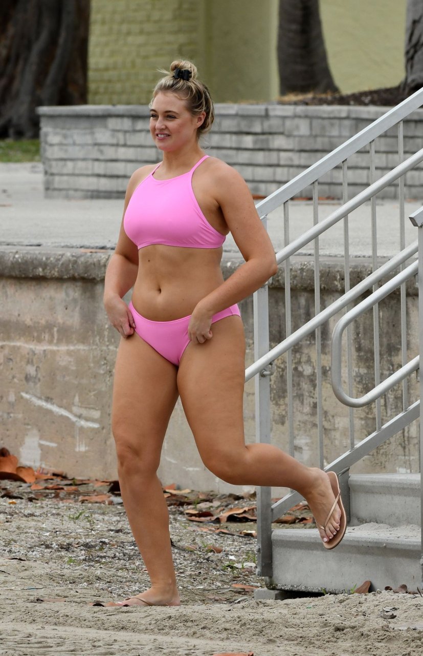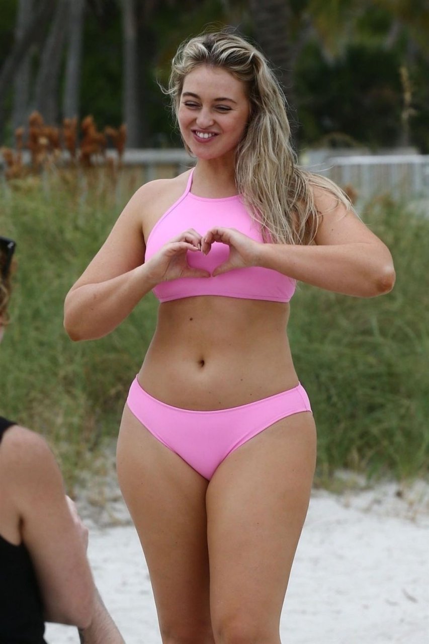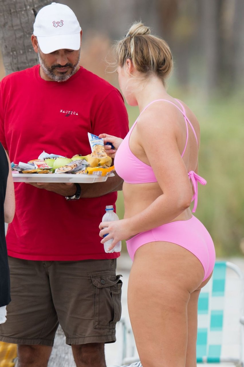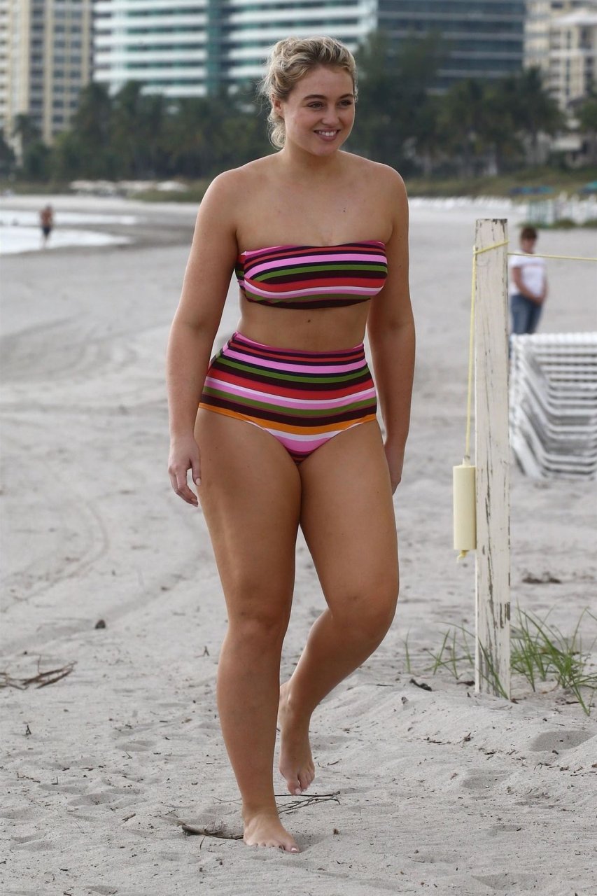 Британская модель Искра Лоренс была замечена на фотосессии для Aerie на пляже в Майами, 27.11.2018. Искра сияла улыбкой, наслаждаясь очередным днем съемок для линии купальников.