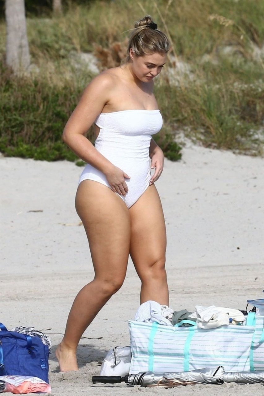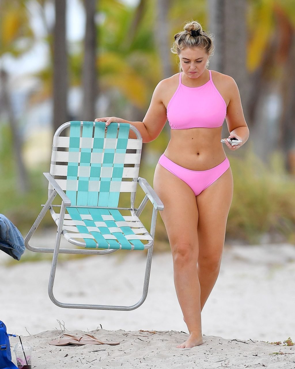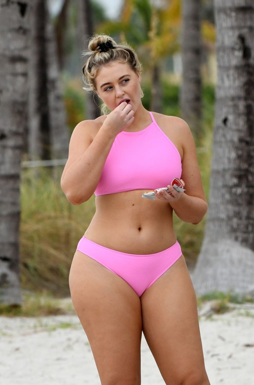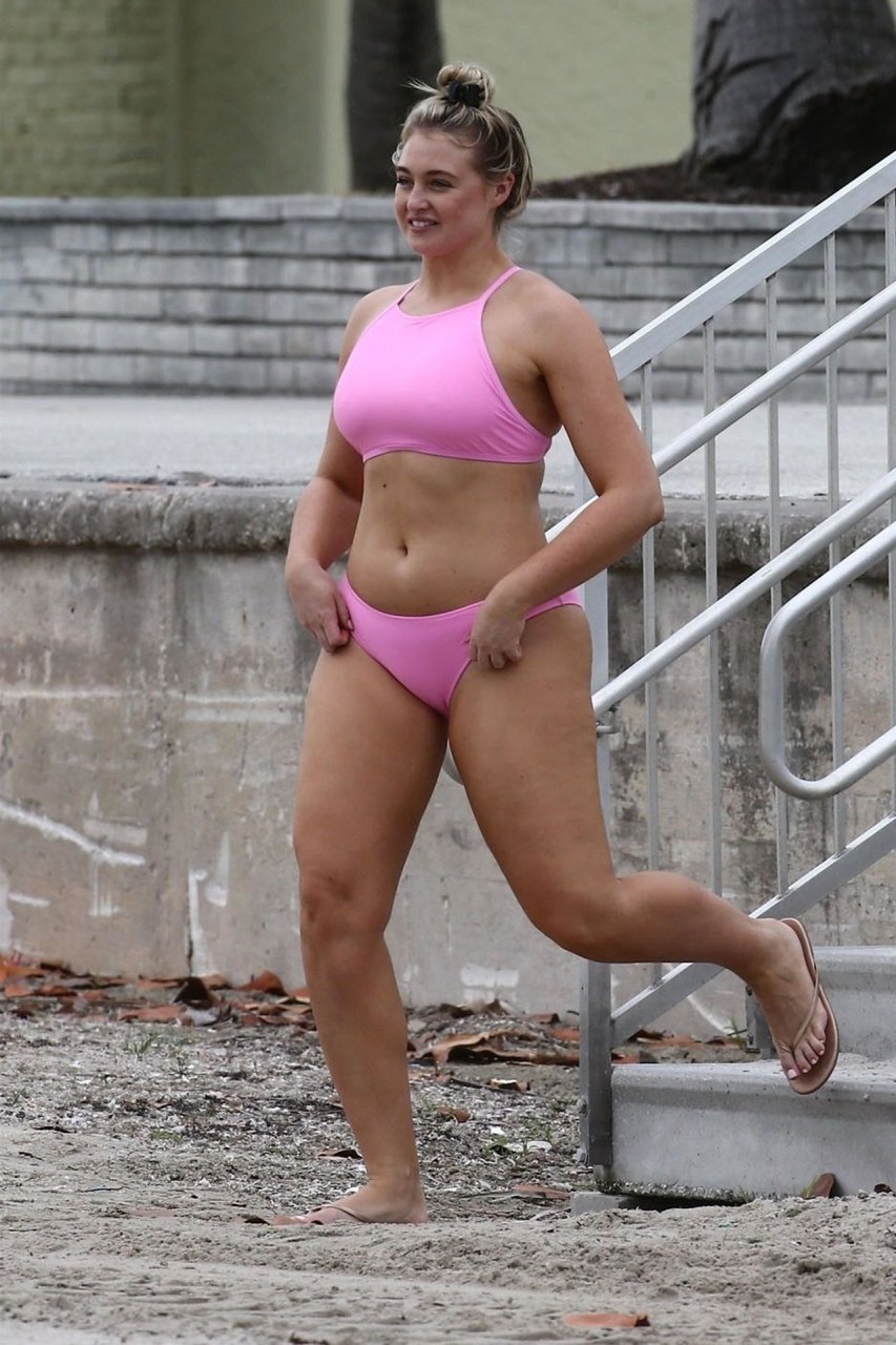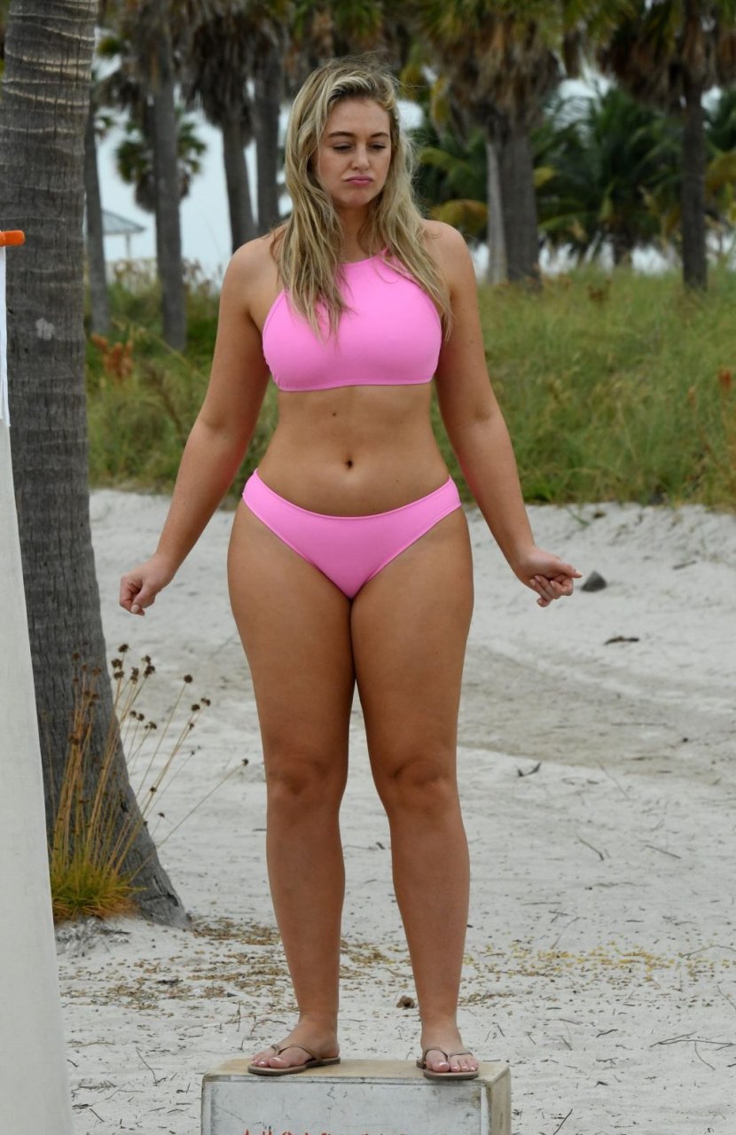 Британская модель Искра Лоренс была замечена на фотосессии для Aerie на пляже в Майами, 27.11.2018. Искра сияла улыбкой, наслаждаясь очередным днем съемок для линии купальников.