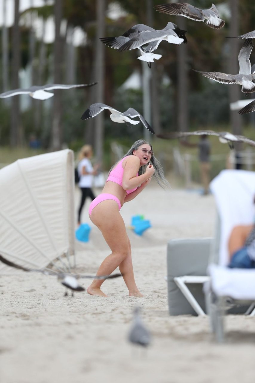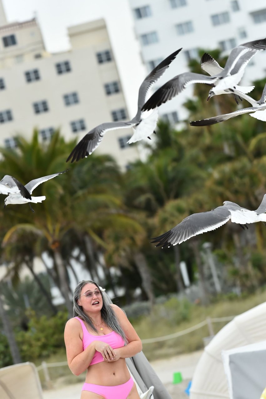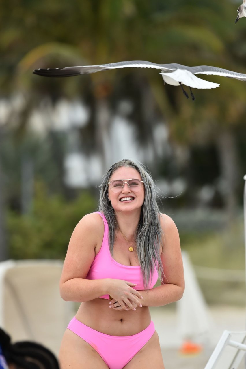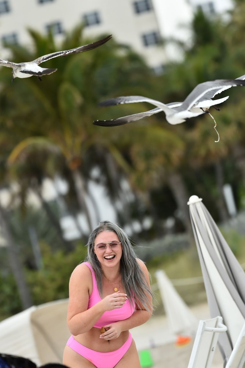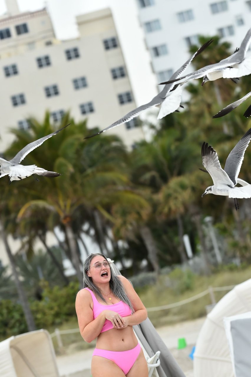 Демонстрируя свои изгибы в бикини нежно-розового цвета от Aerie и свои новые серебристые волосы, Искра пыталась съесть печенье на пляже, не подозревая, что столкнется с яростью голодной стаи чаек. К счастью, модель быстро съела его и смогла посмеяться над этим и насладиться остальной частью дня на пляже.
