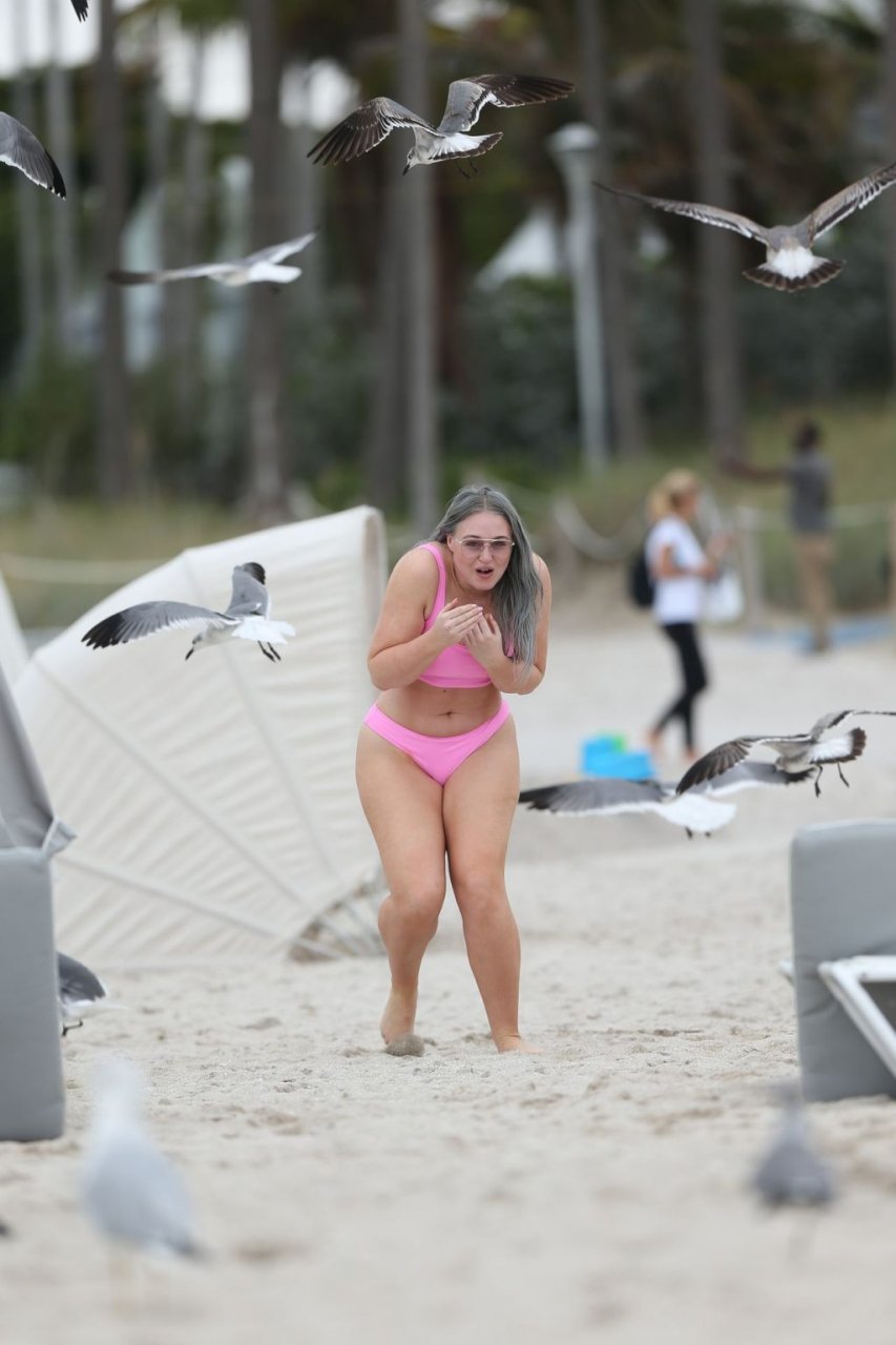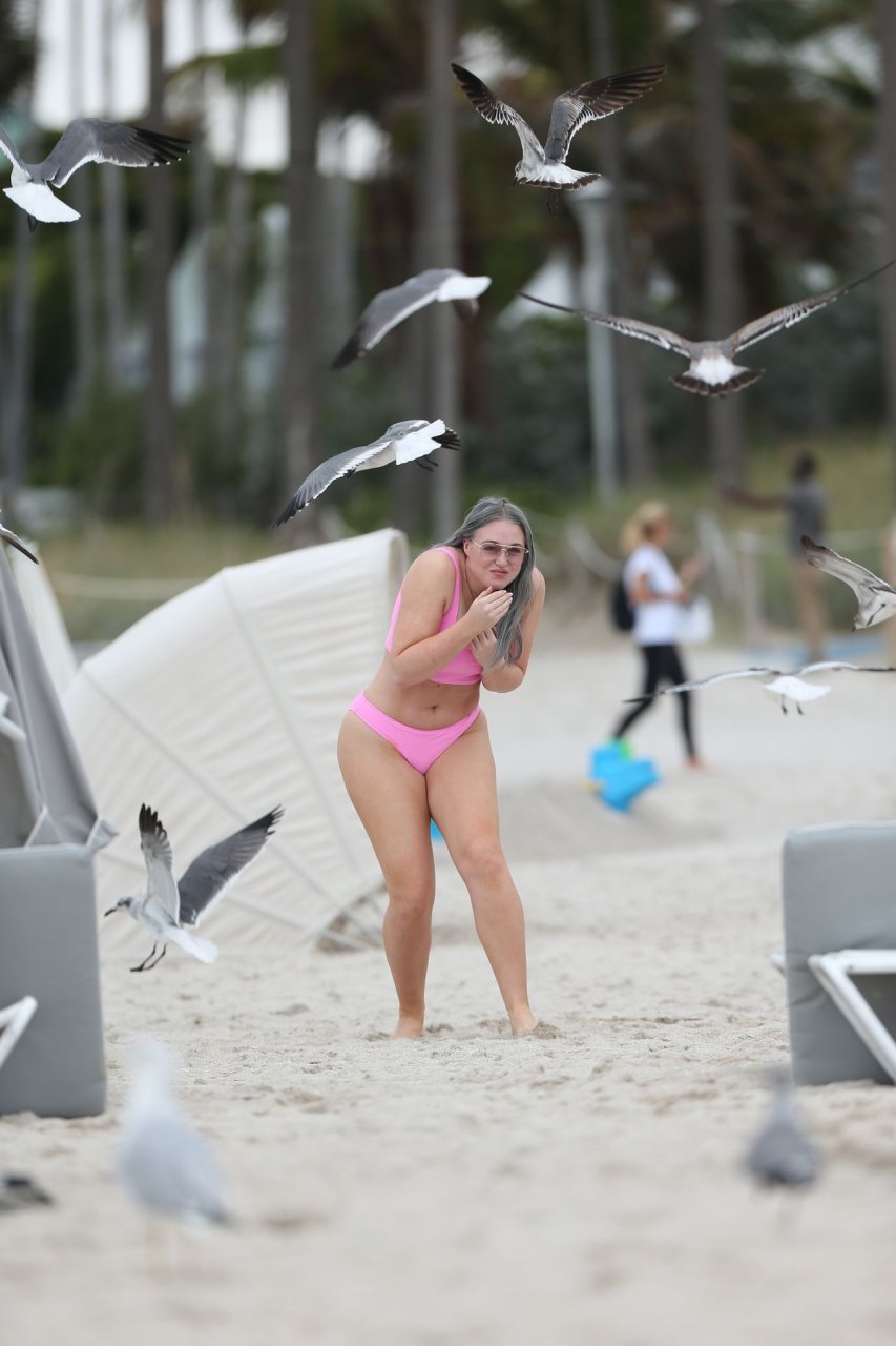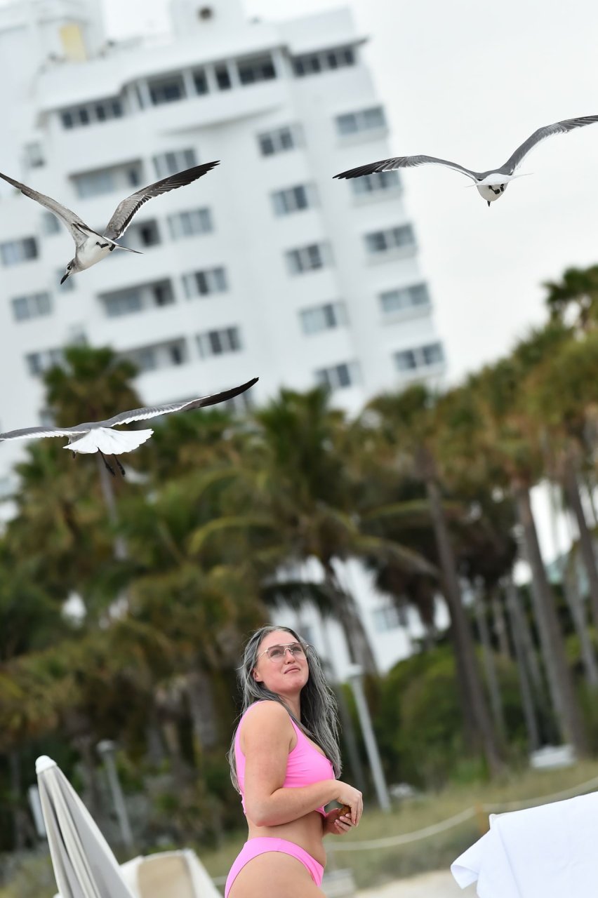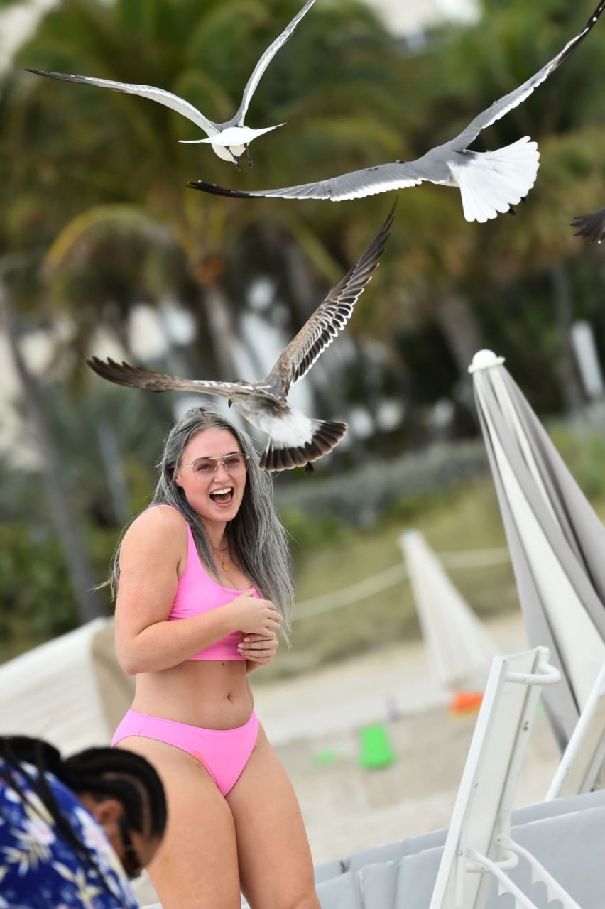 Демонстрируя свои изгибы в бикини нежно-розового цвета от Aerie и свои новые серебристые волосы, Искра пыталась съесть печенье на пляже, не подозревая, что столкнется с яростью голодной стаи чаек. К счастью, модель быстро съела его и смогла посмеяться над этим и насладиться остальной частью дня на пляже.
