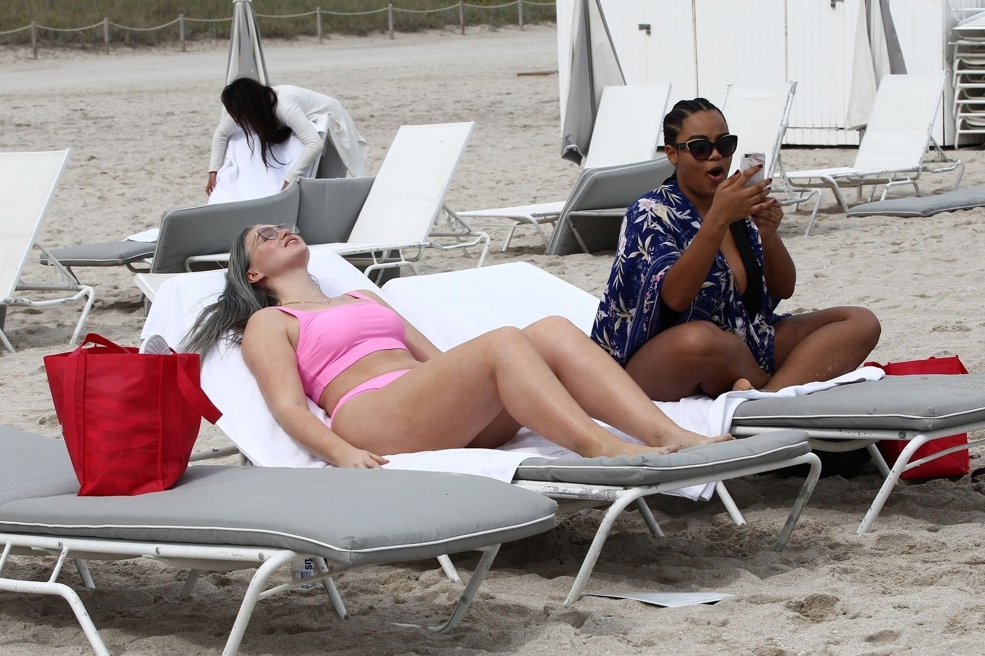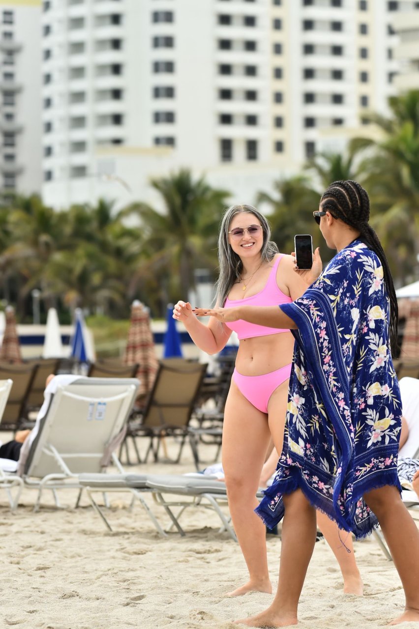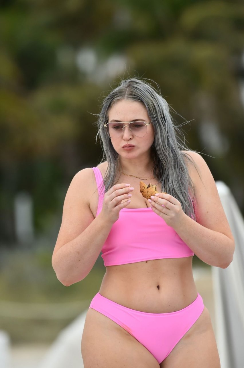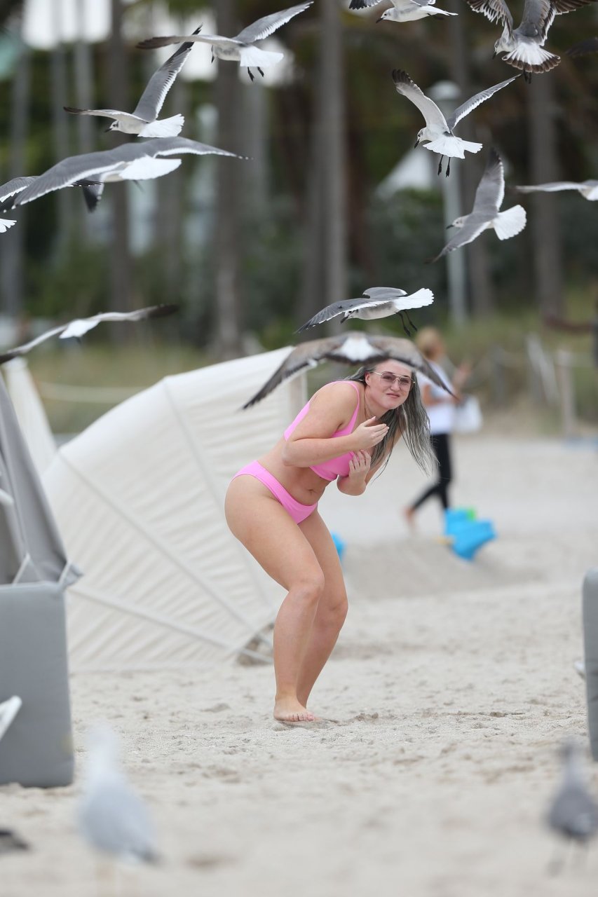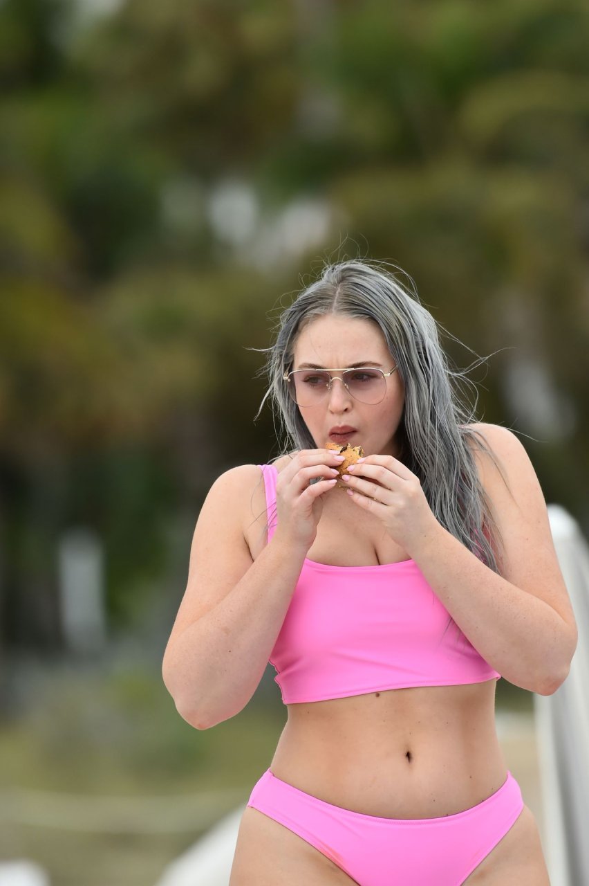 Демонстрируя свои изгибы в бикини нежно-розового цвета от Aerie и свои новые серебристые волосы, Искра пыталась съесть печенье на пляже, не подозревая, что столкнется с яростью голодной стаи чаек. К счастью, модель быстро съела его и смогла посмеяться над этим и насладиться остальной частью дня на пляже.