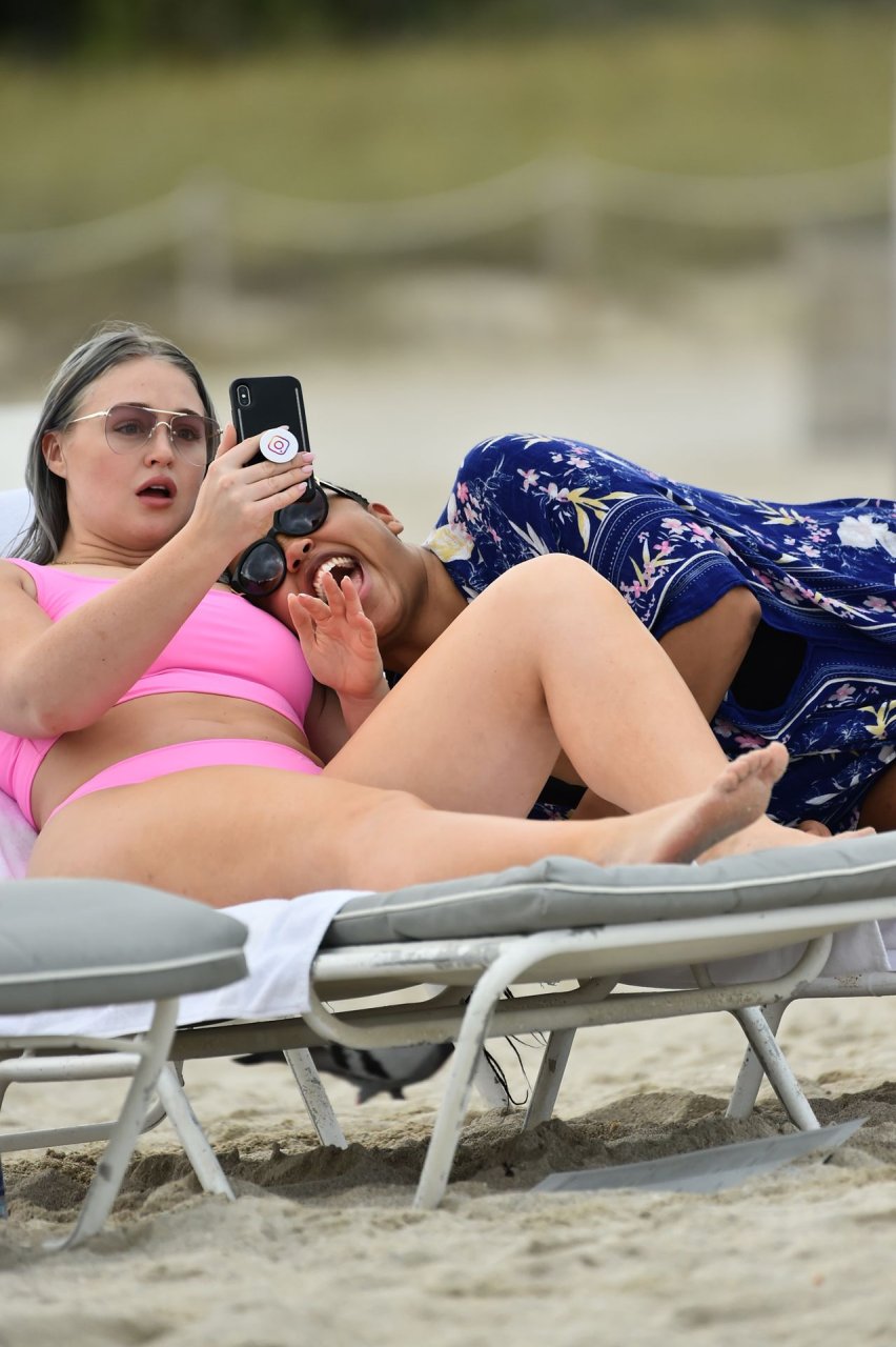Bikini clad Искра Лоуренс подверглась атаке стаи чаек, когда пыталась съесть печенье, наслаждаясь днем на пляже в Майами, 27.01.2019.