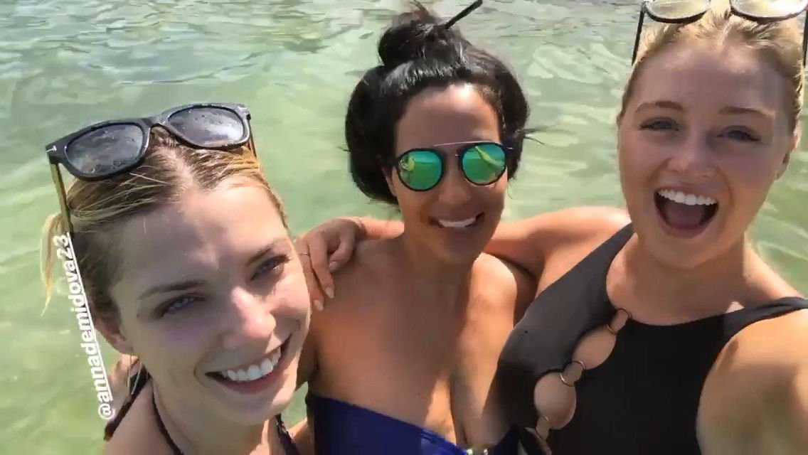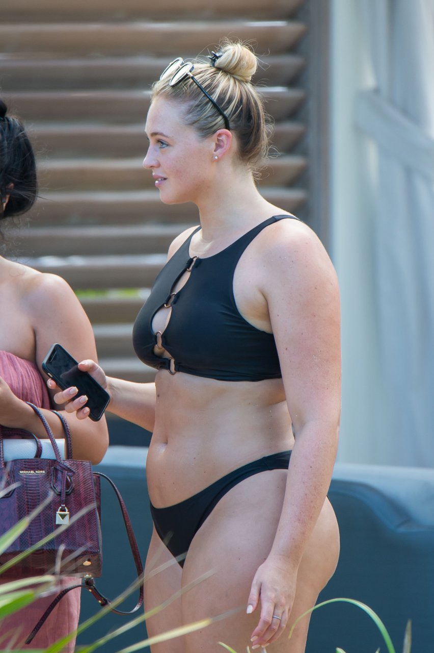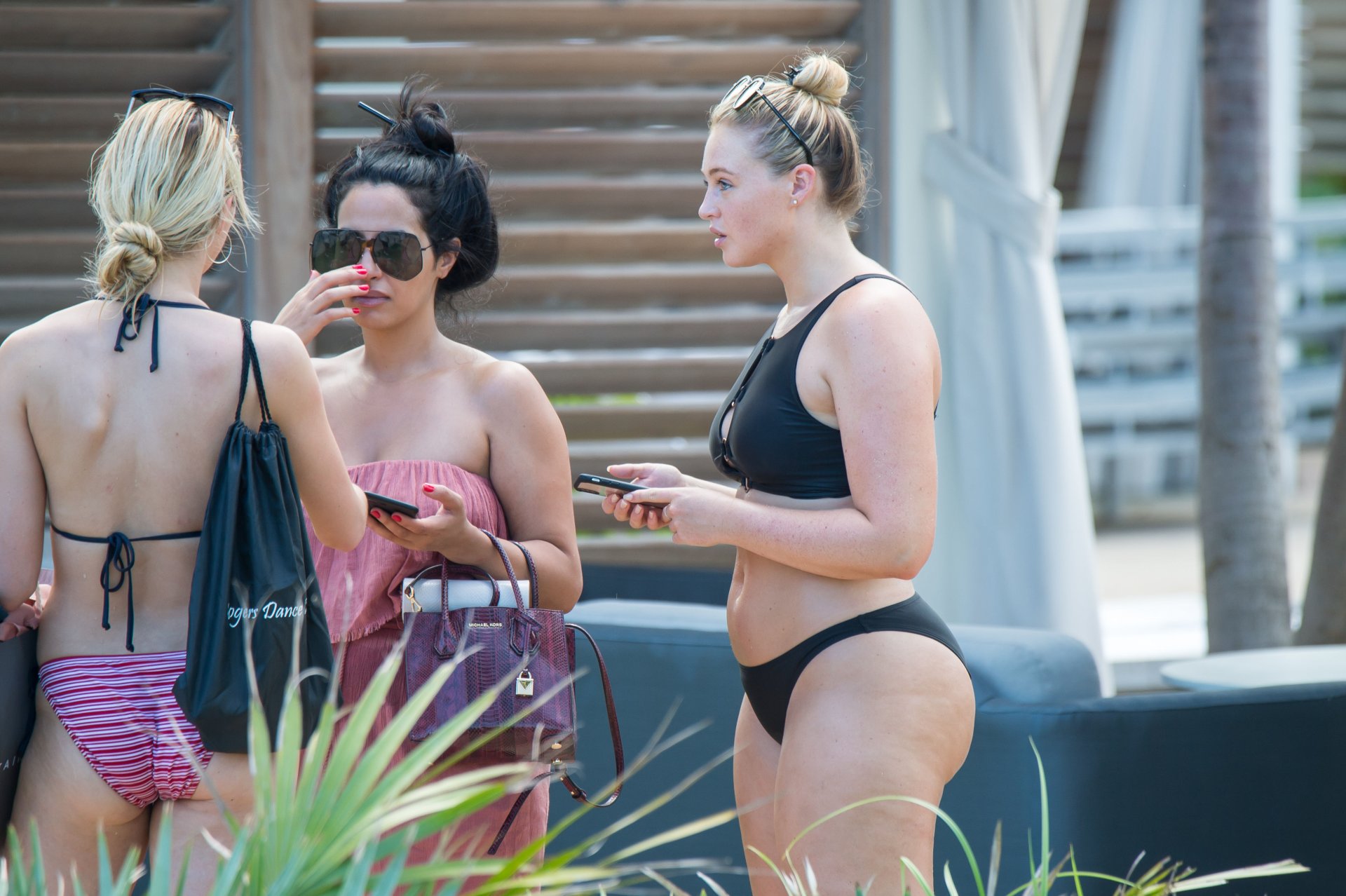 Модель и актриса Искра Лоуренс замечена с друзьями на Майами-Бич, 12.07.2018. 27-летняя актриса была в черном бикини, подчеркивающем её формы.