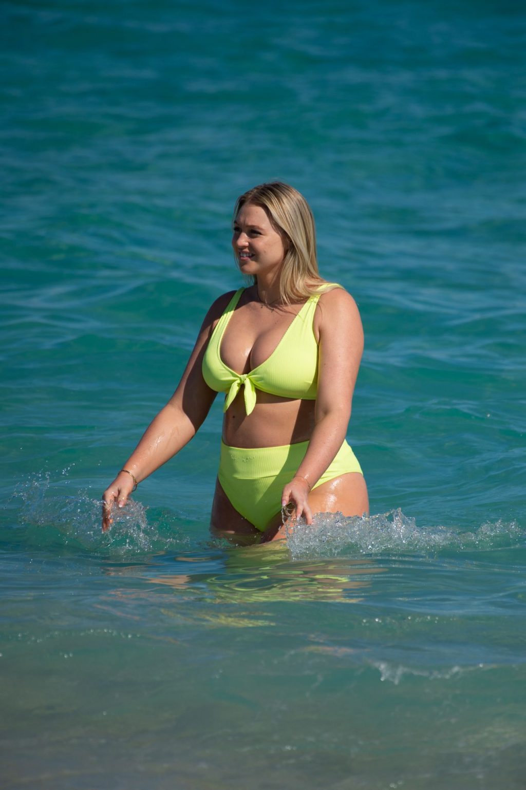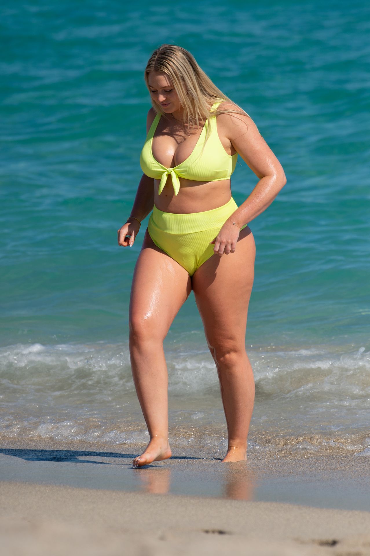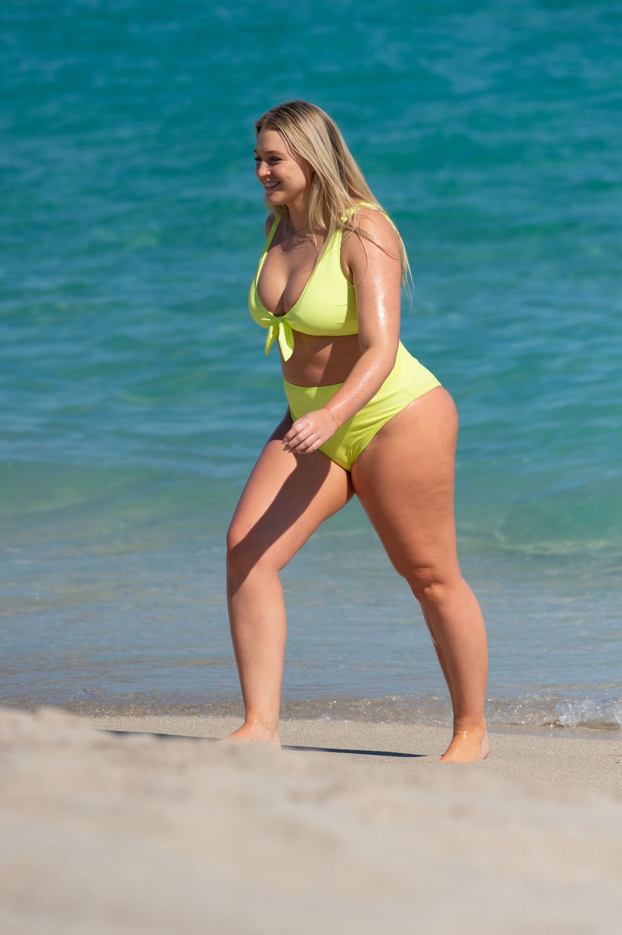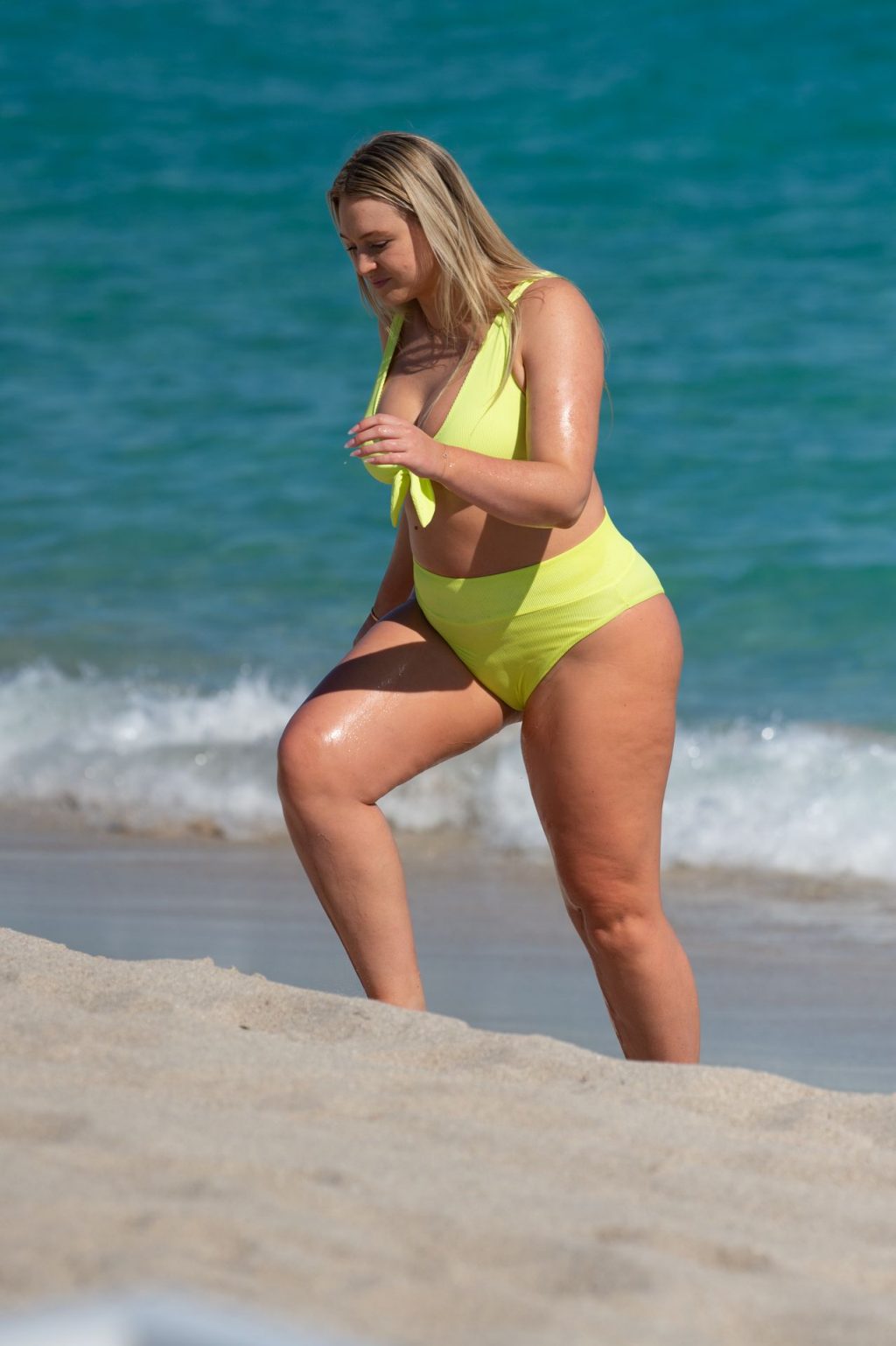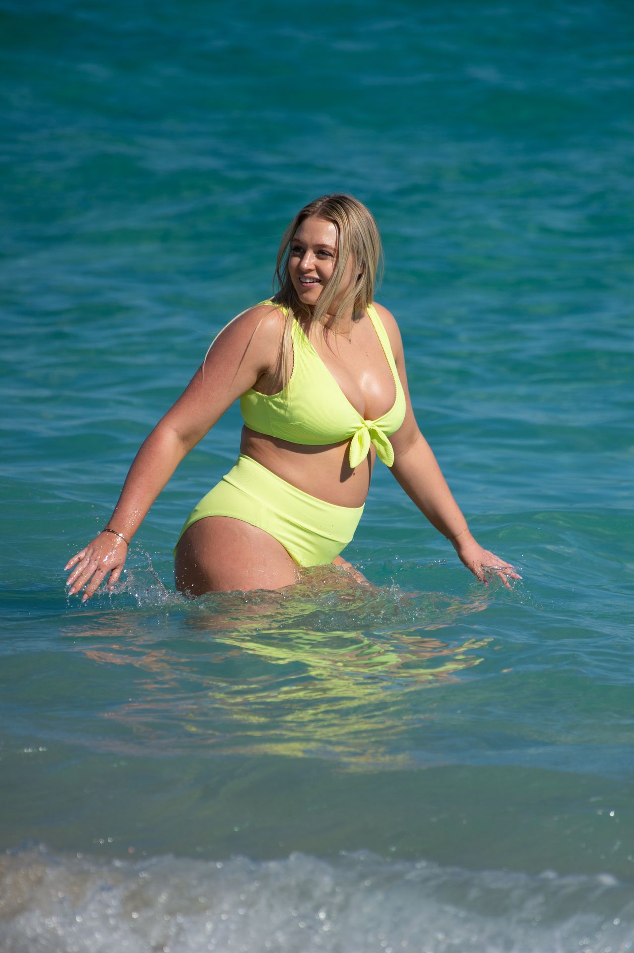Беременная Искра Лоуренс демонстрирует свой растущий животик на пляже Майами. Обворожительная модель была замечена в ярко-желтом бикини, охлаждаясь в океане в пятницу.