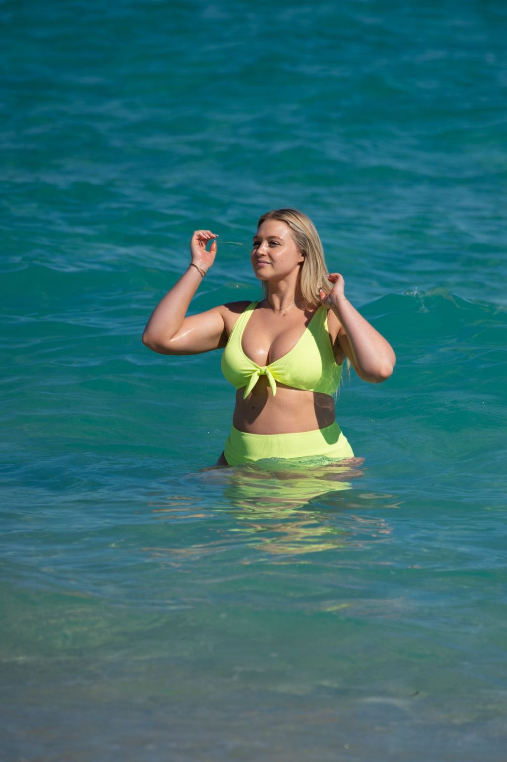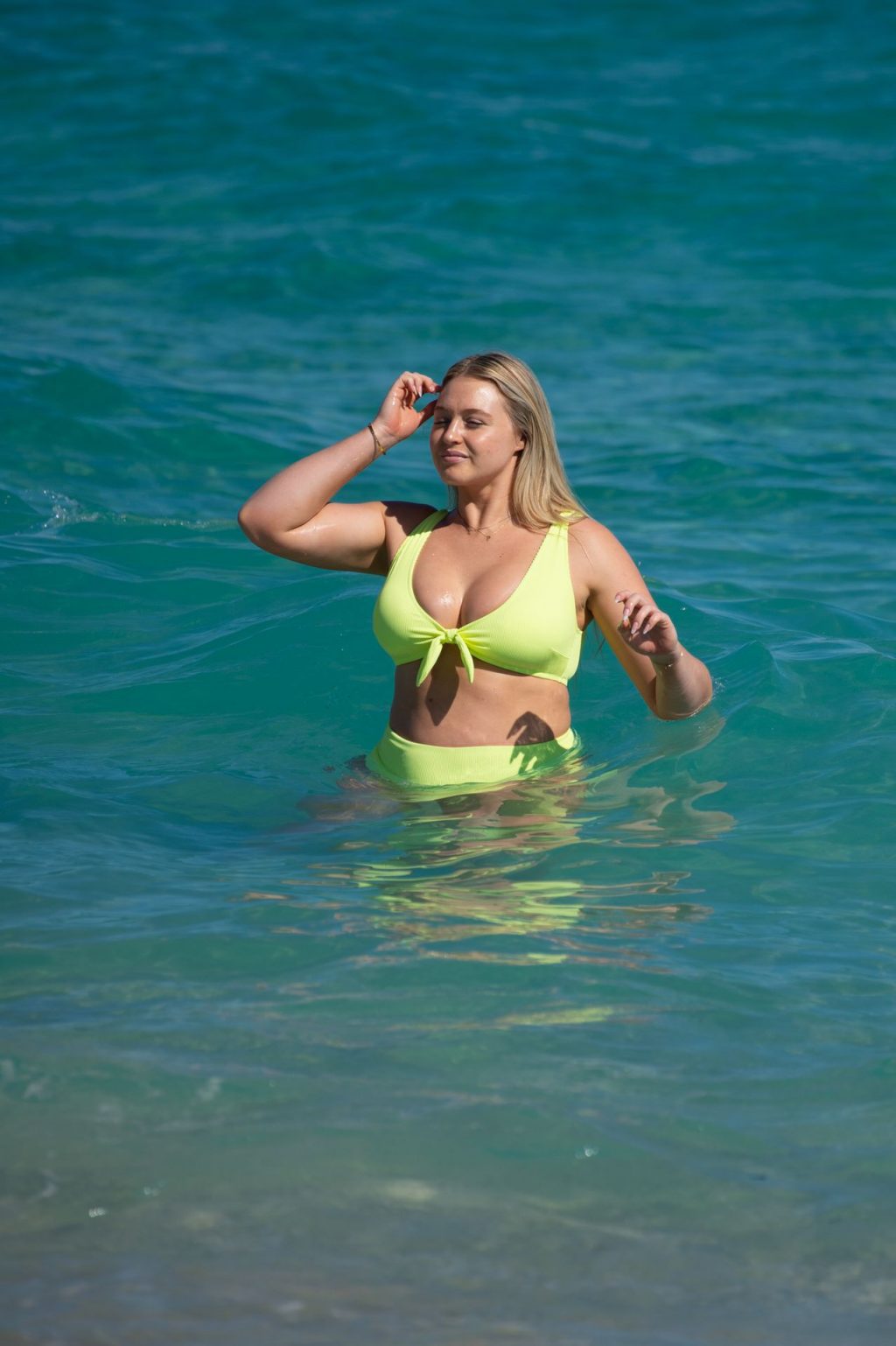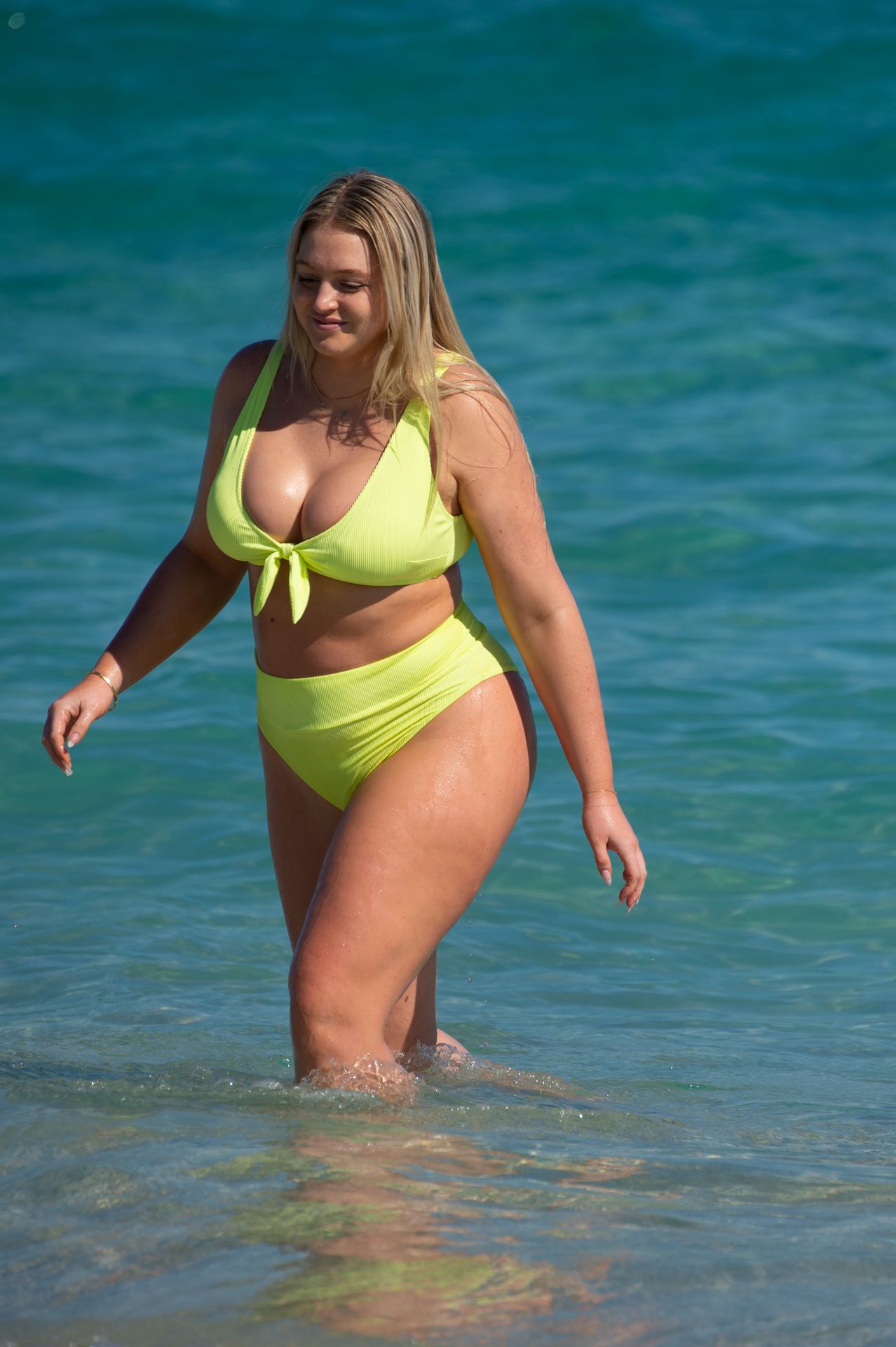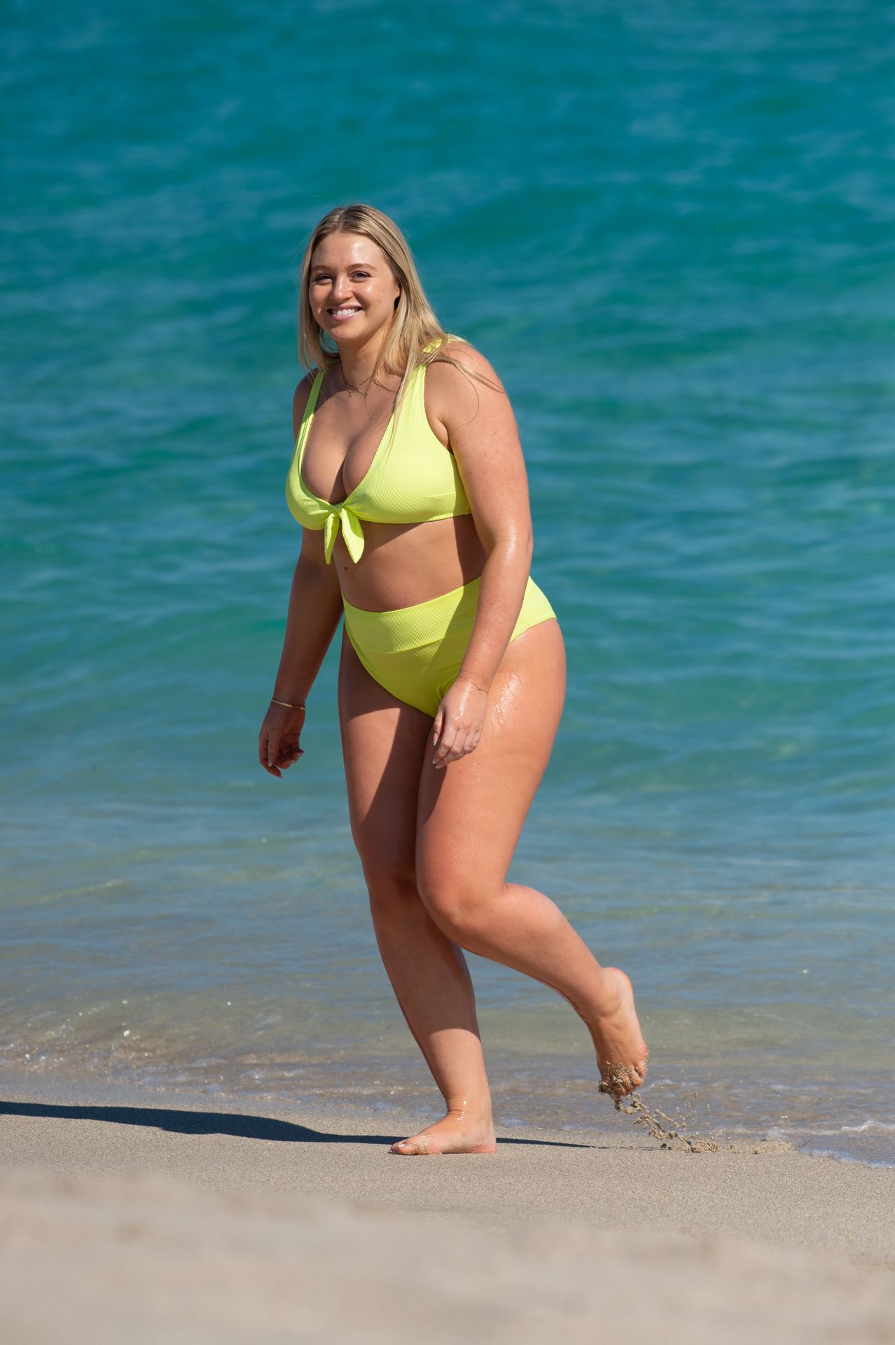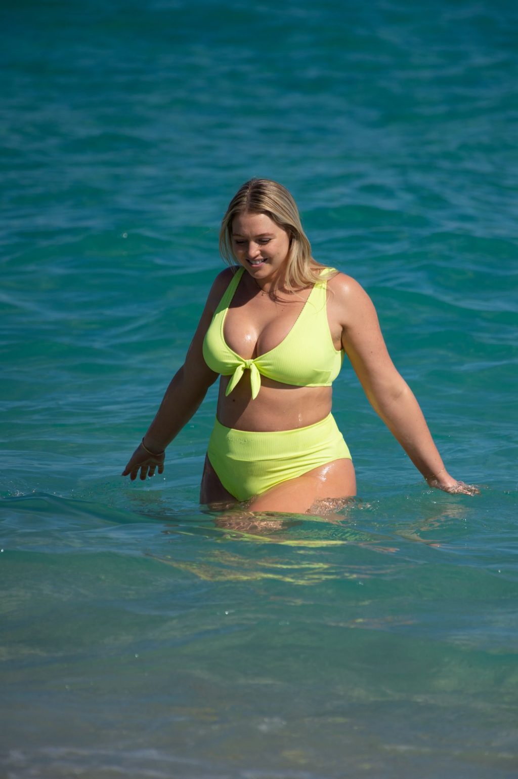 Беременная Искра Лоуренс демонстрирует свой растущий животик на пляже Майами. Обворожительная модель была замечена в ярко-желтом бикини, охлаждаясь в океане в пятницу.