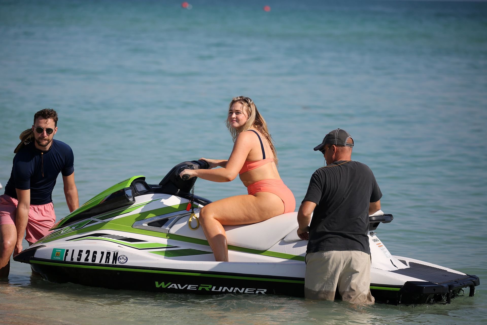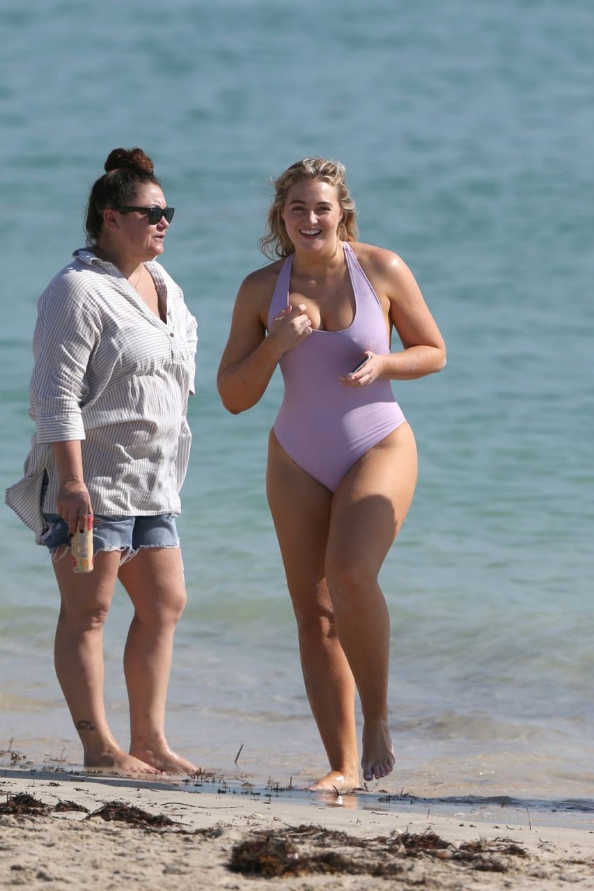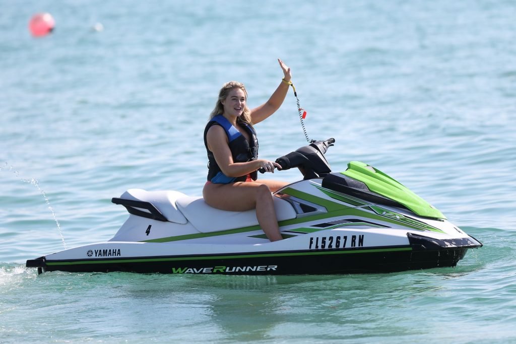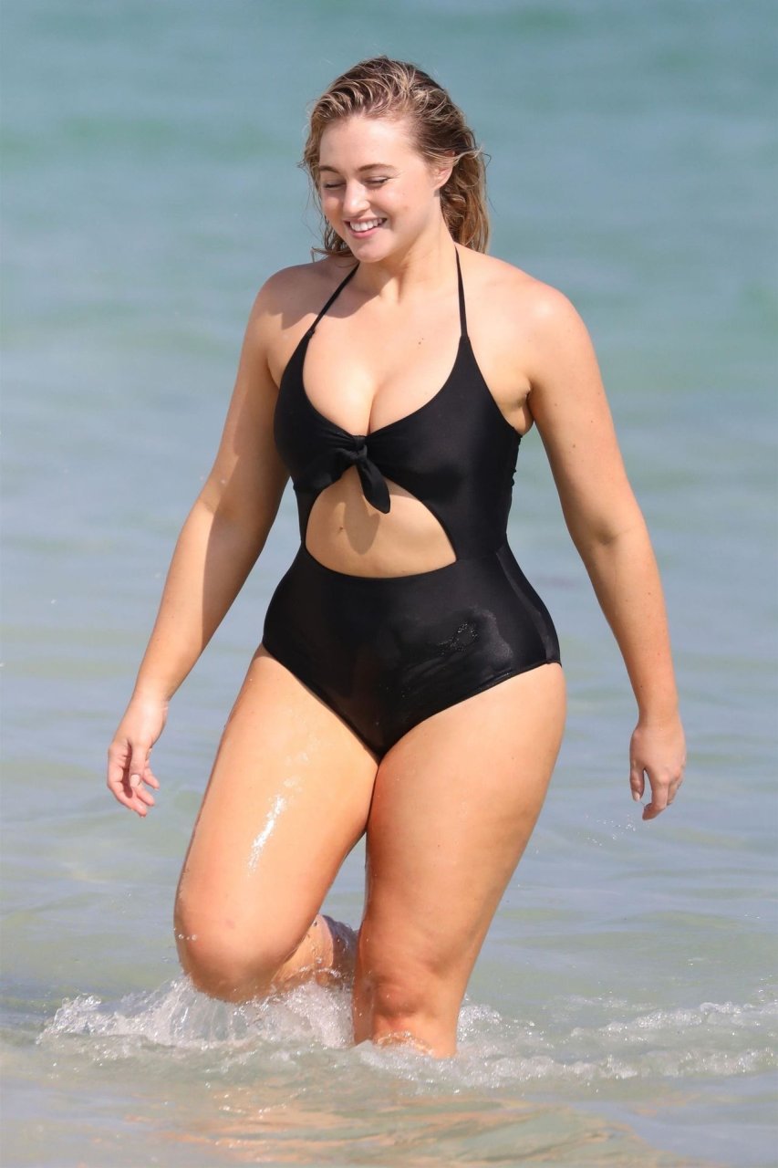 Курвистая модель Искра Лоуренс излучает уверенность в своем теле в разных бикини во время съемок для Aerie на пляже Майами, 26.11.2018.