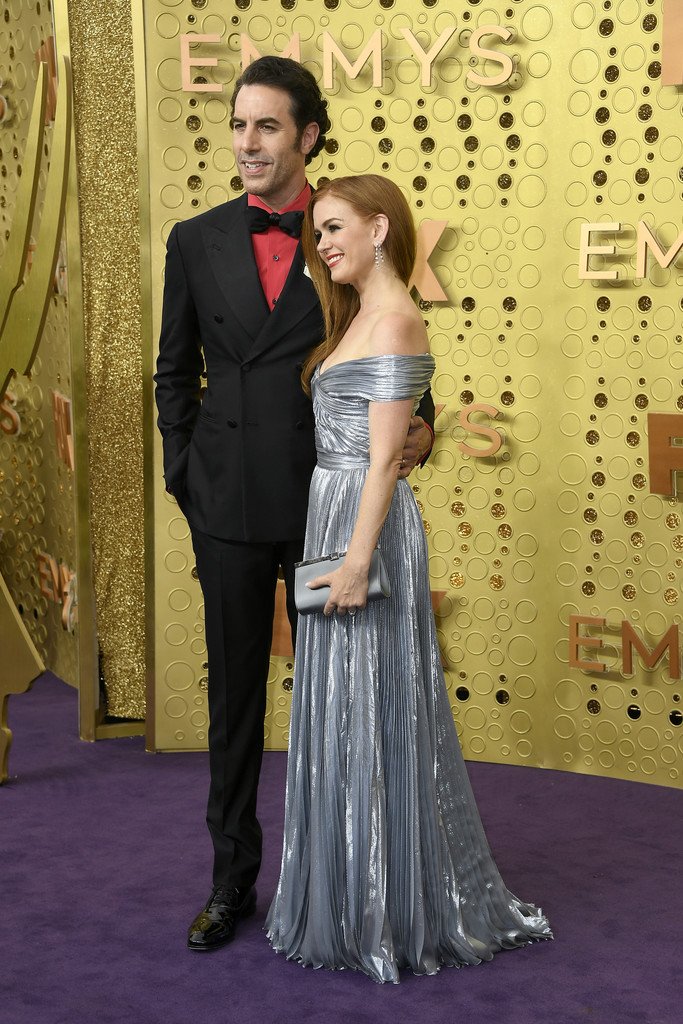 Австралийская/шотландская актриса Айла Фишер демонстрирует декольте на 71-й церемонии вручения премии «Эмми» в Лос-Анджелесе, 22.09.2019. Она появилась на мероприятии в серебристом платье вместе со своим мужем Сашей Бароном Коэном.