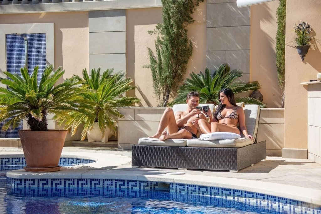 Сексуальная звезда “Ibiza Weekender” Джордан Дэвис проявляет публичную демонстрацию чувств на отдыхе с девушкой Изобель Миллс на Майорке, 04/01/2019.