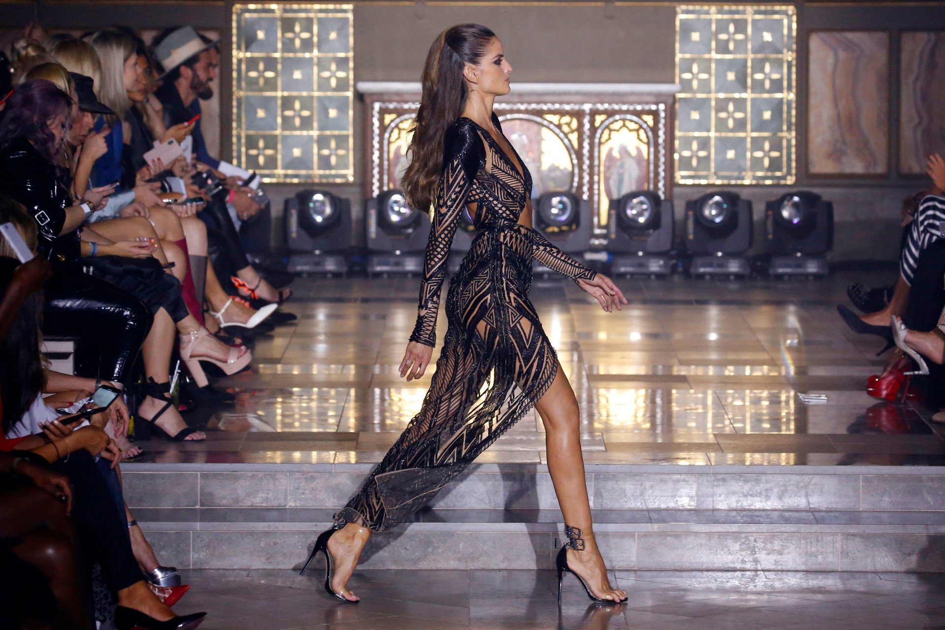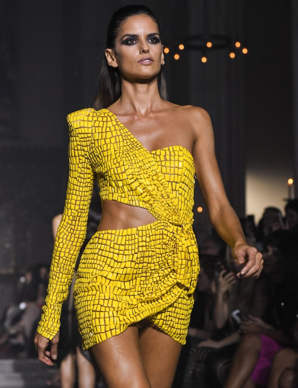 Изабель Гулар выходит на подиум на показе Julien Macdonald Весна/Лето 2019 во время Лондонской недели моды, 15.09.2018. Мария Изабель Гулар Дурадо — бразильская супермодель, более известная как одна из ангелов Victoria’s Secret. Возраст: 33.