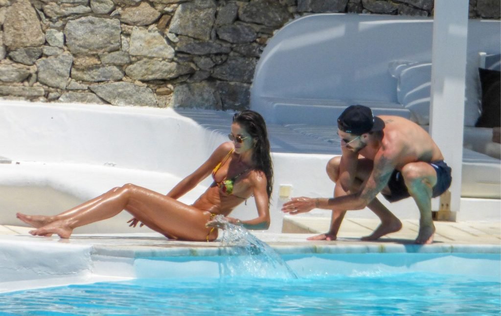 Модель Изабель Гулар была замечена вместе с Кевином Траппом, как они веселились у бассейна на острове Миконос, 07.03.2019.