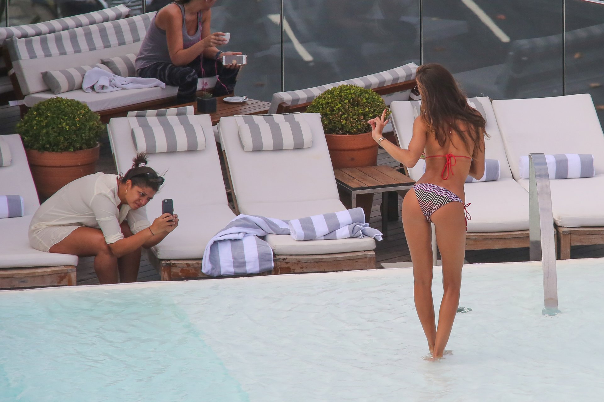 Iza Goulart демонстрирует свое горячее бразильское тело в откровенном бикини у бассейна отеля Fasano в Рио-де-Жанейро, 08/07/2016. Изабель Гуларт — бразильская модель. Возраст: 31 (23 октября 1984). Рост: 1,77 м.