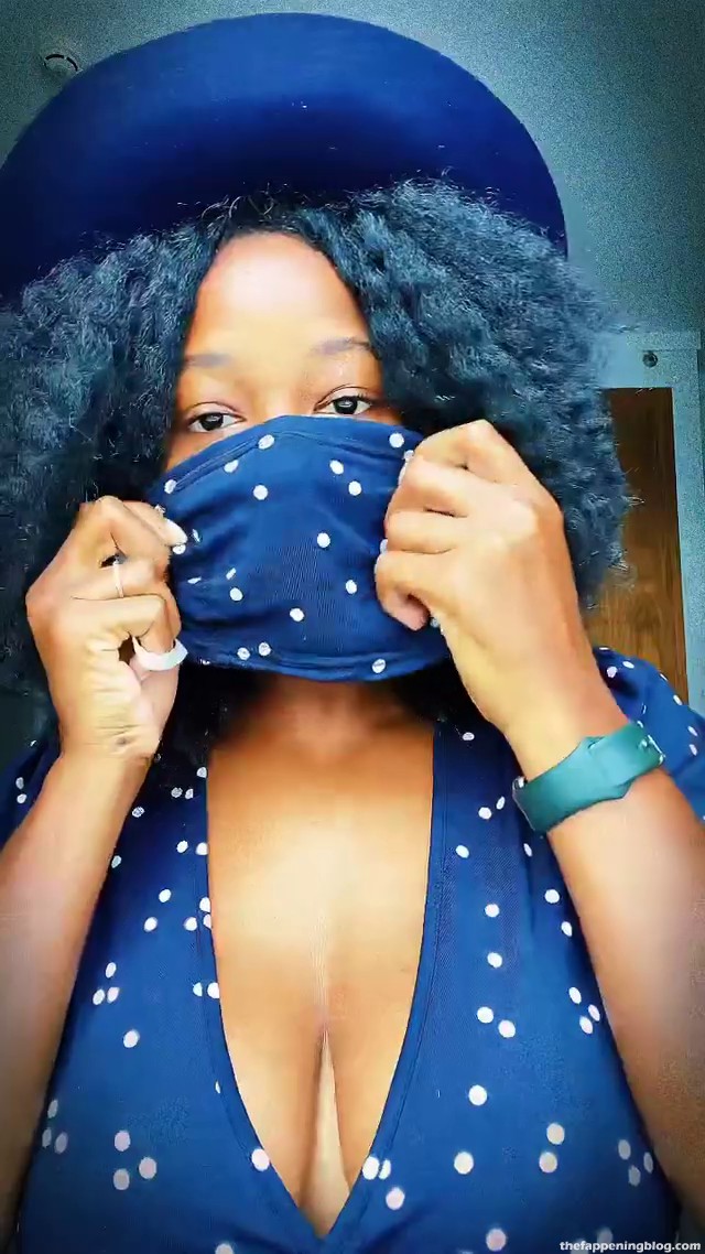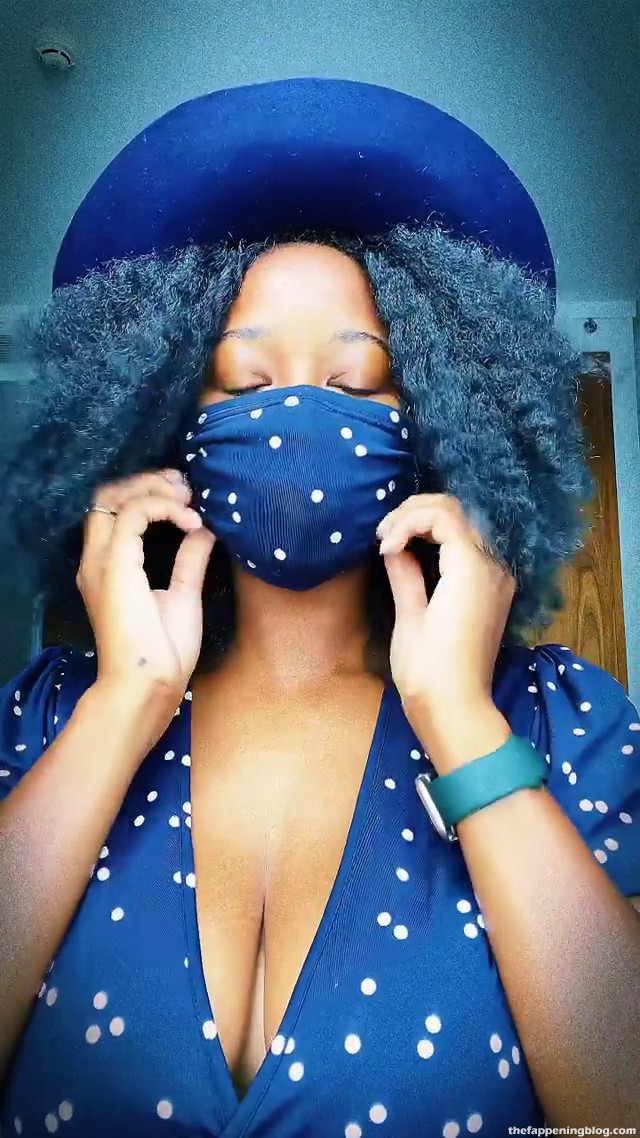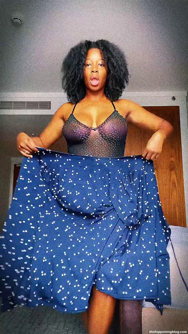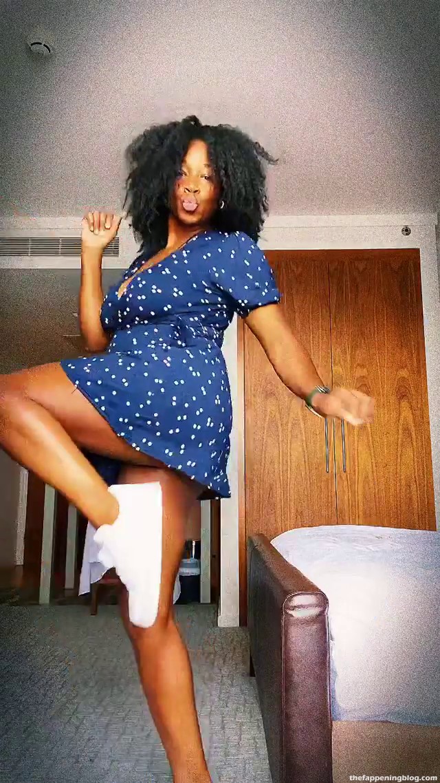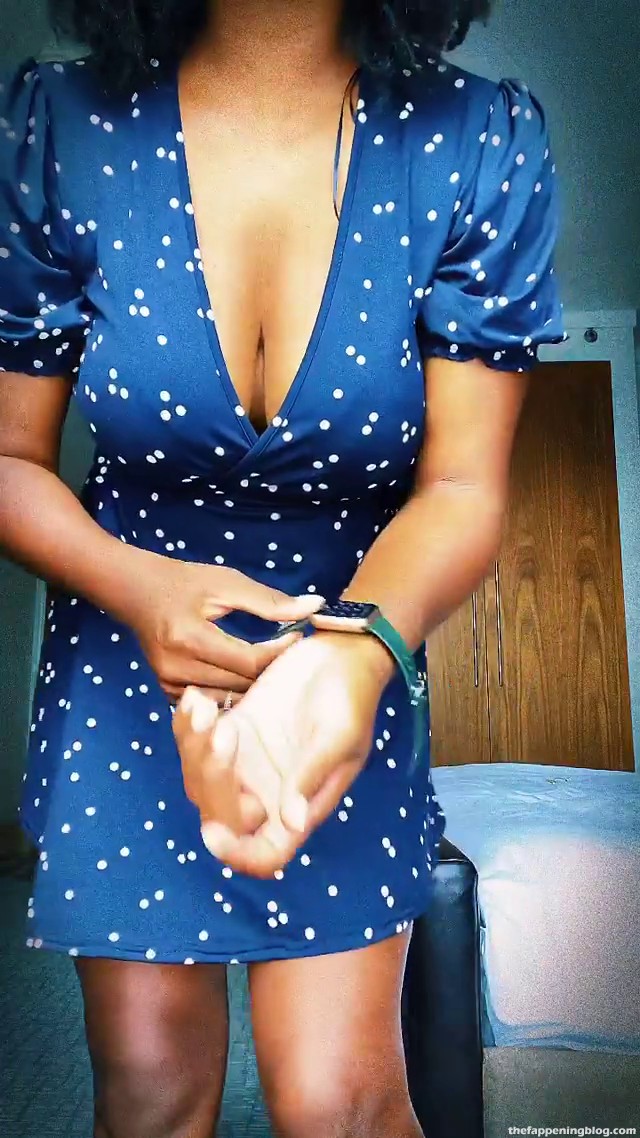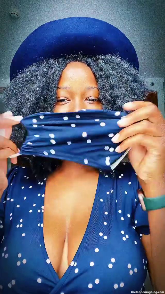 Певица, телеведущая и актриса Джемелия Нила Дэвис демонстрирует свои груди в новом видео в социальных сетях ниже (июнь 2021). Она показывает свои сексуальные ноги, красивое декольте и соски, надевая прозрачное белье и синее платье.
