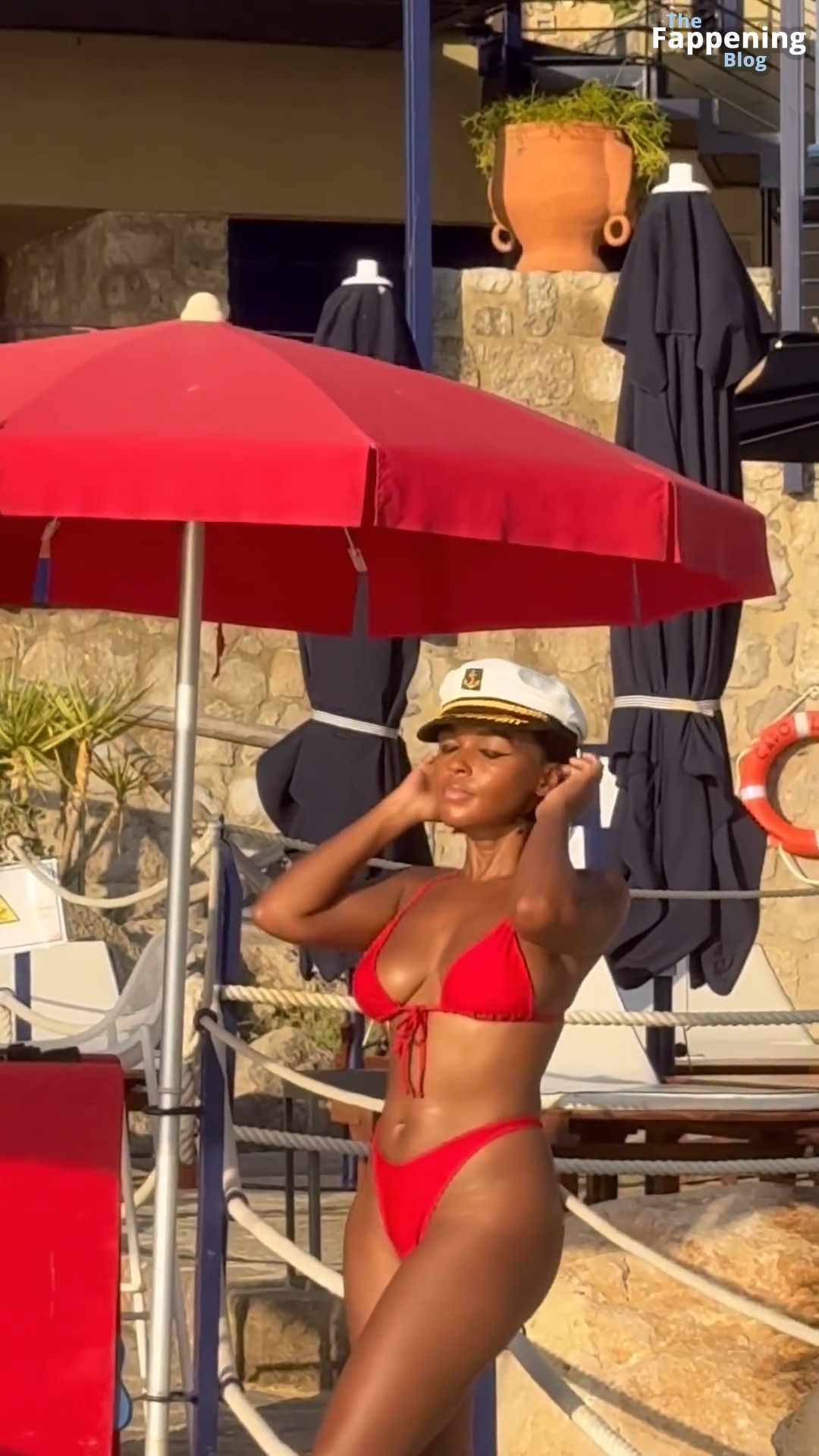 В этом откровенном красном бикини, идеально подчеркивающем её формы, она выглядит как настоящая королева. На одном из фото она элегантно сидит на палубе яхты, обернув голову шелковым платком — прямо как из старого Голливуда. А на других снимках Janelle позирует в капитанской фуражке, глядя вдаль в бинокль, будто ищет новые вайбы и вдохновение для своих следующих шагов.